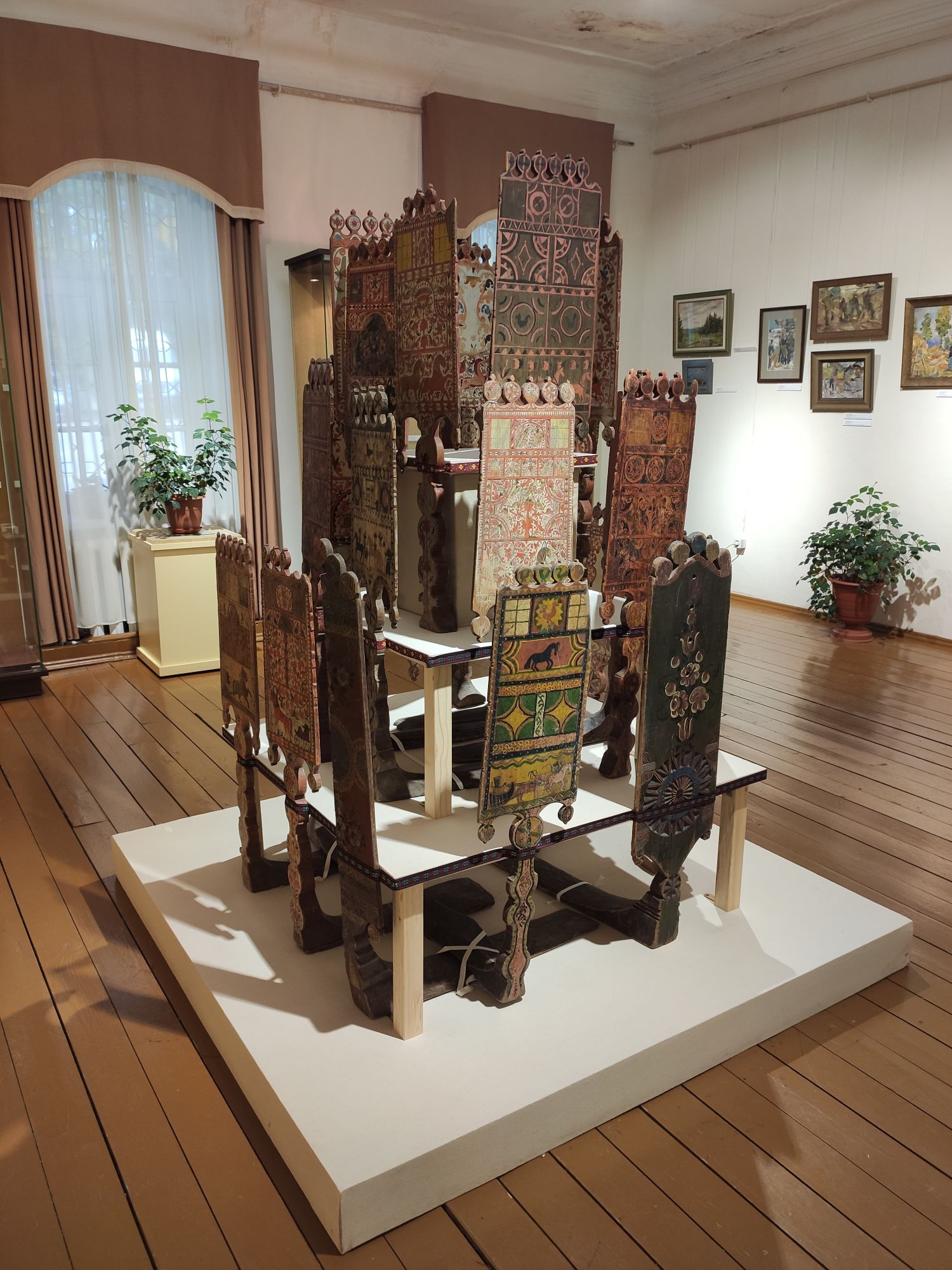 20 сентября 2022 А началось всё 2 сентября, когда Оля @OlkaY принесла мне анонс выставки https://vk.com/wall-179233426_2870 со словами: Ты, конечно же, знала про дома и станцию в Няндоме и Кекушева, да? Но, надо признать, что я читала про это, но точку на карте не поставила и из головы выветрила чутка. Думали съездить вместе, но не сложилось. А вот Женьку я уговорила. НЕ могу сказать, что живопись Юрия Шаблыкина прям впечатлила. Но вот эти три работы прям тронули, особенно мужской портрет. В центре зала поставили прялочки. Крутые, прикольно рассматривать. А вот задняя сторона, как обычно, почти недоступна, а там ведь интересные сюжеты бывают. И немного вещей русского стиля (по нему рекомендую постоянную выставку в МДПИ). А в соседнем зале была выставка Людмилы Новихиной - https://vk.com/wall-179233426_2915 У нее были выставлены разные работы - глазури, медная пластика, резьба по кости, акварели. Акварели почти не тронули, а вот остальные виды творчества очень понравились! Посмотрев прекрасное в отделе художественных ремесел Абрамцево, не смогли не заглянуть в монастырь прям напротив. Выше я про него чуток написала. Могу сказать, что там тихо, спокойно и уютно. Ухоженные цветники, спокойно улыбающиеся монашки... Там даже музей есть, но мы не ходили в этот раз ни в храмы, ни в музей. Juliay, Lucia-del-Umago, Сибирская Кошка и 28 других сказали спасибо Поделиться сообщением Ссылка на сообщение