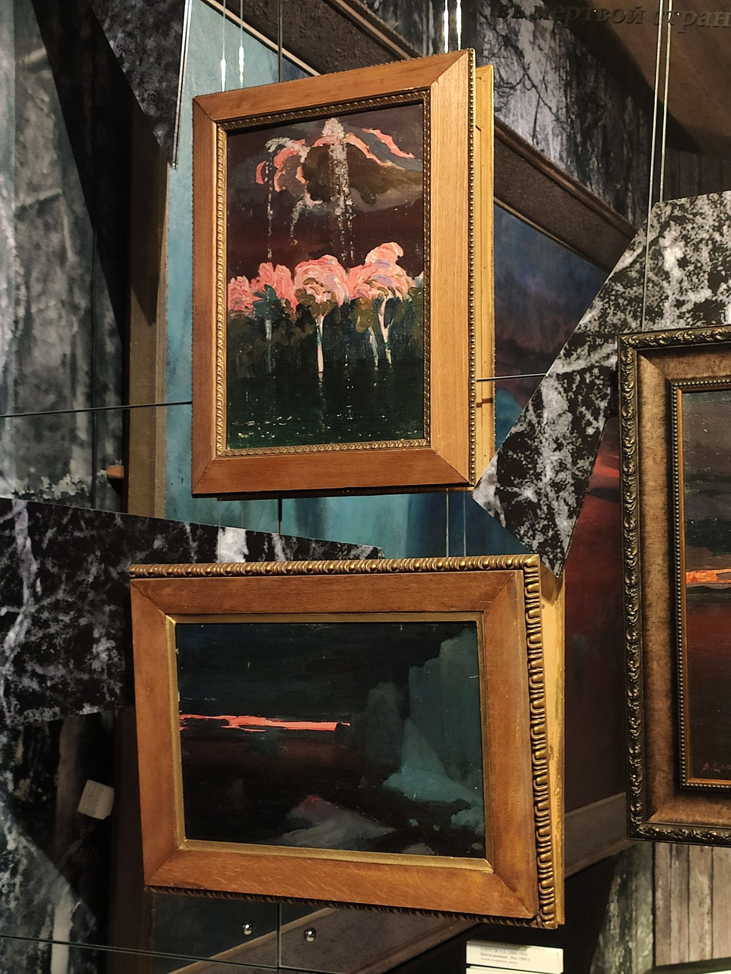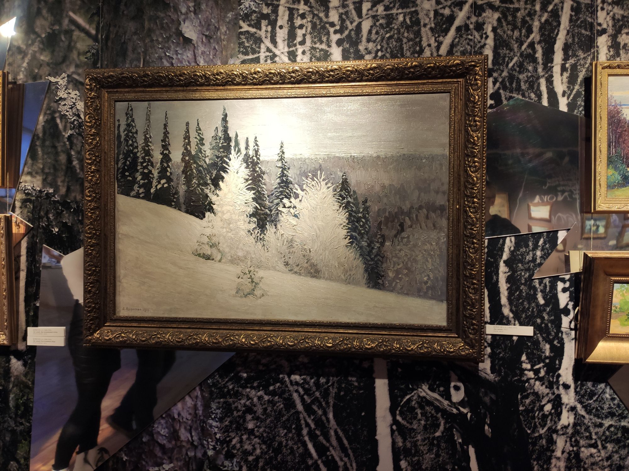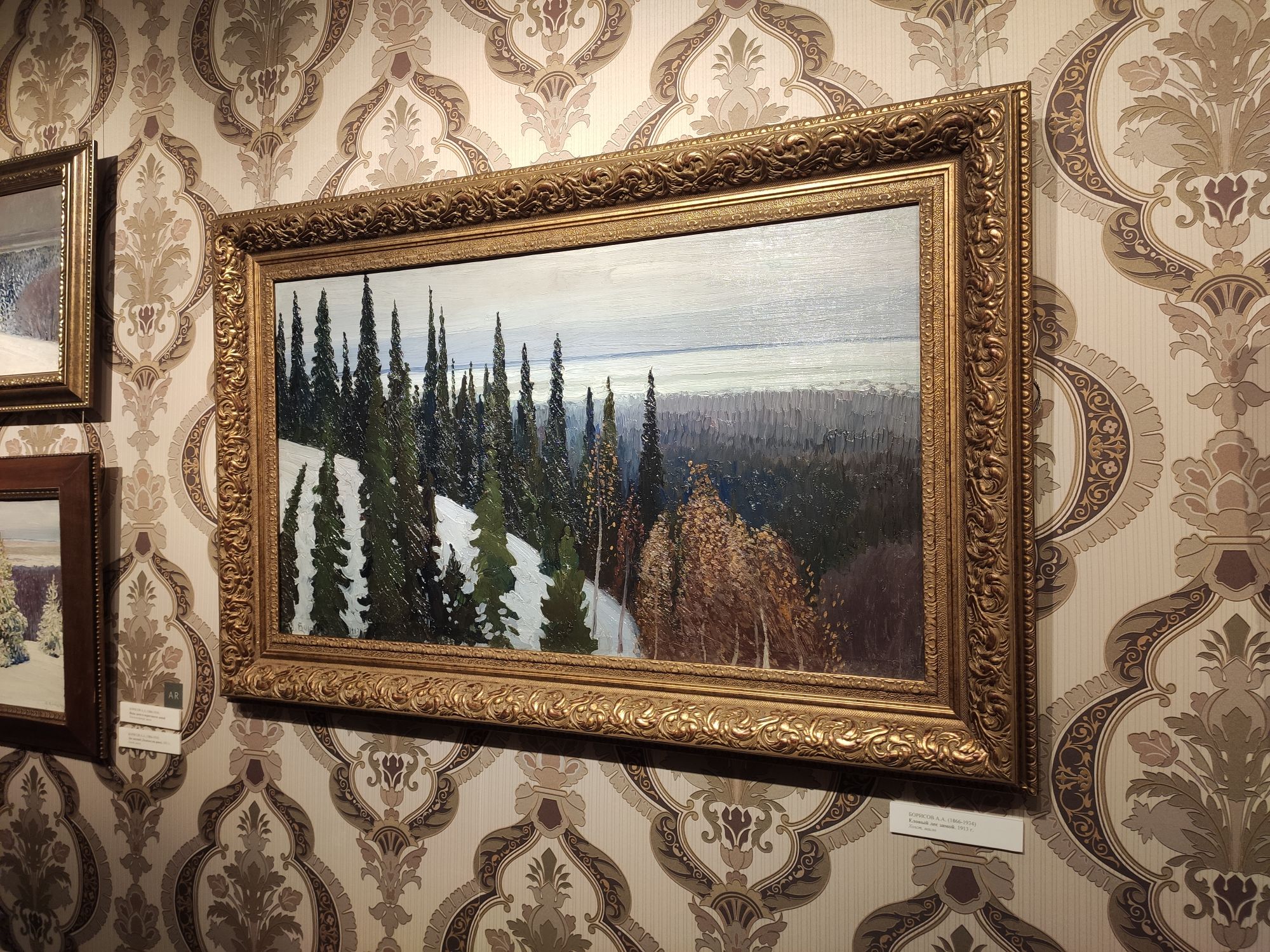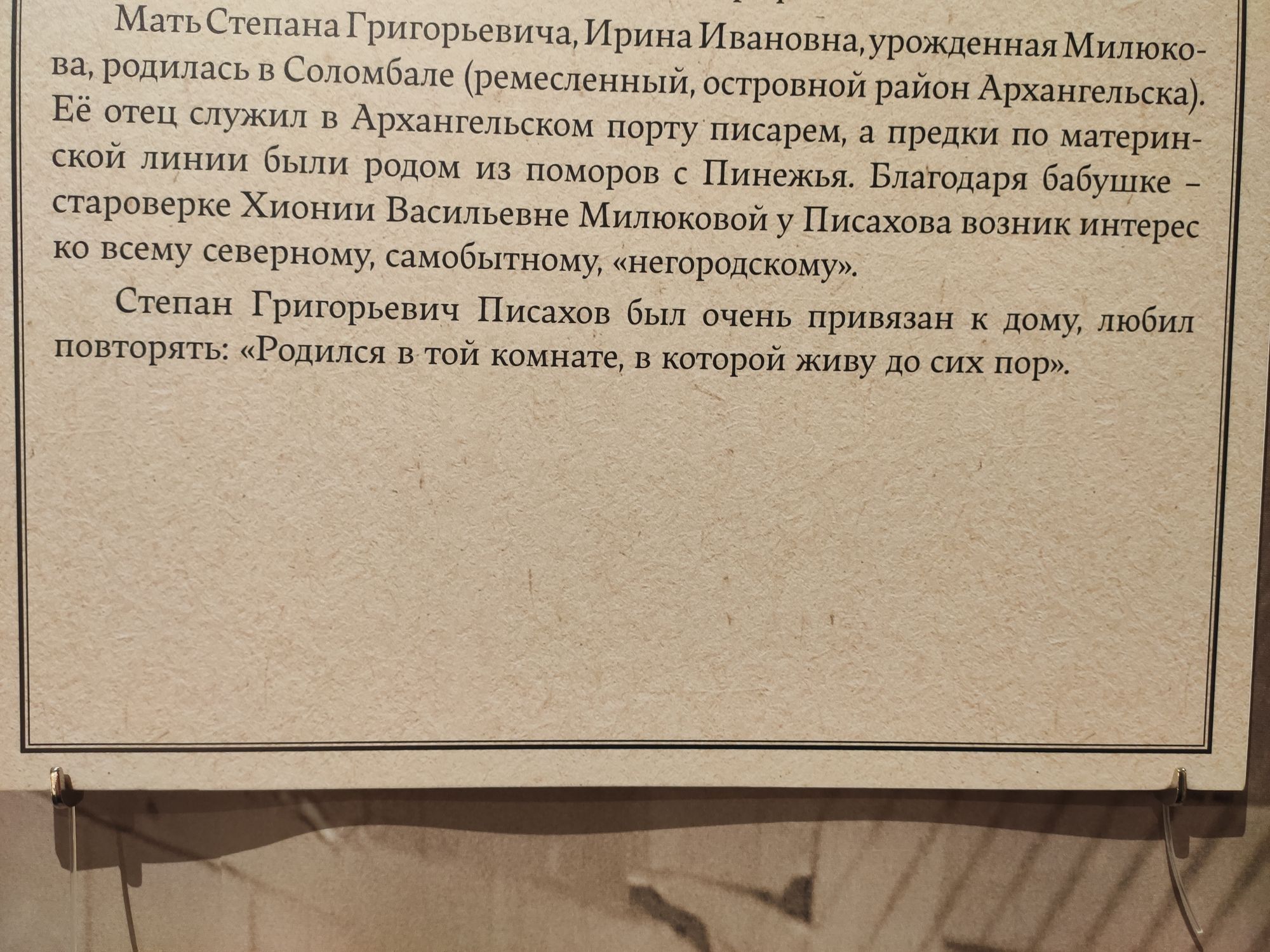27 сентября 2022 Думала - писать про отпуск или нет... Но он же был, поэтому напишу Скрытый текст Девиз отпуска. На самом деле, это почти все фото, сделанные в отпуске. План был другой, но мы его перекроили, спасибо мужу. Первая ночёвка в Переславле Залесском. Котики за завтраком и монастырь в тумане. Чем севернее уезжали, тем более золотой и красной становилась осень. Было невероятно красиво! Но фоткать не хотелось. В пути нам даже маленький кусочек радуги показали. Не зря говорят, что север лечит... Гуляли по набережной. Взад - вперёд. А на следующий день было 2 музея. Я очень скептически к этому отнеслась, но они помогли немного очухаться. Первый музей - музей Борисова. Я про него уже писала в сообщении про Красноборск (пару страничек назад примерно). Биографию его там описывала. В этом музее купила себе его книжку, которую в интернете уже не найти, а тут она есть. В ней два очерка самого́ Борисова и пару статей о нем. И ещё нам очень присоветовали на кассе его биографию за 200 рублей. Просто шикарная книга! Маленькая, ёмкая - на каждом развороте на одной странице глава, на другой странице - иллюстрация к главе (картины, фотографии). Эта биография отвлекала весь длинный обратный путь - я её Женьке почти всю вслух прочитала. А теперь просто много картин Борисова (напомню, что он был учеником Шишкина и Куинджи, что отчётливо видно в его картинах - север - это Куинджи, а Красноборск - Шишкин). Будете в Архангельске, сходите! Лучше с экскурсией, но мы не попали, там две детских ждали. Это тоже в музее Борисова, но уже просто скульптуры. Потом был обед. Где-то по пути ворона отламывала клювом палочки и держала их лапой))) А потом был ещё один музей - музей сказочника Писахова. Не буду много писать. Почитайте его биографию хотя бы на Википедии, найдите и почитайте его сказки. Вы их знаете - Золотое кольцо, Перепелиха, Морожены песни и т.д. Можно мультики посмотреть - они же прекрасны! Ну а я вам его картины покажу. Цикл северных сосенок с Кий-острова - это любовь! И серия "Сны", к которым, оказывается описание есть (надо поискать в сети). И обратите внимание на карту - сколько он путешествовал!!! Вот серия "Сны" "В подводном мире церквушка на скале" 1912 "Церковь, путь к которой потерян" 1907-1908 (?) "Силуэты деревьев" 1910 Небольшая выставка пинежских костюмов и предметов быта: И уже на выходе выставка мужа и жены художников, которые рисуют на Кий-острове. После Писахова слишком ярко и насыщенно смотрелось. И ещё прогулки по набережной... А потом мы пошли поужинали и ушли в номер... И тут... Оказывается когда-то давно Женька установил приложение, которое показывает вероятность северного сияния в месте, где ты находишься. И включил там уведомления - если есть какая-то вероятность, то оно присылает сообщение. В Москве, понятное дело, оно молчит... А тут пиликнуло, что вероятность 17%, а через полчаса поднимется до 25 и будет так держаться в течении ещё получаса... Муж скомандовал одеваться и пилить))) Пришлось слушаться. На набережной, конечно, засветка дикая. Но у нас есть маленький опыт по просмотру сияний - мы их пару раз видели. И один из этих раз за облаками. Знаем, что смотреть надо на север. И что оно, скорее всего, белое будет, т.е. только "всполохи" видно - как "облако" разгорается. Понять, что это "оно" можно сфотографировав - на фото оно зелёное (глаз видит белым, повторюсь). В общем, от засветки мы прятали