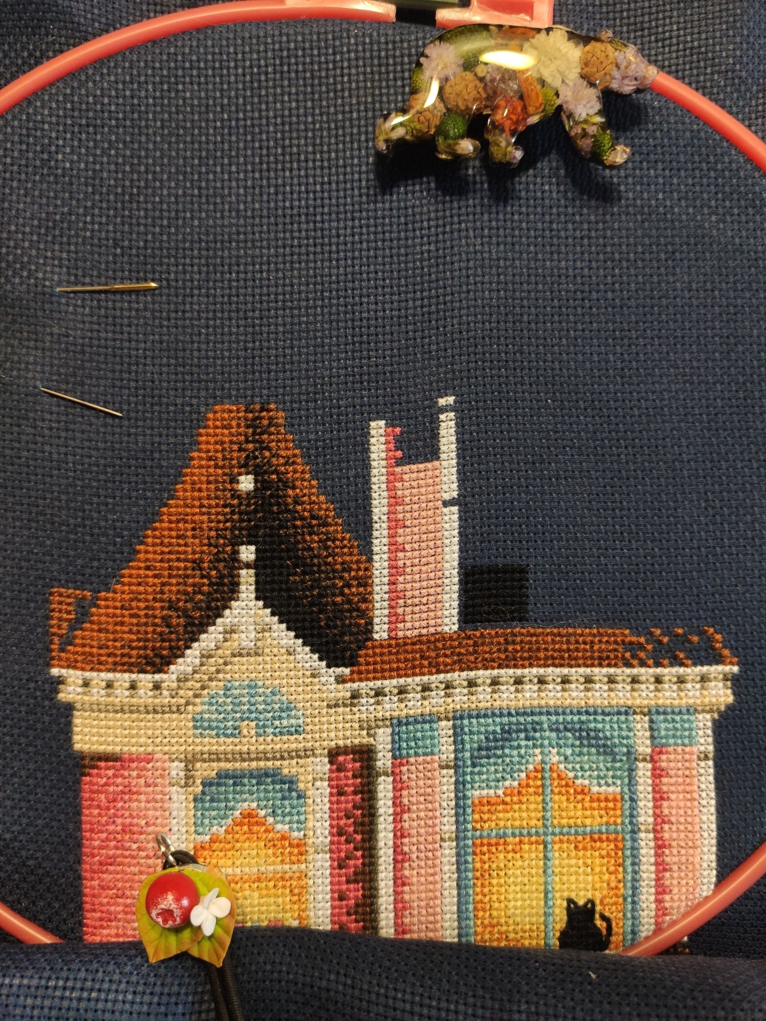 6 октября 2022 Я с отчётом пришла. Вышивальное. 1) На ФР купила себе всего 1 маленький наборчик. Решила, что надо его быстро вышить, тем более, что он мне нравится очень с момента, как я его увидела. Игрушка шейкер "Зайка" от Goldenhands.me. Дизайнер Ирина Коноплич. Размер 7*7,5*0,4 см В наборе: -основа с перфорацией из прозрачного тонкого пластика 2 шт. - задник из прозрачного пластика 2 шт. - акриловая вставка толщиной 3 мм для придания объема - цветная символьная схема. - нитки мулине СХС. - бисер ТОНО и пайетки для декора. - наполнитель для шейкера. - инструкция. - 2 иглы и нитковдеватель. Мне всё понравилось. Единственное, почему-то одного цвета не было в наборе. Автору напишу про это. Фото все ночные. Получился вот такой милый гремящий шарик (там внутрь смесь из бисера и всяких блестяшек насыпается))). 2) Потихоньку двигаю Викторианский шарм, ибо вписалась в совместник)))) 3) Ну и для тех, кто ждал, надеялся и верил, взяла в руки и шью девочку с китом. Не знаю - надолго ли меня хватит, но пока двигаю. для третьего угла даже не надо будет пяльца переставлять. Ну и немного не вышивального. Асик написала отличный отчёт, а у меня вот буковки не хотят в слова складываться. Была Формула. Я по ней пробежалась в четверг. Была в совсем неприятном шоке - оооочень душно, темно и нет связи. И это был совсем капец. А в четверг ещё народу было довольно много. Ушла, почти ничего не купив. И сильно думала насчёт пятницы. Но в четверг поздно ночью приехала @Маса. Мы с ней посидели 5 минут два часа, чайку попили. Поржали, конечно же. Я расслабилась и решила, что в пятницу идти надо. Тем более, что компания собиралась чудесная! В пятницу Маса удрала к Цыпе, а я поехала к двум, чтобы с Асиком @Каори и Серегой встретиться и гулять вместе. И уже на ФР подхватили @Маняша. В пятницу на ФР было уже лучше. Значительно, причем. Большая часть стендов +/- решила вопрос со светом, стали открывать двери и окна и проветривать этот большой ангар. Народу было значительно меньше, чем в четверг. Только вот со связью так и не наладилось. Но мы взяли наличку. Основное удовольствие, конечно, от компании))) Из покупок - несколько форм для схем Ершовой (мне Оксана и сама очень понравилась и стенд ее), пара магнитиков (один от Тани Шаровой со скатами - его на девочке с китом видно и два от Явышиваю (у них из двух мной купленных магнитов у одного прям по пути домой ещё фигурка от самого магнита отклеилась ). Ещё купила два магнитных держателя для излишков канвы. С морошкой и брусникой - тема севера не отпускает. Их тоже на фото видно. А вот фото с выставки и покупок нет. Даже не доставала телефон, смотрела глазками. Вечером тусили у нас. Дегустировали настоечки, шоколадки и много ржали. В субботу мы решили погулять по Балашихе. А то я только Асю выгуливала, хотя у нас есть что посмотреть))) С утра позвонила и договорилась насчёт экскурсии в Горенках. Очень жаль, что у Вали @Lucia-del-Umago не получилось подъехать. До Горенок мы пошли пешком. Сначала показали гостям фабрику. Потом парк. Потом усадьбу Пехра-Яковлевское - наша общая городская боль. Так хочется, чтобы ее восстановили, но пока никак... а она постепенно разрушается. От Пехра-Яковлевского до Горенок шли по парку и лесу. Осень нам показала все свои краски. Даже солнышко включила))) В Горенках наш ждала великолепная экскурсия. Москвичи, присмотритесь - отличное место для прогулок недалеко от Москв