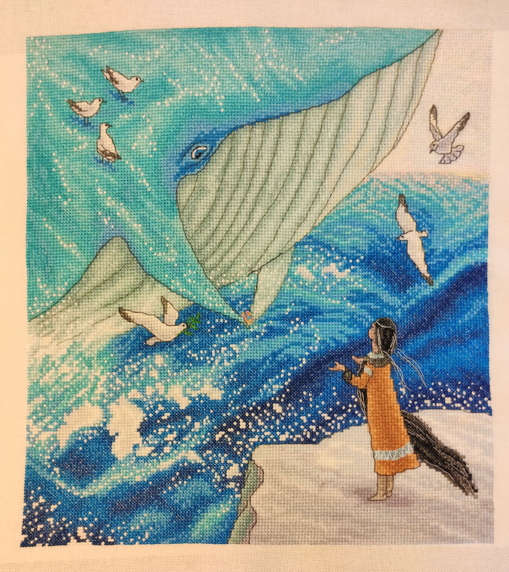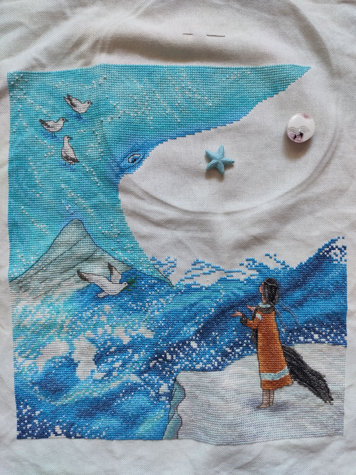 21 октября 2022 13.10.2022 в 16:01, Путешественница сказал(а): Дошила у кита верх головы. Теперь переставляю пяльца и буду шить брюхо, море и небо. Небо там полукрестом, хотя его и не много. Девочка с китом замечательная!! Прочно ассоциируется с чем-то из детства - книгой или мультфильмом, не могу вспомнить. Путешественница, Lorans и PrimaN сказали спасибо Поделиться сообщением Ссылка на сообщение