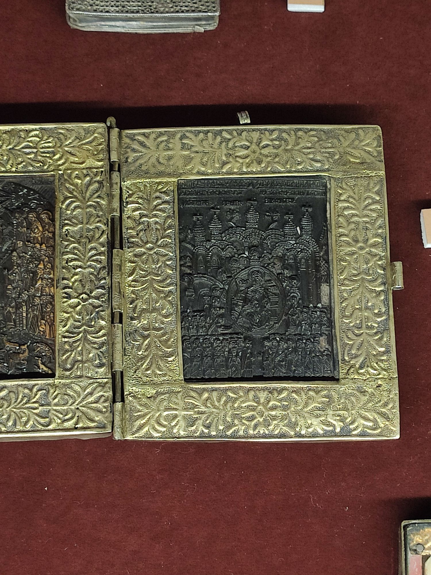 1 марта 2023 Итак, пинаю себя и пишу отчёт "Как я провел лето февральские праздники". Скрытый текст Оставим за кадром то, что 21-го меня подрубил гипертонический криз. Дома сидеть совсем не хотелось, поэтому в обнимку с тонометром и таблетками поехали))) Сейчас я к врачу сходила, буду теперь обследоваться дальше, но врач сказал, что это нервы. Погода подарила нам солнечные прекрасные денёчки. А, если учесть, что там ещё и чистый белый снег везде, то красота вокруг была невероятная. Хотя фоткала я не много в этот раз. Глазками смотрела в основном. Чудесный гостевой дом, где в этот раз мы две ночи ночевали одни, т.к. больше почему-то никто не отважился так далеко ехать. Только в последнюю ночь ещё компания заехала. Я очень хотела, просто мечтала, попасть на мастер-класс по горячей эмали, который проводит реставратор Сольвычегодкого музея Мария Черных. Мы с Асей когда летом были, нам этот мастер-класс всячески отрекламировали. И ещё - у Марии частная мастерская и она делает просто невероятные ювелирные изделия. Очень хочу у нее что-нибудь как-нибудь заказать)))) Я озаботилась заранее - позвонила в музей, чтобы заказать экскурсию (Аня не была в Благовещенском соборе в экспозициях сокровищ Строгановых). В общем, после первого звонка меня на экскурсии записали, а про мастер-класс сказали, что они не проводятся, т.к. каких-то комплектующих нет. Я, конечно, слегка расстроилась, но не сильно - решила будь, что будет. И, чудо! Звонок. Определитель говорит, что это Сольвычегодский музей. В общем, записали нас на мастер-класс. А потом я обнаружила, что Мария мне в личку в ВК перед этим написала, что извиняется, т.к. сотрудники не так поняли и не проводят другой какой-то МК. И я в лёгком шоке была, т.к. я при записи на экскурсию не называла фамилии))) А в ВК я Марии писала 14 января, т.е. за месяц до того, как в музей позвонила))) Муж опять смеялся, что, если Оля захочет....)))) Немного фото из музея. Я в очередной раз с огромным удовольствием разглядывала всё это великолепие! Мельчайшую резьбу, эмали, золотное шитьё.... Посмотрите - малюююсенькие ножки в виде львов! И вот долгожданный мастер-класс. Перед нами заготовка из меди, плошечки с мелко растертым стеклом с водой (так его легче наносить + стеклянную пыль не вдыхаем), две кисточки и салфетка. Наша задача - нанести эту стеклянную массу на заготовку. Главное - уложить довольно плотно, но чтобы оно было вровень с бортиками границ. Цвета на свой вкус) Это нам показывали пробники. Приступаем) Это мой кулончик перед обжигом. Сказали, что для первого раза отлично уложила))) Дальше все кулончики кладутся на сетку и отправляются в печь буквально на минуту при температуре 790 градусов примерно (надеюсь, что не вру цифру))). А потом их вынимают и мы наблюдаем как меняется цвет эмали при остывании (сначала вообще всё красное))) И вот моя красота. Осталось шнурочек приспособить) А после МК Мария сходила с нами ещё в один придел, где провела мини-экскурсию. Как же она классно рассказывает! Просто заслушаешься! А потом был обед и "астрологи объявили время лени")))) И, да! Котики! Это же самое главное в гостевом доме))))) Белый - Абель, полосатая с белой грудкой - Мимоза, полосатая - Мася. Котики приходят к тебя спать, обниматься и вообще, они очень фотогеничны и мимо пройти никак нельзя))) Посмотрите, как чудесно пристроено старое окно в качестве зеркала в ванной. И в