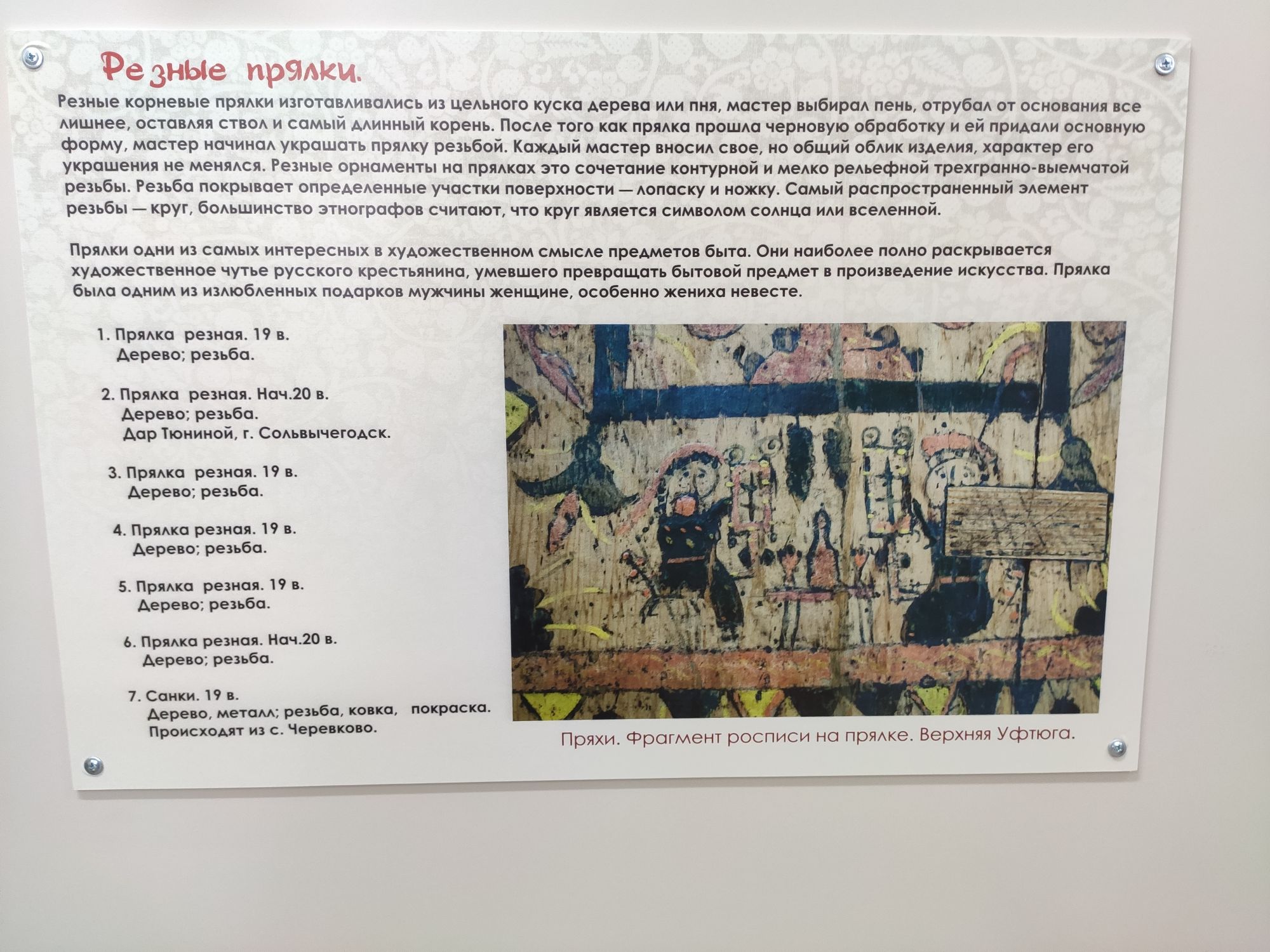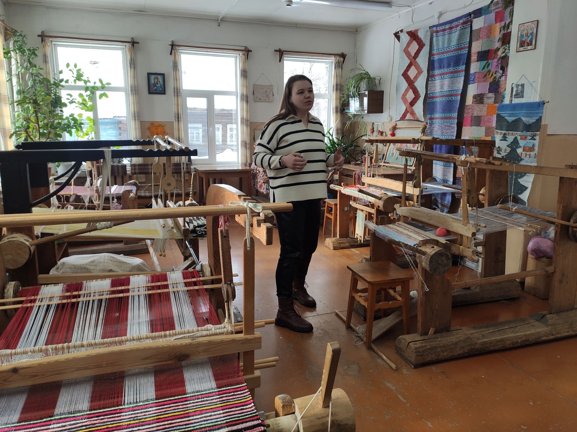1 марта 2023 25-го у нас по плану была экскурсия в Дом ремёсел. Утро. Котики))) Завтрак. Чудесная погода и настроение) От Дома ремёсел мои попутчики многого не ждали, но экскурсовод Валерия сделала экскурсию просто великолепной!))) Это она, оказывается, записывала меня на экскурсию по телефону))) И ещё она сказала, что то, что мы попали на МК к Марии - это чудо, т.к. она часто или в работе или в командировках. До нас отказали пяти (!) группам (муж посмотрел на меня как на ведьму, хотя он и привык уже в целом ) Нам подробно рассказали про ткачество холстов и поясов. Дали самим коврик поткать). Показали на полотенцах узор лягушка (мы бы ни за что не догадались))). Дали нам померить реплики головных уборов местных. Округа с накосником (девичий), плачея (одевали перед свадьбой и родственники оплакивали уход девушки в дом мужа) и сборник (замужних женщин). Потом был зал с предметами быта. Прялочки, инструменты, всякие сосуды, кубовая набойка. Роспись - моя любовь)) Посмотрите, как надо отдыхать за рукоделием - прялочки, бутылочки, две рюмочки И это всё с обратной стороны прялочки. (Про эту прялочку нам Мария Черных рассказала. Мы предвкушали встречу с ней)))). Рукомойник из цельного куска дерева. А это - детская головоломка!!! И доска для разгонного пряника. Его выносили гостям, когда они засиделась. Отламывали по кусочку и все понимали - Пора!))) А потом мы с Валерией немного поболтали. И выяснили, что во Введенский собор в летний храм, где находится семиярусный иконостас с иконами византийского письма (тут тоже могу наврать, но не классическими), но который на зиму закрывают, можно попасть с экскурсией. Экскурсия будет у храма в 14:50. Мы в ритме вальса поскакали обедать, а потом побежали показывать Ане красоту!) И кого мы могли встретить там, как думаете?))) Иван Хафизов (наличники) тоже был в Сольвычегодске и прибежал к экскурсии, чтобы тоже полюбоваться на это чудо. С Иваном мы потом немного пообщались, погуляв по городу, а потом он вечером ещё зашёл познакомиться с Екатериной и мы тоже немного за чаем пообщались))) Чудесная встреча. Фото нет))) Продолжение следует Хозяйка смешных зверей, BlueeYeS, marvlase и 33 других сказали спасибо Поделиться сообщением Ссылка на сообщение