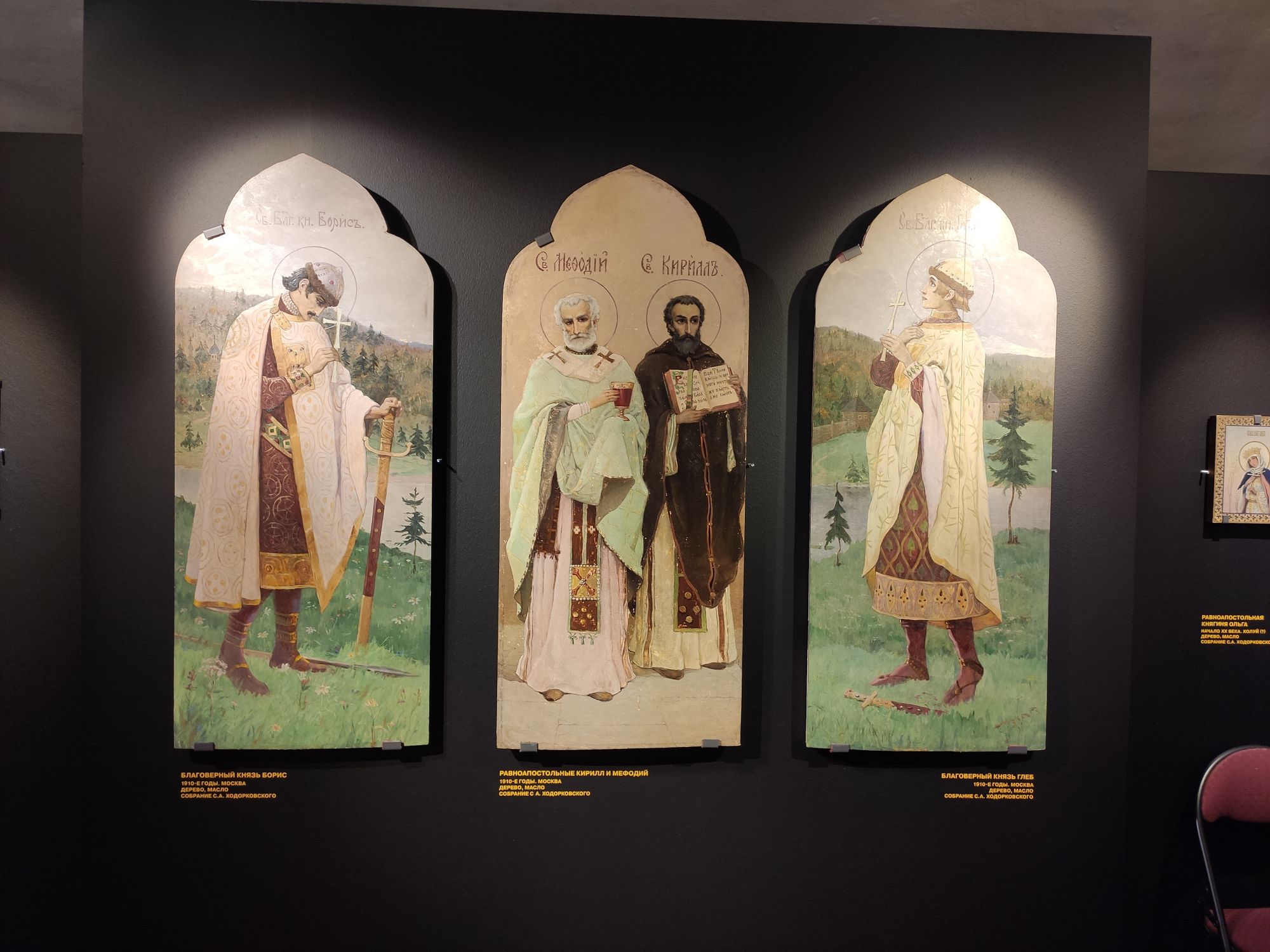 30 апреля 2023 Пыталась про Бегущий город написать, но в итоге отложила, ибо никак. Завтра ещё попытаюсь Но я всё равно покажу фото с выставки Модерн в Русской иконе, которая совсем недавно открылась в Спасо-Андронниковом монастыре. Выставка просто потрясающая. Мы втроём (с нами ещё Аня была) очень долго бродили от иконы к иконе. Жаль, что экскурсии у них только вот с 1 мая начинаются. Очень хочется туда ещё и с экскурсией, чтобы поподробнее послушать. Стиль модерн в иконах - это Васнецов, Нестеров, Врубель и т.д. + обрамление самых крутых на тот момент ювелирных мастерских, начиная с Фаберже. Изумительная и очень весенняя Княгиня Ольга А это бисер! И ещё немного. А это икона или не икона, то ты возле нее замираешь... И в голове смешиваются всадники апокалипсиса и дементоры из Хоббита. И почему-то страшно становится. Выставку очень рекомендую. Там ещё и постоянная экспозиция есть, но мы туда не ходили ещё. Аринесса , mag, Цыпа и 23 других сказали спасибо Поделиться сообщением Ссылка на сообщение