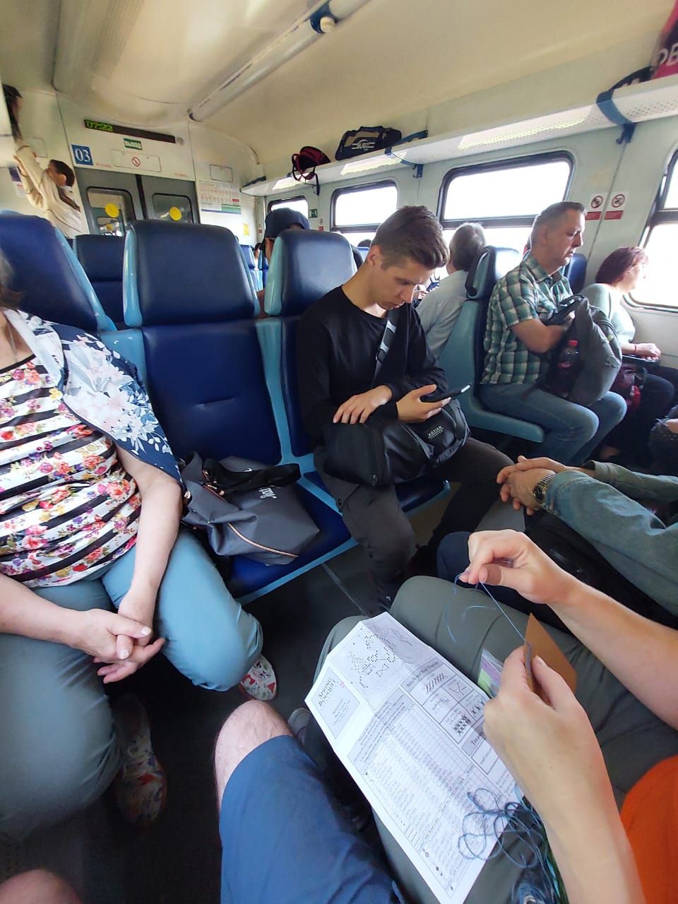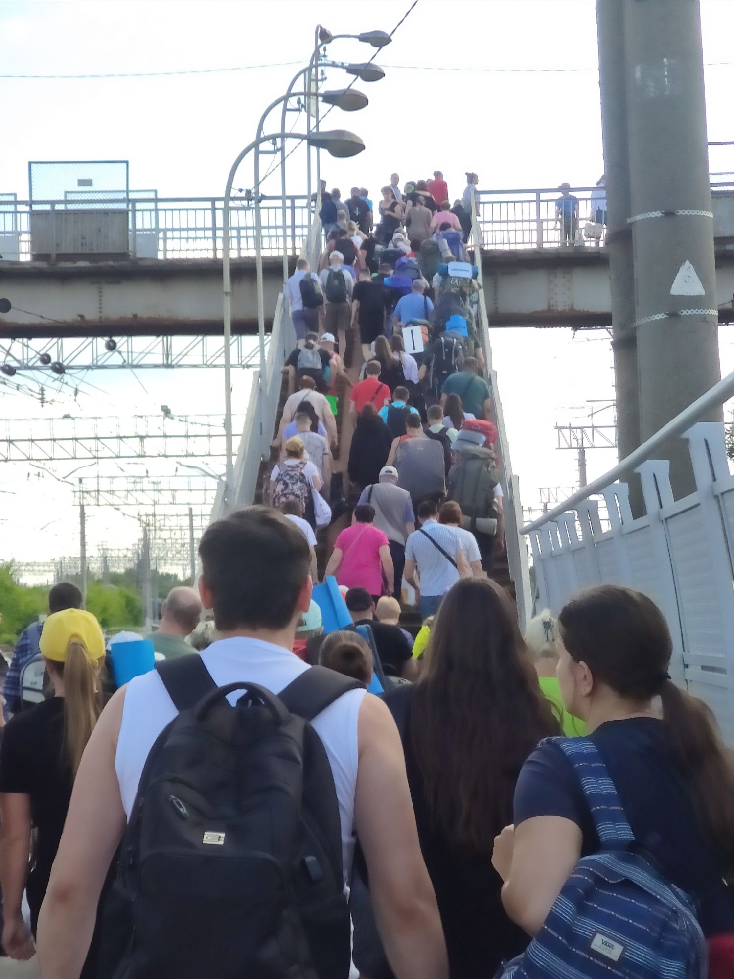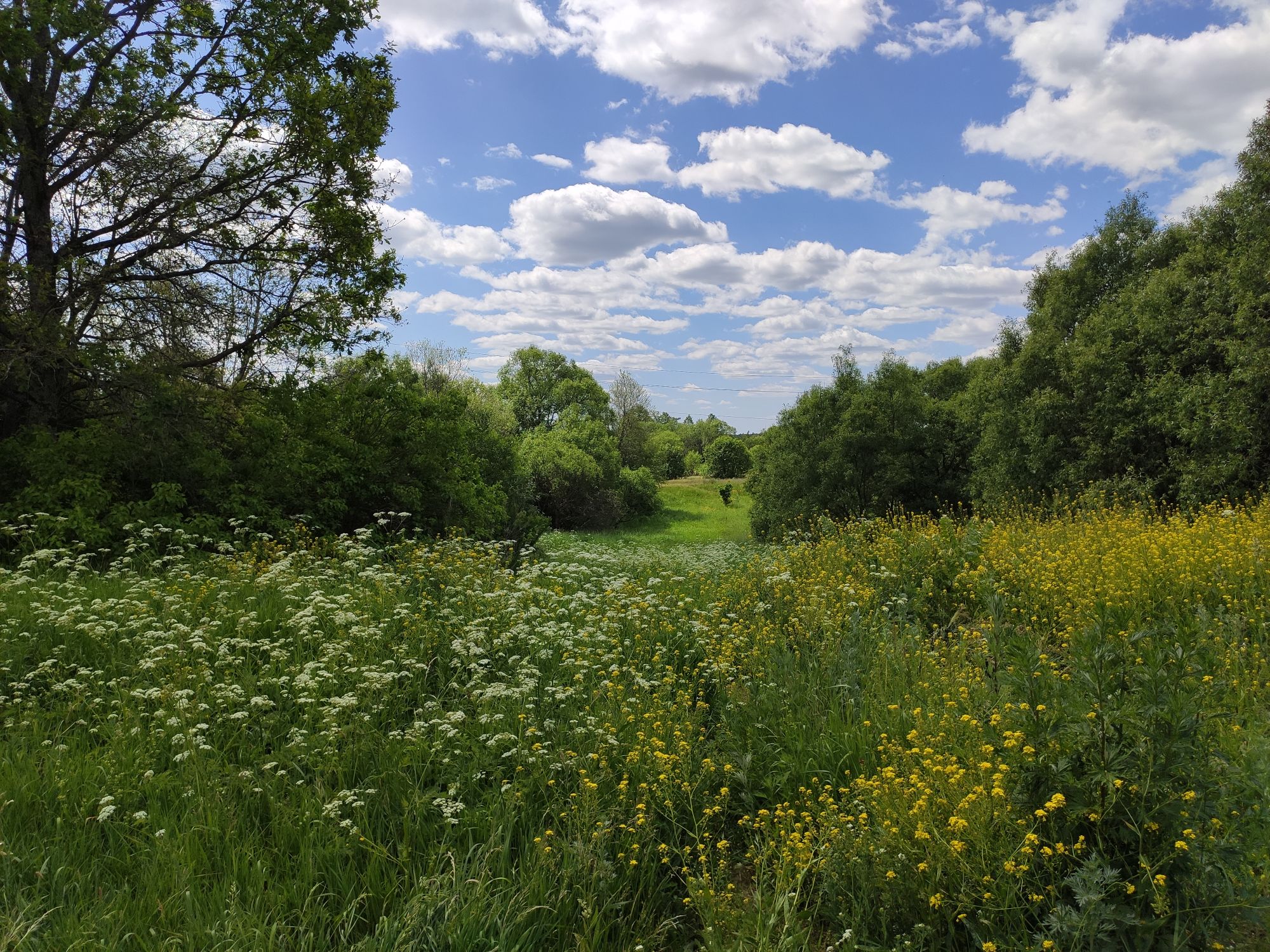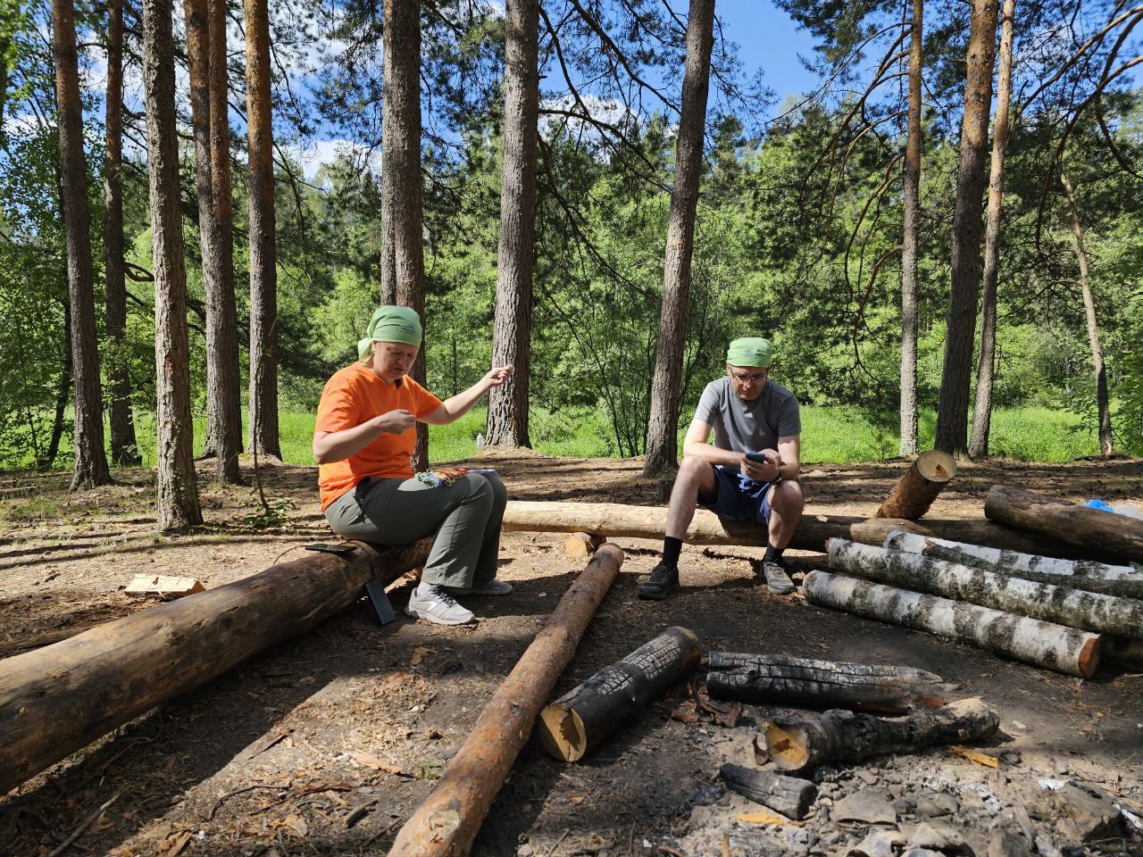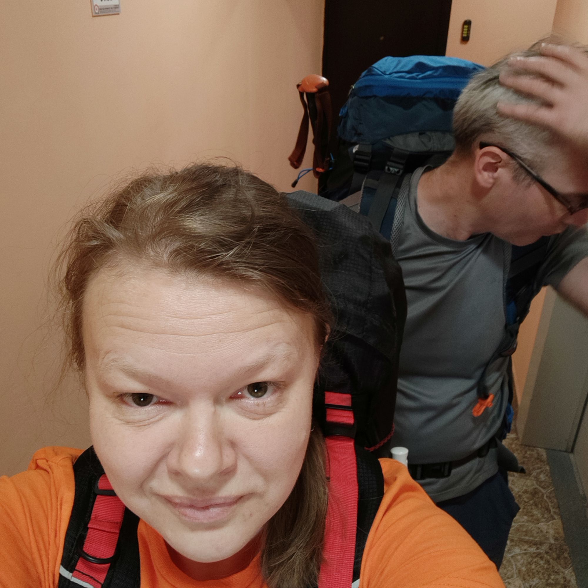 21 июня 2023 Всё сводится к тому, что есть июнь, Река и кромка берега под нами И небо с кучевыми облаками, И солнце льёт с небес на нас латунь. И что сказать, когда слова пусты? В них не вместить ни облака, ни реку, Ни кромку берега, ни тело человека, Сидящего у края пустоты. Всё сводится к тому, что есть момент, Который тихо сквозь тебя сочится. Река журчит, а небо золотится, Как фантики растаявших конфет. Давай молчать и впитывать закат И реку эту и её течение, Такое странное земное приключение - Ловить момент, что не вернуть назад. Ловить момент. В моменте раствориться. На жизнь текучую во все глаза смотреть. И умирать, чтоб снова возродиться, И возрождаться, чтобы умереть. © Наташа Маякова Т.к. я сама - поэт, зовусь Незнайка, то начну со стихов Наташи Маяковой, на которую давно подписана в ВК. Нравится мне как она пишет. И почти всё отзывается. В общем, поход. Встретиться договорились в 9:30, т.к. мы ехали на электричках с двумя пересадками и электричка наша прибывала на 173 км в 9:33. Прикольный опыт, когда ты не сел в машину и поехал до лагеря, а повесил рюкзак за спину и вперёд)))) Утренняя фотка у лифта в 5 утра)))) Женька тут прям говорит - И на что я подписался?)))) Поезда - романтика и вышивка))) Завтракали мы во Вкусно и точка в Орехово-Зуево - у нас там было 40 минут между электричками. В электричке Орехово-Зуево - Александров ехало очень много туристов. И обычных и вело))) Дачники слегка косились))) И вот встреча, настройка трекинговых палок по размеру, намазывание себя солнцезащитным кремом (обещали жару), распихивание питьевой воды по рюкзакам и в путь!) А дальше 21 км в первый день. Душа пела и наслаждалась запахами травы, нагретой солнцем земли и хвои, пока руки синхронно с ногами отсчитывали ритм палками. На смолке и горицвете кукушкином (гуглила, если что))) очень много бабочек какустниц). В пути мы постоянно находили то гусеницу, то ящерку, то какую-нибудь птицу на ветке, то грибы (подберёзовики и даже белые))). А ещё - делали привалы и о чем-то болтали). В какой-то момент поняли, что пора искать место под стоянку) Сначала прошли одно на стрелке двух рек. Потом долго не было ничего подходящего. И вот - ОНО - прекрасная полянка с местами для палаток и местом для посидеть, поболтать и приготовить еду. И даже река рядом со спуском и выходом в реку, хотя и не очень удобным, но нас это в итоге не остановило от купания)))) Я воду прохладную не очень жалую, но тут оказалось, что опустить усталые ноги в прохладу - это просто блаженство! Ну и обустройство быта в лагере - это всегда отдельная песня - установка палаток, готовка еды (мы с Женькой прям оценили буженину от Кронидов, а вот борщ их не зашёл)... По еде - в этот поход мы не заморачивались с подсчётами - веса, калорий и т.д. Шли всего на 2 дня, магазины на маршруте были, поэтому еды было всякой много))) Мне вот теперь интересно сходить дней на 5, где все посчитано и учтено). Потом все начинают бродить вокруг))) А нашим мужчинам вообще пришлось за водой вернуться к речке, которую мы проходили, чтобы набрать воды для готовки (оказалось, что мало взяли). С водой тоже надо учиться подсчётам. Фото, кстати, довольно мало. У меня телефон уже не очень хорошо держит зарядку. Розеток на соснах не было, зарядок от солнечных батарей у нас тоже нет, а банка (пауэр-банк) не вечная. Приходится как раньше с плёночным фотиком - думать что и когда фоткать + отключить ка
