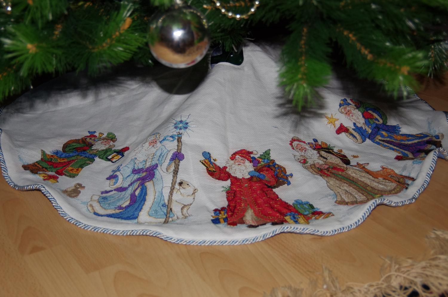 7 января 2013 Светик, спасибо за поздравление! Девочки, поздравляю всех с Рождеством! Всего вам доброго и светлого! Ну и похвастаюсь тем, что закончила еще одну ракушку! МХ люблю пламенно! Получилось как всегда изумительно красиво! Заканчивала срочно, т.к. отдала Айвару все свои не оформленные работы, в том числе первую ракушку. Но оформлять их надо обе в одном стиле. И чтобы не заморачиваться потом с почтой или передачей работы в Питер, я всю ночь пришивала бисер. Но успела))) Ну и хочу похвастать тем, что юбка закончена полностью! На встречу я приносила ее еще в состоянии "смётки". Итак - процесс доставил только положительные эмоции. Вышивается легко - довольно большие участки шьются одним цветом. Отделки много и разнообразной - бэк, выкладная нить, шнур, петельки, фрузики. Но я это люблю, поэтому это был отдельный кайф. Единственное, что немного огорчило - красные нитки после стирки чуток полиняли. Заметно не сильно... От девочек на встрече узнала, что старые наборы Дима этим грешат. Поэтому, если вдруг кто-то решится вышивать эту юбку - проверьте на "линючесть" красные нитки. Делать юбку как предлагал производитель я не хотела, т.к. на мой взгляд получилось бы просто "тряпочка". Хотелось чего-то очень красивого. Поэтому сподружкой сходили в Питере в магазин тканей и купили материал, к которому уже пристеган синтепон (тоненький), шнур вшивной и липучку. Выкроили из канвы и материала с синтепоном круги, в центре сделали отверстия диаметром 10 см. Потом к канве я приметала шнур, затем приметала материал с синтепоном. Аленка прошила это на машинке. И потом пришили липучку. Кот искренне считает, что это "коврик" я вышила исключительно для него. Поэтому, когда юбка была положена под елку, кот стал считать, что елка теперь тоже его. И после недели игнора елочных игрушек он стал хулюганом!))) Вот итог: Смотрю, все подводят итоги года))) Надо тоже попробовать)))) Но позже. Tаnya, ПримернаЯ, lamina-65 и 8 других сказали спасибо Поделиться сообщением Ссылка на сообщение