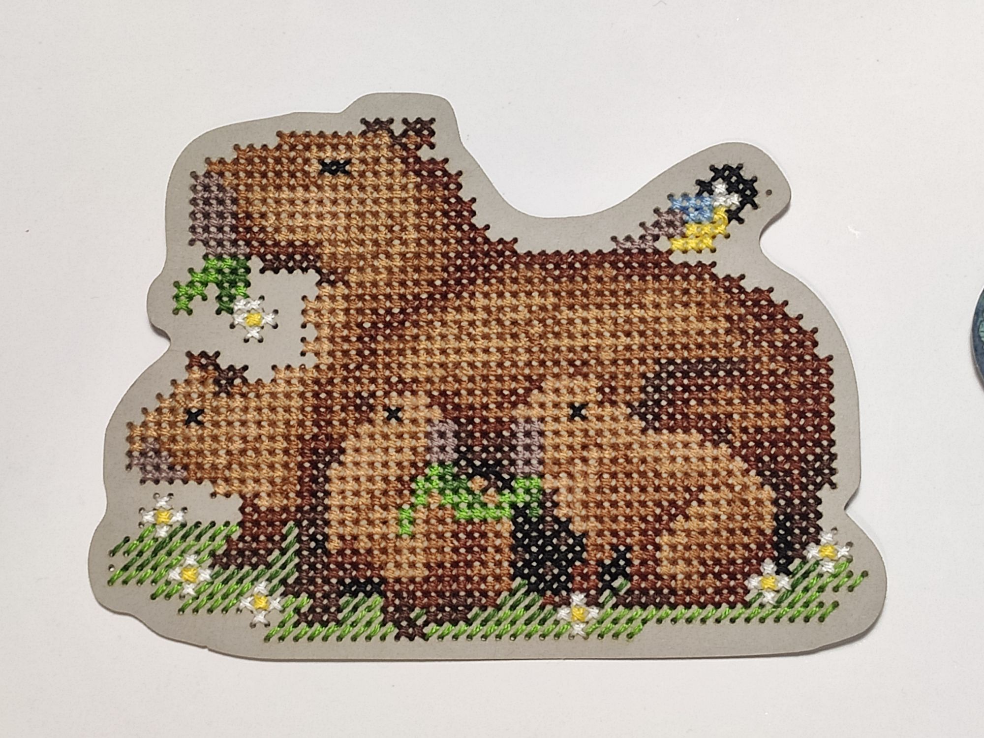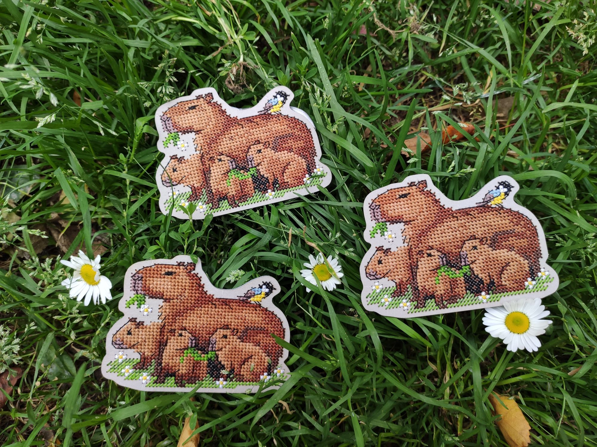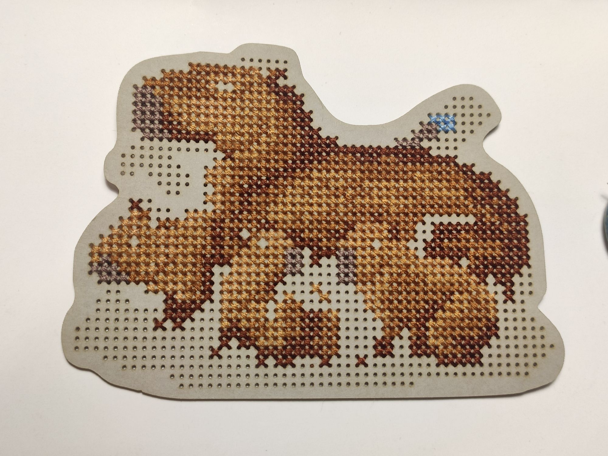 3 октября 2023 Попробую небольшой отчёт написать, пока чуток свободного времени нарисовалась. Вышивальное. 1) Капибара от Дивной вишни. В отличии от нескольких моих вышивальных товарищей (не будем показывать пальцами)))) мне очень нравится основа от Дивной вишни. Это что-то типа прорезиненной крафтовой бумаги. Поэтому после Олуш я смело взяла вышивать Капибар. Тем более, что Ася @Каори и Маша @Маса предложили совместник с тем, чтобы сфоткать все три капибарьих семьи в Балашихинское травке при встрече. Сказано - сделано!))) Ну и выгул под начинающимся дождем с фотосессией)))) Спасибо девчонкам за такой весёлый совместник! Предлагаю повторить 2) Заяц_folk от Оксаны Ершовой. Чем-то зацепил прям сразу. Был куплен схемой, но почему-то сразу не вышился. А потом Асик написала, что Оксана сделала основы под этого зайца и привозила их в Нижний. Ася взяла на мою долю и отдаст при встрече. Встреча состоялась и заяц был сразу вышит!) Нитки по ключу, бисер - полная импровизация) Заяц был наречен Золотцем Морковкиным) Радует меня яркими красками) 3) Оформленная работа. На работе встал вопрос с открыткой для генерального директора нашей компании. В разговоре родилась идея на открытку поместить вышивку. Я её развила. В итоге оформила и отдала на подарок от отдела Вокруг света Яны Головановой. Получилось вау-открытка!) Ну и куда же без гос. приемки?))) Оформляла в багетке возле дома. Сделали за несколько дней и довольно аккуратно. Взяла на заметку) Может быть воспользуюсь ещё. Тем более, что есть идея для ещё одного подарка. С моим вышивальным пока всё. Есть ещё процессы, но фоток нет с собой, поэтому их потом принесу. Raduga777, kas_julia, ЕленаМ и 32 других сказали спасибо Поделиться сообщением Ссылка на сообщение