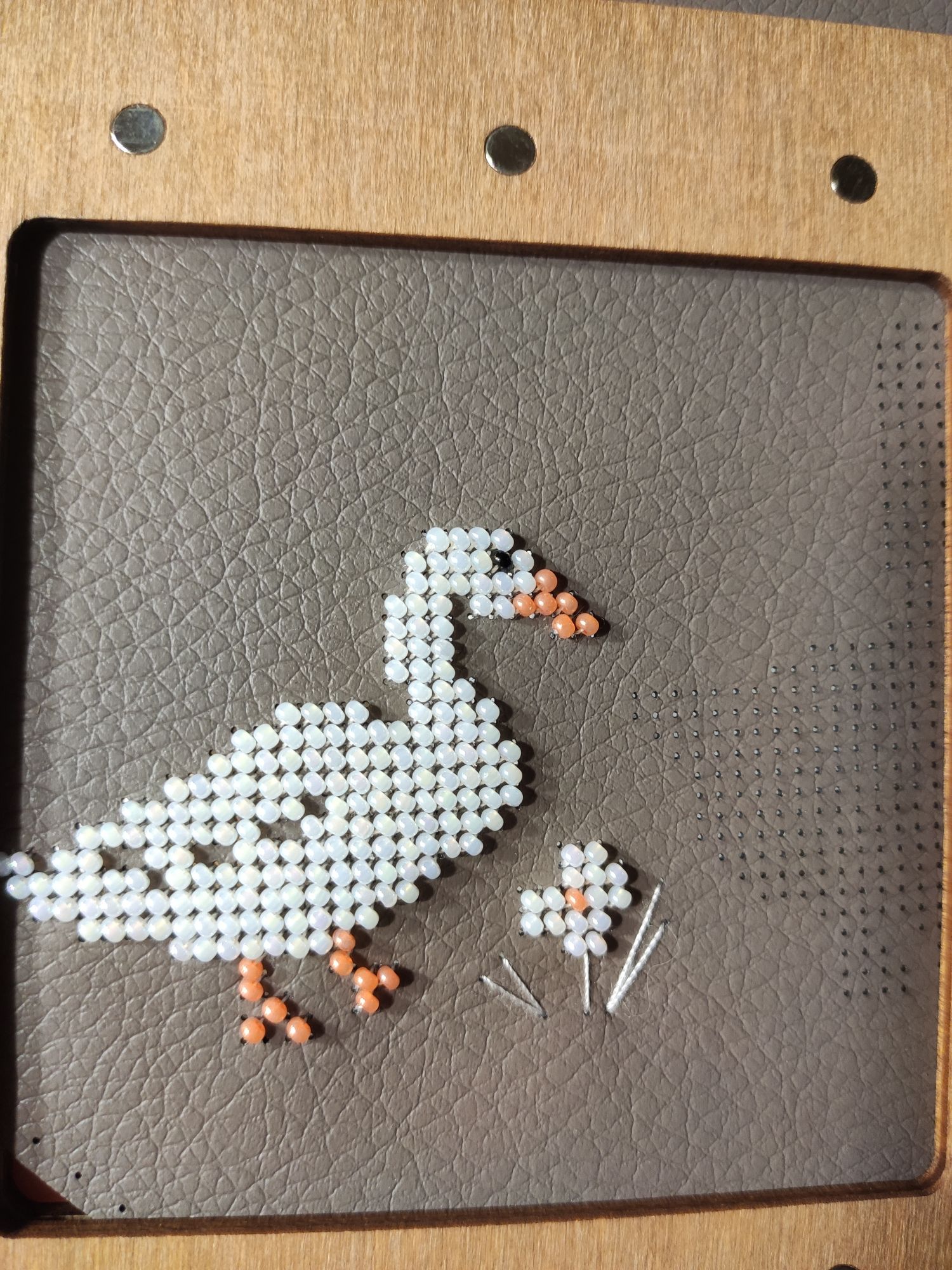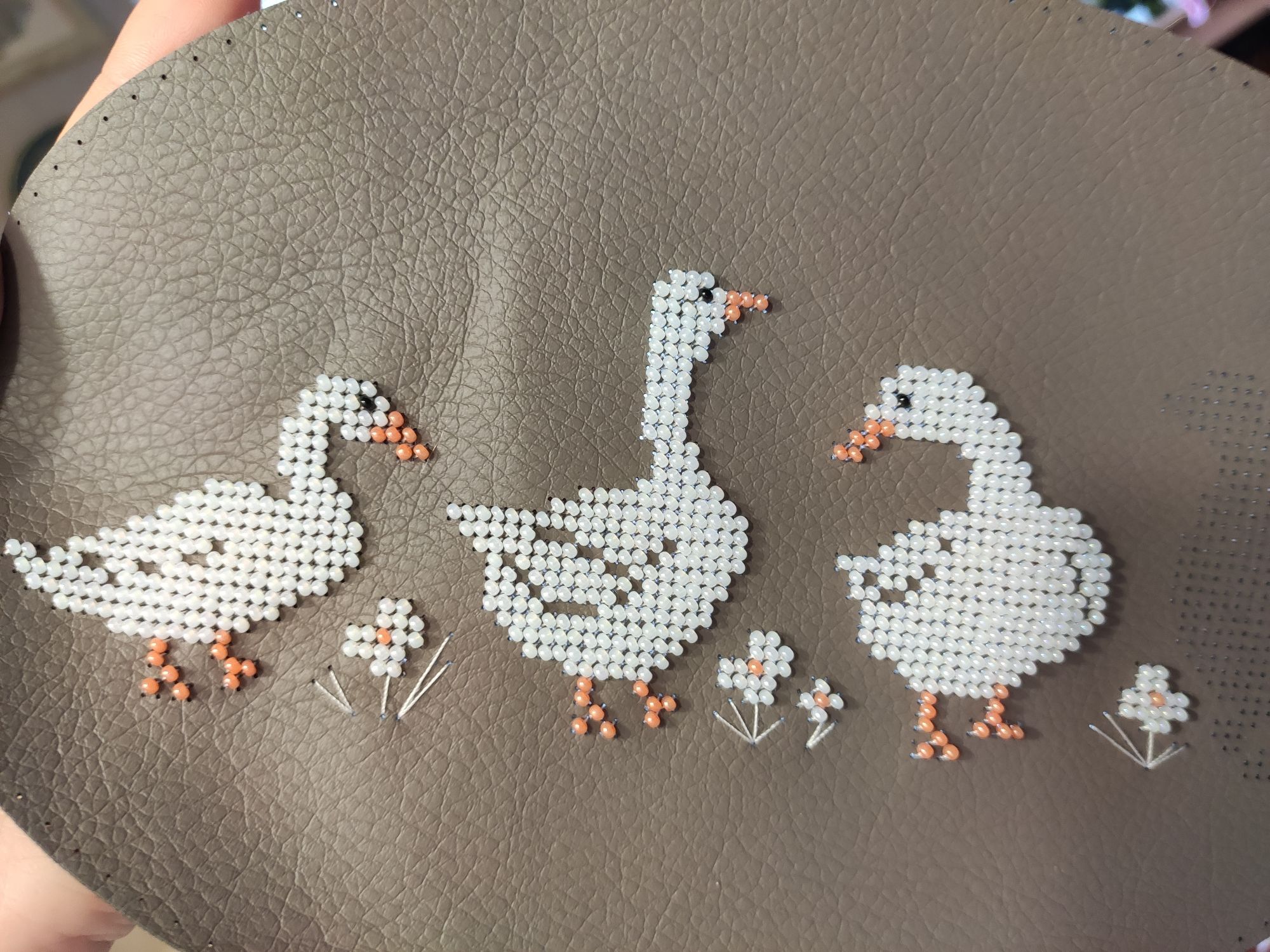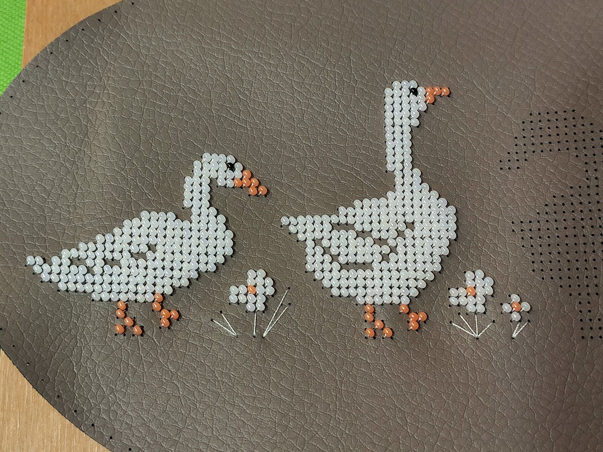 15 октября 2023 Есть, что рассказать, но что-то навалилось не очень хороших новостей и событий, поэтому я чуток ещё помолчу. Но на отчёт уже начинает зудеть, может и в ближайшее время появлюсь. Скрытый текст Ещё и заболела... Дочь приехала из Питера на похороны Жениной бабушки. В поезде заболело одно ухо, потом оба по нарастающей. В итоге остались с ней дома. Сейчас на антибиотиках. Ну и спустя несколько дней и меня подкосило - горло, сопли, слезы... Я опять вышивку принесла. Итак, Дивная вишня "Я тебя мур!" Всё-таки нравится мне шить на их бумаге. Потом я начала Белую тыковку от vetlanka Сейчас уже больше вышито, но уже дошью и принесу остальное. Но в какой-то момент душа и руки попросили бисера. Это, конечно, то ещё приключение, когда в доме очень активный котенок, но я справилась!) Неокрафт "Гусики лапчатые" В наборе экокожа с перфорацией, рамка и веревка-подвес. Бисер я подбирала сама. И мне прям очень нравится то, что получилось! Бэк я сделала теми нитками, которыми бисер пришивала. Вышилось за сутки - 2 гусика вечером и в ночи, а потом ещё 2 днём. Оформление тоже быстрое - пришил кожу к деревяшке, завязал узлы на верёвке и вешай) Очень нравится цвет экокожи. А ещё - я ее прогладила с изнанки и все "пузыри", которые возникают, когда вышиваешь и чуток вытягиваешь вышивку, убрались. Всем мира, добра и хороших новостей! OlkaY, Миссис Мыштон, Selenia и 35 других сказали спасибо Поделиться сообщением Ссылка на сообщение