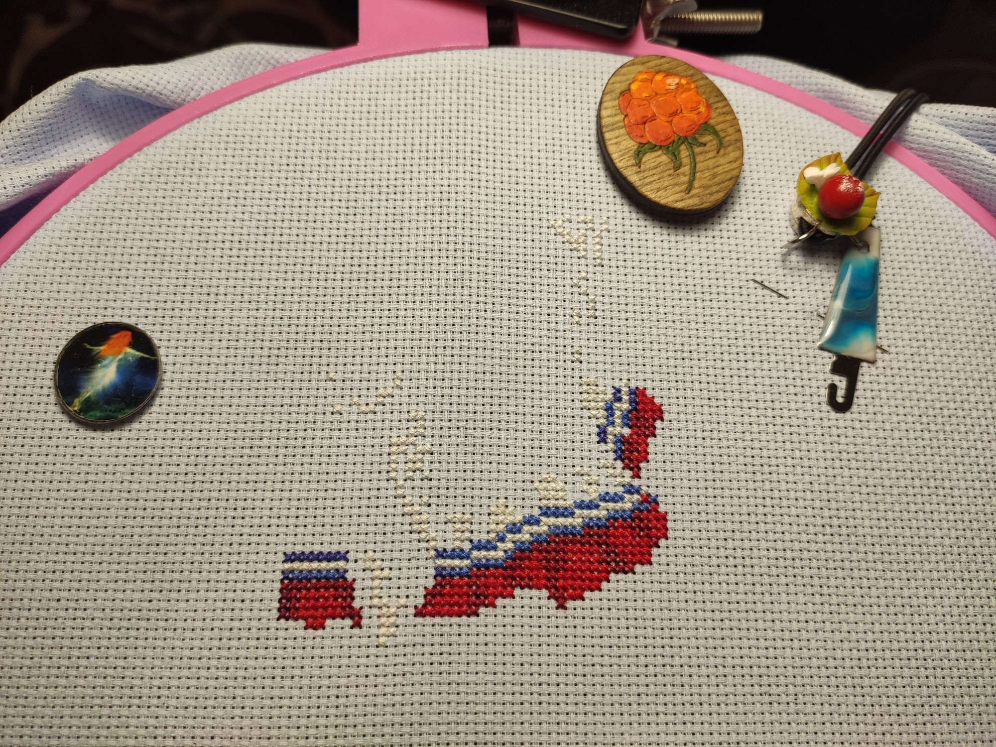 21 января 2024 Я опять про вышивку. Что-то вообще нет никаких ресурсов писать про что-то ещё. Хотя, в целом, всё норм. Ходим на квизы, встречаемся с друзьями. Надо витаминчиков попить, наверное))) А ещё - обычно не тороплю времена года, наслаждаюсь всеми, но в этом году отчаянно жду весны и тепла. Про вышивку. Дошилась Ёлочка от vetlanka. Бисер дался не очень просто - стала плохо видеть лён. А в остальном - полный кайф! Украсила по своему усмотрению - крупные и яркие игрушки и серебряный "дождик" или мишура)))) Всё как я люблю в обычной жизни))) В качестве "игрушек" и верхушки использовала остатки страз от Снежной королевы от Перунова цвета, а красные и зелёные "шарики" мне Асик подогнала, когда в декабре встречались))) Теперь надо будет подобрать рамки для этой ёлочки и для тыквы. Фото процесса ночные. И итог) А ещё двигается Африканка. Я на ней замираю и не могу ее быстро шить. Орнамент, серьги, бусы, цвета... Услада для моих глаз. Ну и новый процесс - полная противоположность африканки. Хотя... Тоже орнамент, цвета, сумочка с малююююсенькой золотой бусинкой, бисер и клауд)))) В общем, ещё одна гаечка. Северянка от Золотых ручек!) @lenning Лен, я её уже шью!) @Lorans магнитик с морошкой прям в тему!)) У меня к нему ещё и прихваты есть с морошкой и брусникой. Думаю теперь после ёлочки взять ещё что-то мелкое третьим процессом. Хотя и не исключаю, что африканка полетит или долгострой какой в руки прыгнет. Всем мира и добра!) Гало4ка, BlueeYeS, vasilisa-1977 и 39 других сказали спасибо Поделиться сообщением Ссылка на сообщение
