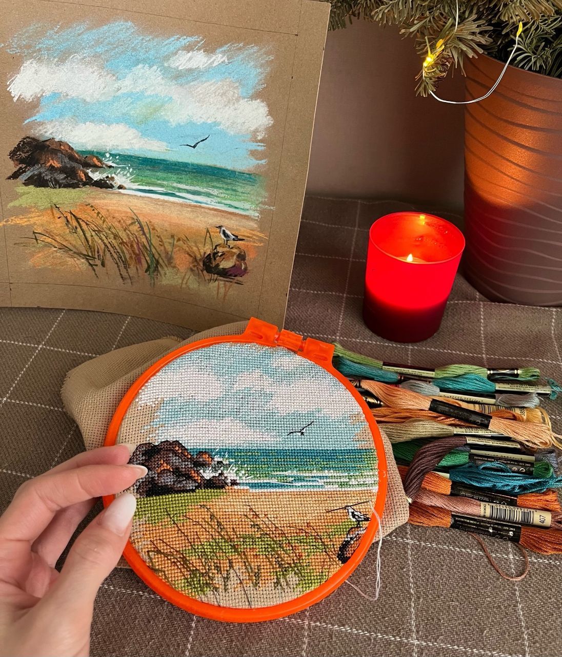 25 января 2024 Я по-быстрому с отчетом. Захотелось мне пошить бисером. Но так, чтобы цветов не много. И только подумала, как с полки практически прыгнул в руки долгострой. Начинала в 2013 году, но отложила... А дошился за 2 вечера.... Зеленим гаечку! В одном пакете с ним лежал Сонин долгострой. Она примерно тогда же начала, вышила фонарик и бросила. Снегурочка от Баттерфляй. Без гайки, ибо фото не делала. Оформлять в предложенную бумажную рамку не стала. Поищу простенькую, но покрепче. ) Ну и ещё одна гаечка, коли я зашла. Принесли тут в один чатик ссылку на Екатерину Андрееву. Это художник. У Овна очень много наборов по ее акварелям. Те же Флоксы, что я недавно купила, тоже её. Так вот Екатерина решила по одному из своих рисунков сделать схему сама. И получилось очень круто! «Встреча с морем» 16 каунт 93*90кл Нитки DMC 14цв, 5 блэндов из них, шов-обводка. Схема в формате PDF + saga Схему я купила сразу же, как она вышла. И очень удачно нашла у себя идеальный по размеру кусок бежевой канвы и все цвета ниток. А ещё ко мне едут ещё 2 наборчика от Алины Ершовой. И ещё куча планов на то и на сё... Ладно, как будет, так будет))) svetlana62, Дикая белочка, Juliay и 32 других сказали спасибо Поделиться сообщением Ссылка на сообщение