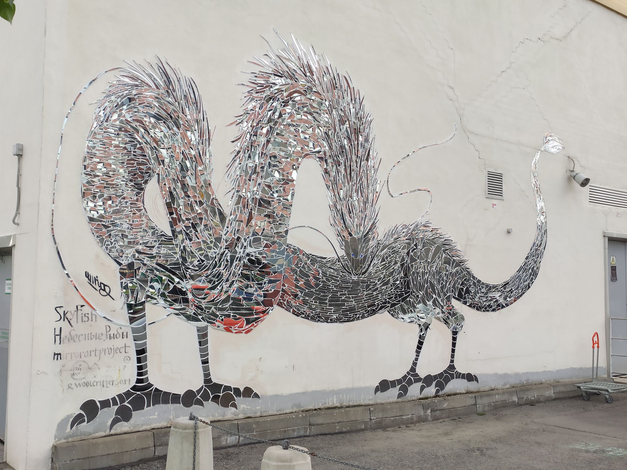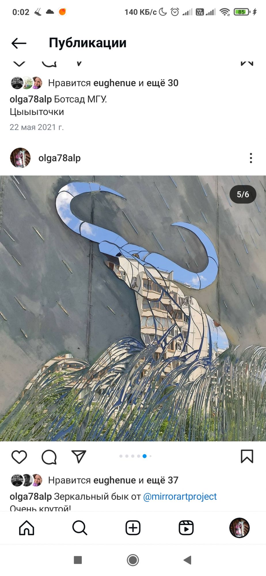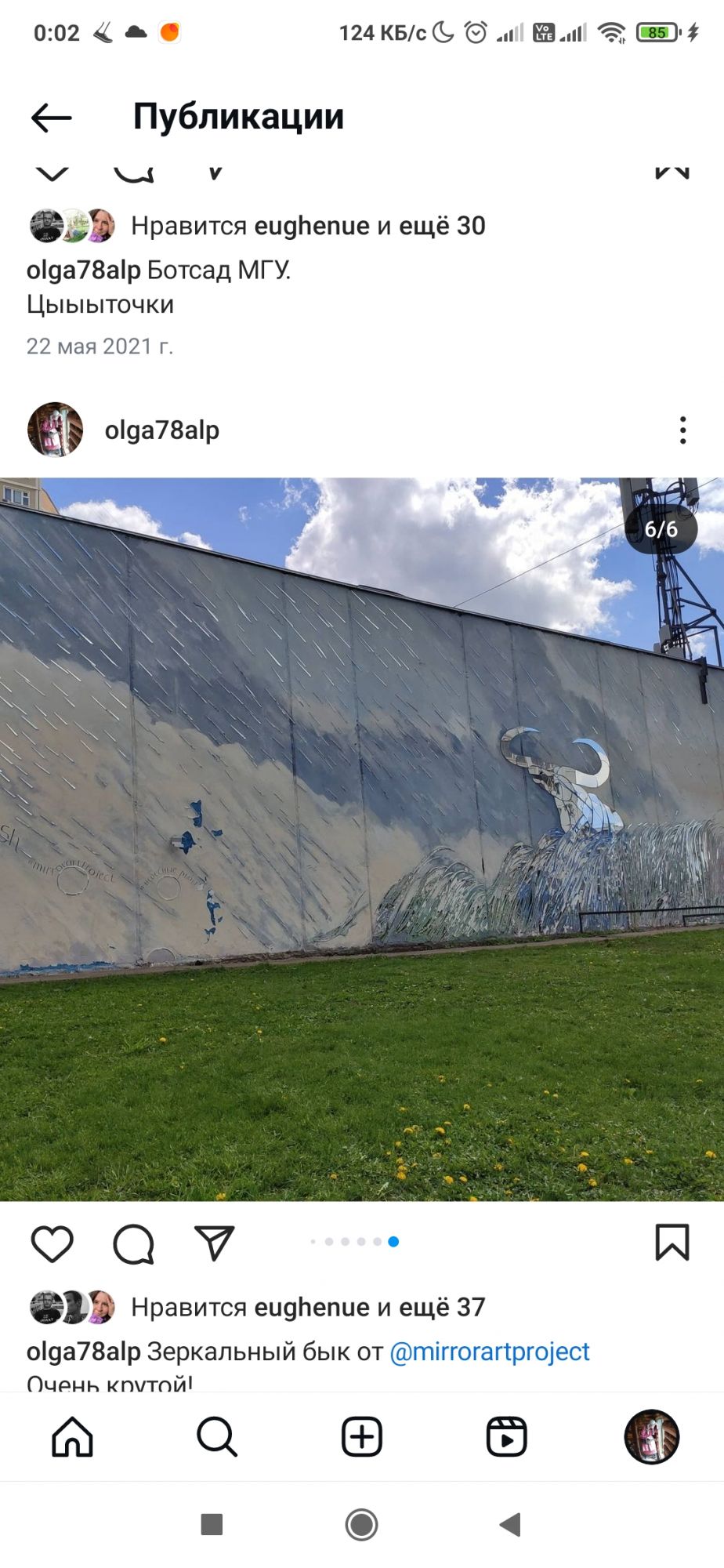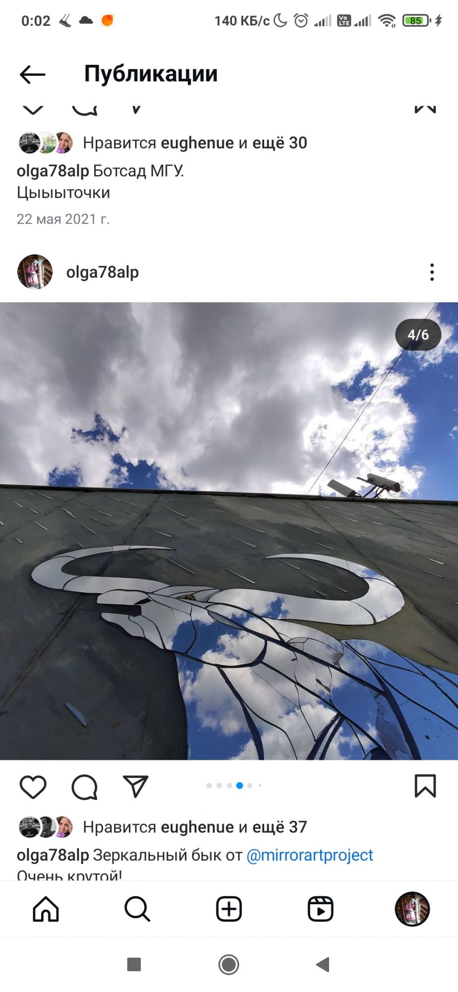 7 августа 2024 А теперь вжух и вернулись в апрель)))) В те самые зажатые мной "старики")))) 20 апреля Анечка назвала нас на Бегущий город. В этот раз это были районы Динамо, Аэропорт, Тимирязево и ещё пара соседских, вроде. Погода была отличная! Стартовали у арт-пространства Дизайн завод на Новодмитровской. Финиш потом тоже был тут) А дальше мы бродили по разным дворам и районам, отыскивая ответы на загадки. Заодно любовались весной, просыпающийся зелени на деревьях и первым цветам. Радовались фиалкам, примулам и первым бутонам ландышей. Район Аэропорта облюбовали для своих работ ребята из проекта Небесные рыбы. Я давно за ними слежу в соцсетях и уже видела пару их работ. Это нечто невероятно крутое. Первая работа, которую я увидела, был зеркальный осьминог на Алексеевской. Но я почему-то тогда в апреле 21 зажала рассказ о той прогулке, а вот Асик @Каори не поленилась и написала отчёт (осьминог в конце))) А в мае 21 года мы с Анечкой и Женькой дошли до их зеркального быка, которого я внезапно тут не показала, а только в инсте тогда выкладывала. Но, уж коли зашла речь про мозаики, покажу фото быка. Ну и оставлю тут ссылку на карту работ Небесных рыб. Вдруг кто захочет прогуляться и посмотреть лично) https://yandex.ru/maps/?um=constructor%3Aec1d101ec97afefa0f6b1495f68576a63bb79b88ca70ee740dd6036829859ed9&source=constructorLink И ссылка на их телеграм https://t.me/mirrorartprojekt ___________ Что-то глюкнуло, поэтому продолжу в другом сообщении. Аринесса , Гало4ка, irchick2308 и 27 других сказали спасибо Поделиться сообщением Ссылка на сообщение