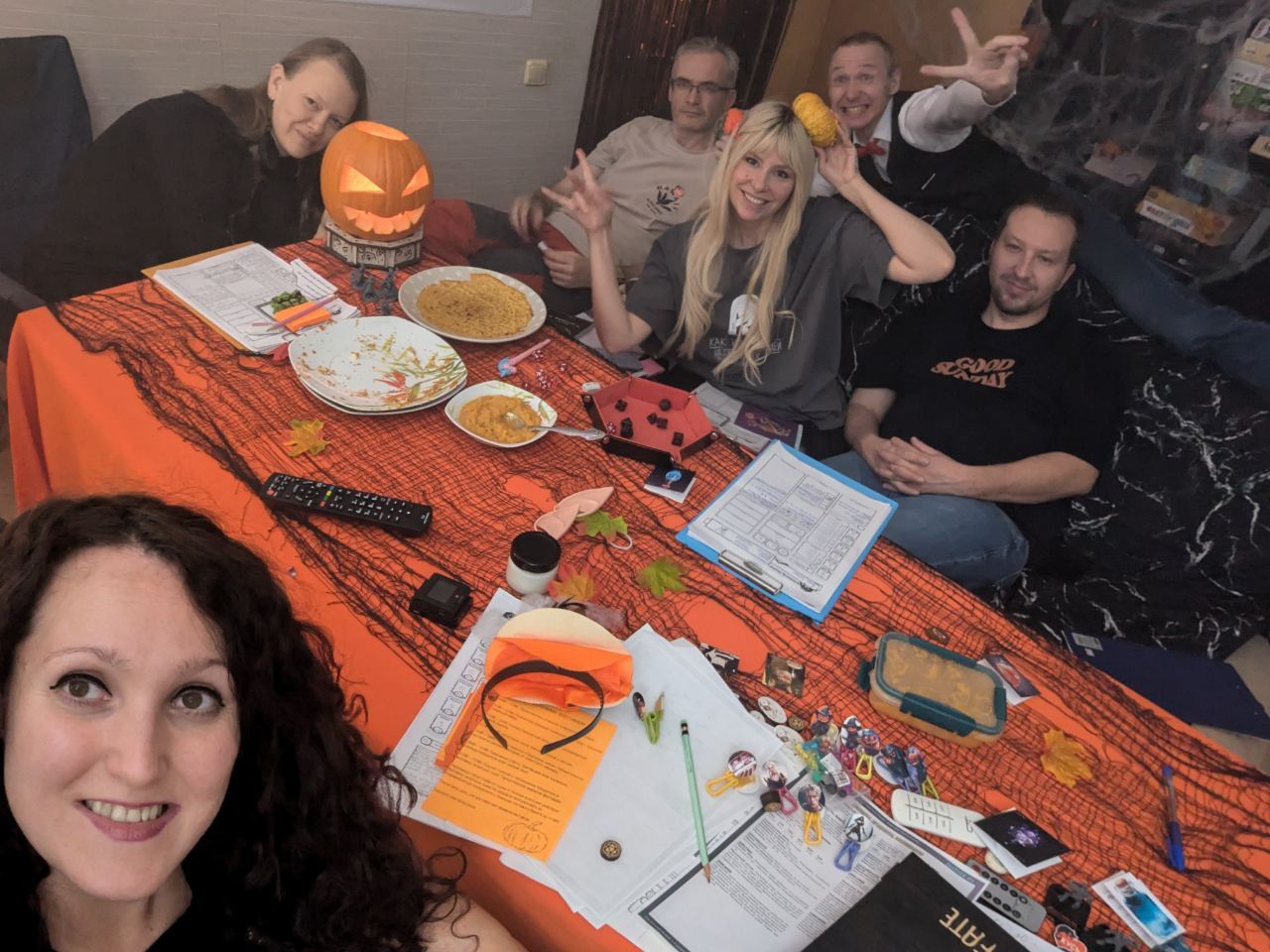 10 ноября 2024 Девчонки, спасибо за поздравления! Очень приятно, что, не смотря на моё долгое отсутствие, меня тут ещё помнят)))) Вышиваю крайне мало сейчас, но компас потихоньку двигаю к финишу) Уж коли вышивку не принесла, принесу себя))) Дочка подарила мне несколько коротких платьев на день рождения, сказав, что пора уже носить и такое, вспомнив молодость))) Чёрное платье на фото - это как раз дочкин подарок. А синее - это платье, которое я в 35 лет себе купила, когда похудела сильно))) Решила ради интереса померить - и оно отлично село!))) В зал продолжаю бегать к 8 утра по понедельникам, средам и пятницам) Кайфую) Ну и, как я считаю, довольно успешно пару раз уже наслаждалась ролью бабушки. Это Ваня 4 года))) Ещё из новостей - одна чудесная девушка устроила небольшой компании бесплатную экскурсию на завод Московской Пивоваренной компании))) Было чудесно! А в конце была дегустация, где нас познакомили с главным пивоваром - Михаилом Ершовым. Бонусом нам показали маленькое помещение Волковской пивоварни, где варят экспериментальные сорта))) Купила себе на память классную толстовку у них (я на фотке из зала в ней) А после МПК у нас была тематическая игра в DnD в стиле Хэллоуина))) Или тыквенная вечеринка) Иришка классно всё украсила))) И с едой мы заморочились. Были брускеты с запеченой тыквой, руккодой и стратичеллой, были тыквенные блины с начинкой из запеченая тыква + яблоко + чуток сливочного масла и ещё был пирог типа чизкейка и тоже с тыквой))) А главную тыкву вырезал Женя) А вчера на моем дне рождения рубились с соседями и детьми (Дима с Настей приходил и Соня сейчас дома живёт) в Саграду. Всё-таки это великолепная игра! И по красоте и по интересности. Соседям тоже понравилось) Вот такие вот последние новости) Гало4ка, Nadinka-Blondinka, vasilisa-1977 и 33 других сказали спасибо Поделиться сообщением Ссылка на сообщение