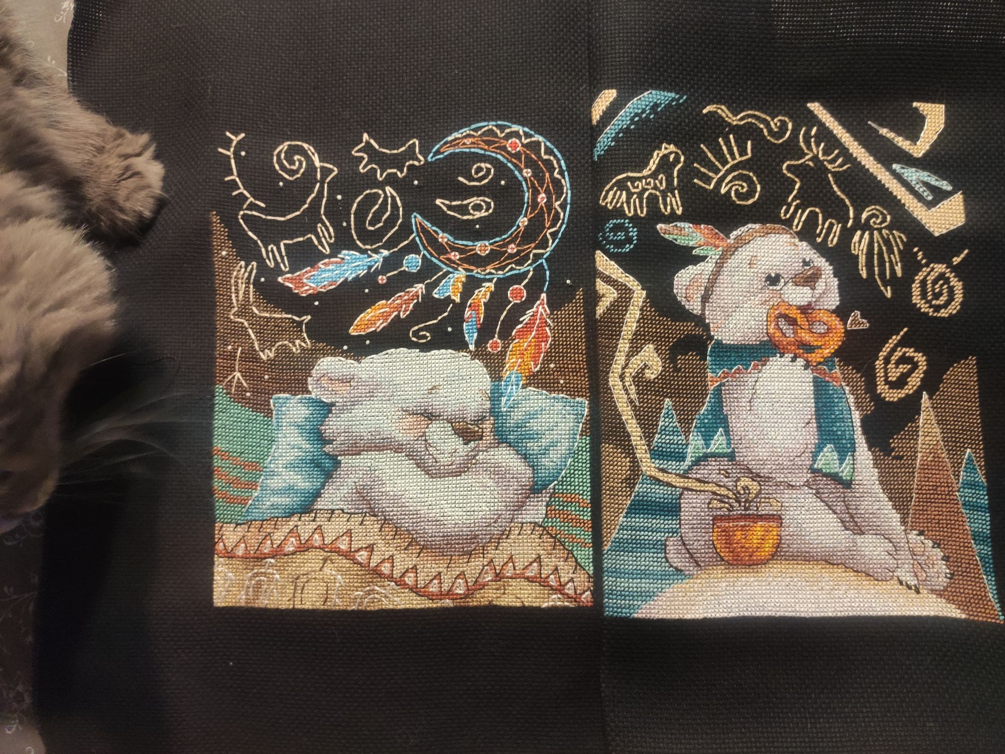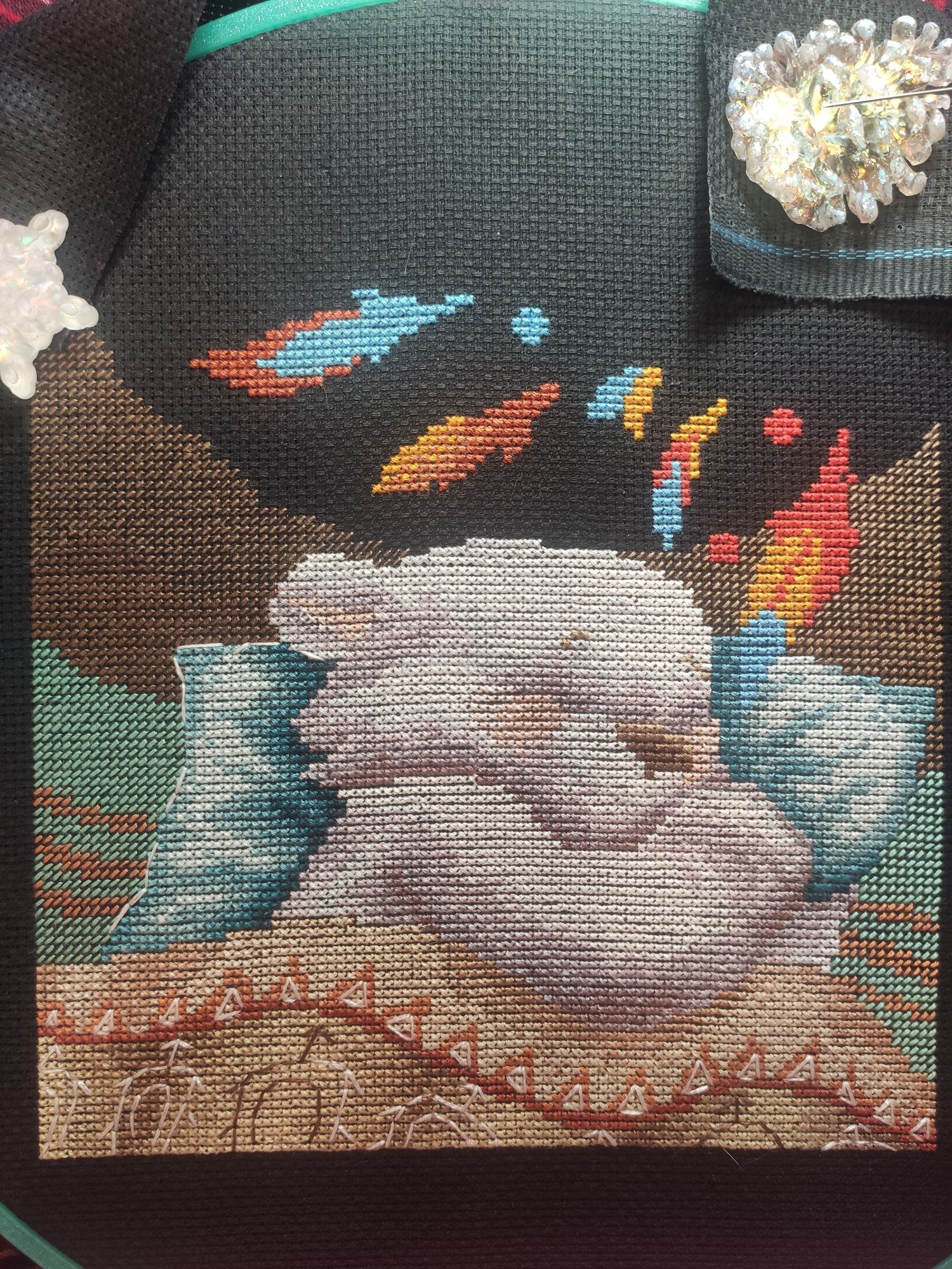 3 апреля Ну и ещё то, что нашла))) Ещё один мишка от МП-студии. Подарок от Масы) И оба мишки вместе))) Ещё начала Кота-садовода от РТО. Подарок Кати (познакомились в телеге) На вышивке прям мой Тошик) Сейчас уже почти дошит хвост. Но его на фото нет, поэтому потом принесу))) Почему-то не показывала тут ещё одну вышивку по набору Алины Ершова "Ангел вдохновения". Обложка Отшив: Из начатого. Серебряное копытце от Перунов цвет. И вот прям то, что начала на днях и очень хочу быстро вышить и сфоткать на улице... В прошлом году такую картину живьём видела - на нашем поле на каждой вербочке сидело по несколько бабочек. В этом году не знаю - повториться ли, ибо снег обещают на выходных. Схема Елены Рощупкиной Бабочки на вербе. Сейчас тут тоже чуток побольше вышила, но не сфоткала. Вышиваю сейчас не так много, как раньше. Но что-то шьётся) Юнона1960, Аленка-2, Каори и 28 других сказали спасибо Поделиться сообщением Ссылка на сообщение