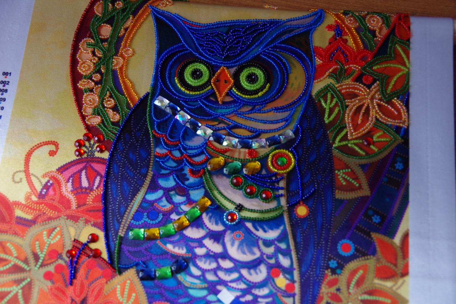 26 марта 2013 Вчера навесила Совунье на грудь ордена и медали. Вся аж засияла. Хотя после того, как вокруг зашивается бисером, сияние приглушается и смотрится более гармонично. Камни китайские. Не везде до конца "обработаны напильником". Видно это при близком рассмотрении работы. Чуть дальше отходишь и уже не видно никаких изъянов. Бисера темно-синего что-то мне кажется что может не хватить... Но может я и ошибаюсь. Опять же - именно в темно-синем видно нитки... хотя у него серединка серебристо-белая... может и не нитки видно, а он этакую пестроту сове придает... Опять же повторюсь, что когда пришиваешь бисер, то видишь его совсем близко и знаешь все свои огрехи. ))) Мужу нравится, сыну тоже. ))) А еще - нашла свою ошибку. На схеме значки темно-синего бисера и черного очень похожи. И не везде понятно какой надо брать. Оказалось, что в цветах надо было использовать черный с пестиках/тычинках... а я темно-синий пришила. Буду пороть... Благо, что там не много... apanjul, ss-kostenko и veravas сказали спасибо Поделиться сообщением Ссылка на сообщение