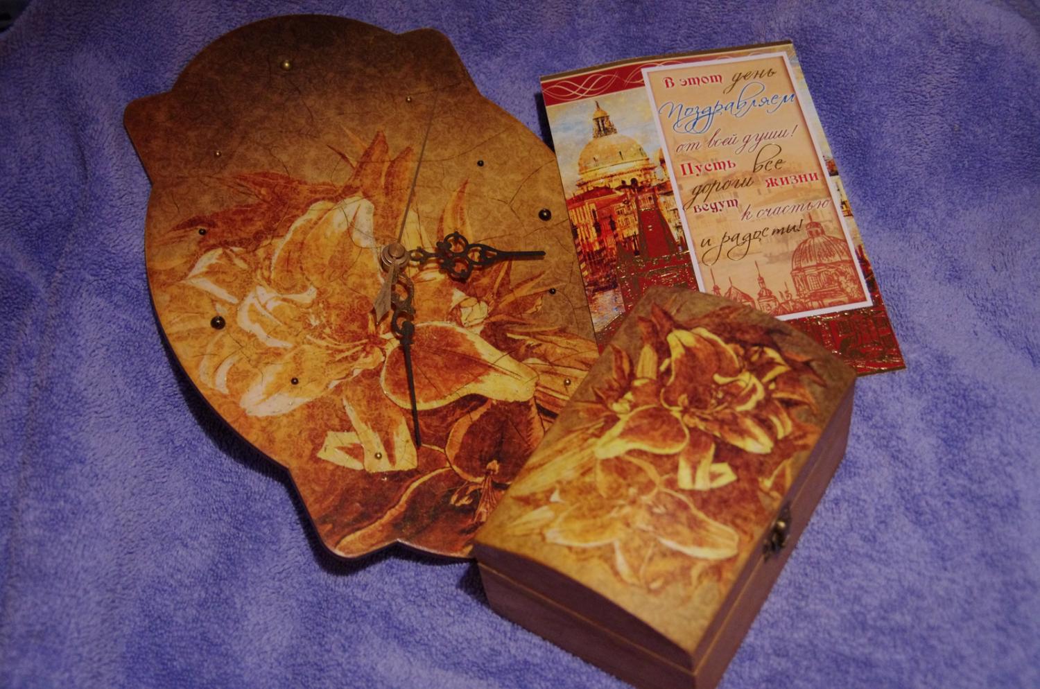 10 ноября 2013 Как и обещала - хвастаюсь подарком, который пришел мне от Ани Маури и Наташи Львицы! Извещение пришло 2 ноября. Но сыну отдавать посылку на почте отказались, сказали, что получать надо лично. А я по будням на почту не попадаю. Поэтому получила подарок аккурат в день рождения! Коробку распотрошили с дочкой еще на почте. И под завистливые взгляды тех, кто стоял в очереди мы рассматривали красотень! Вот такие часики и шкатулку я получила! Часы уже повесила (правда на временное место). Сори за качество фото - сегодня денек очень пасмурный. Все супер-пупер аккуратно и со вкусом! А еще мой сын ездил 9 ноября штурманом на соревнования внедорожные. И по итогам 5 соревнований их экипаж занял первое место и получил кубок ЗОВа. Вот такой вот подарок получился для мамы на день варенья. Фотки будут попозже - похвастаю потом.))) zoarka, Tari, ss-kostenko и 10 других сказали спасибо Поделиться сообщением Ссылка на сообщение