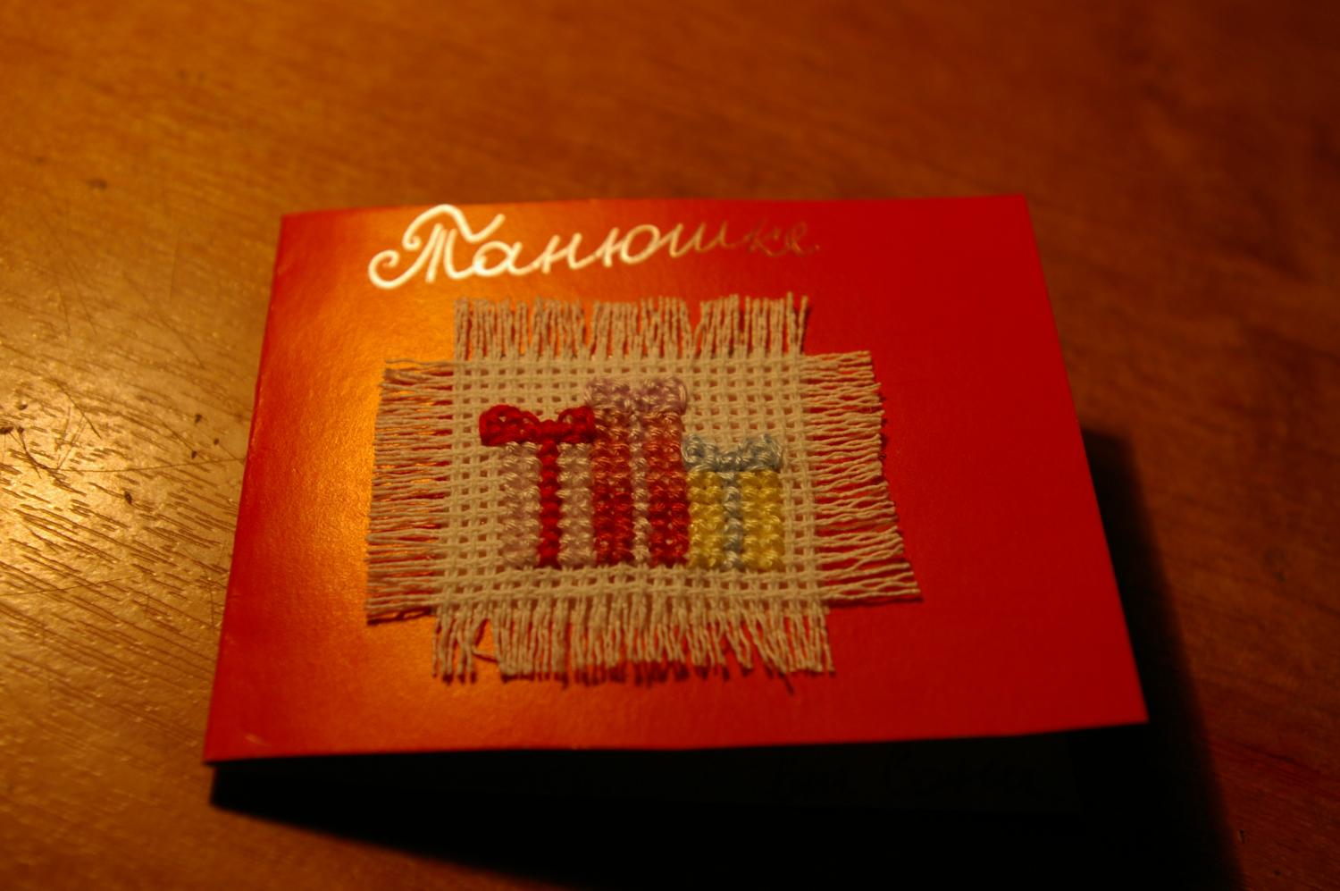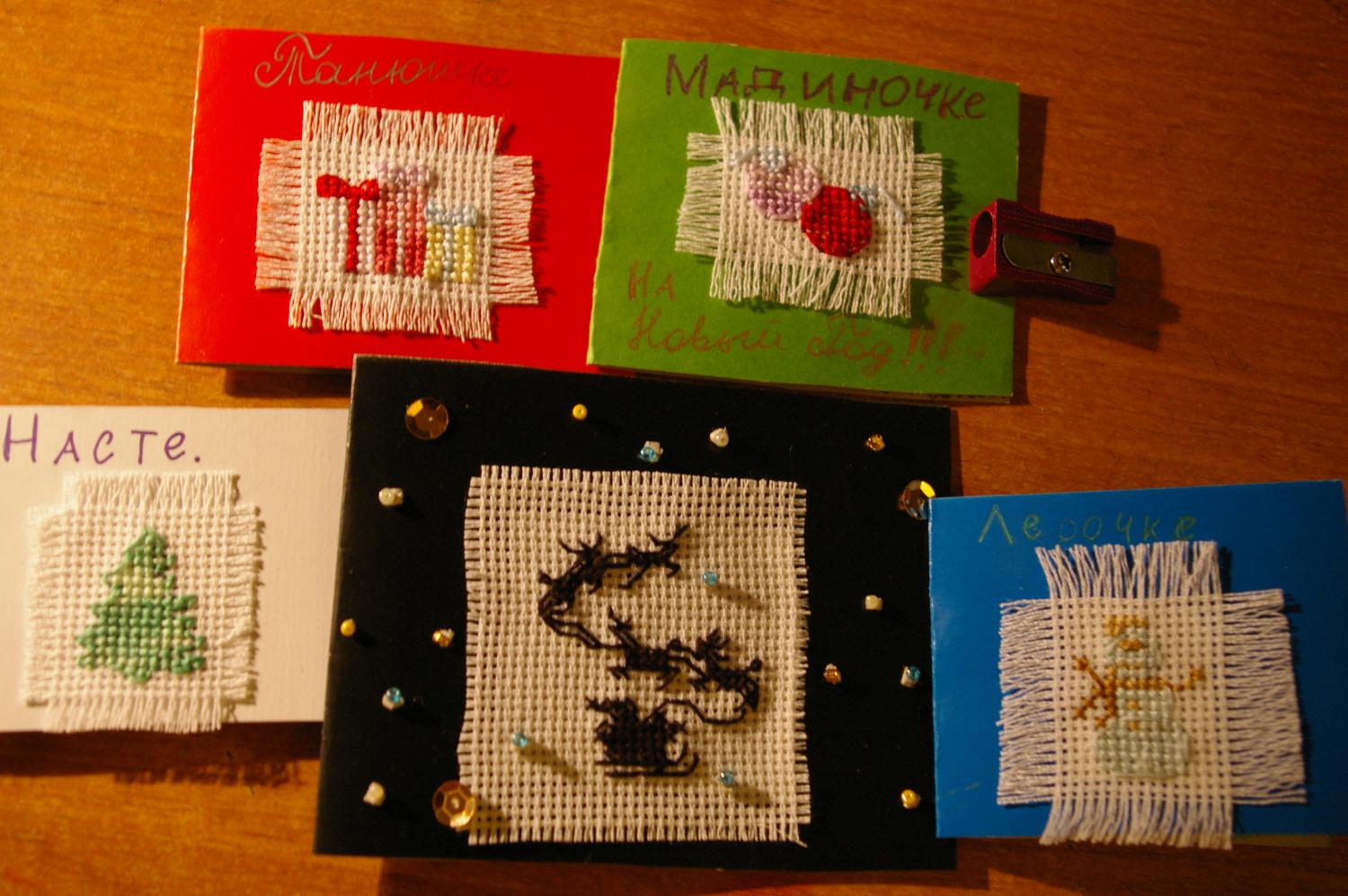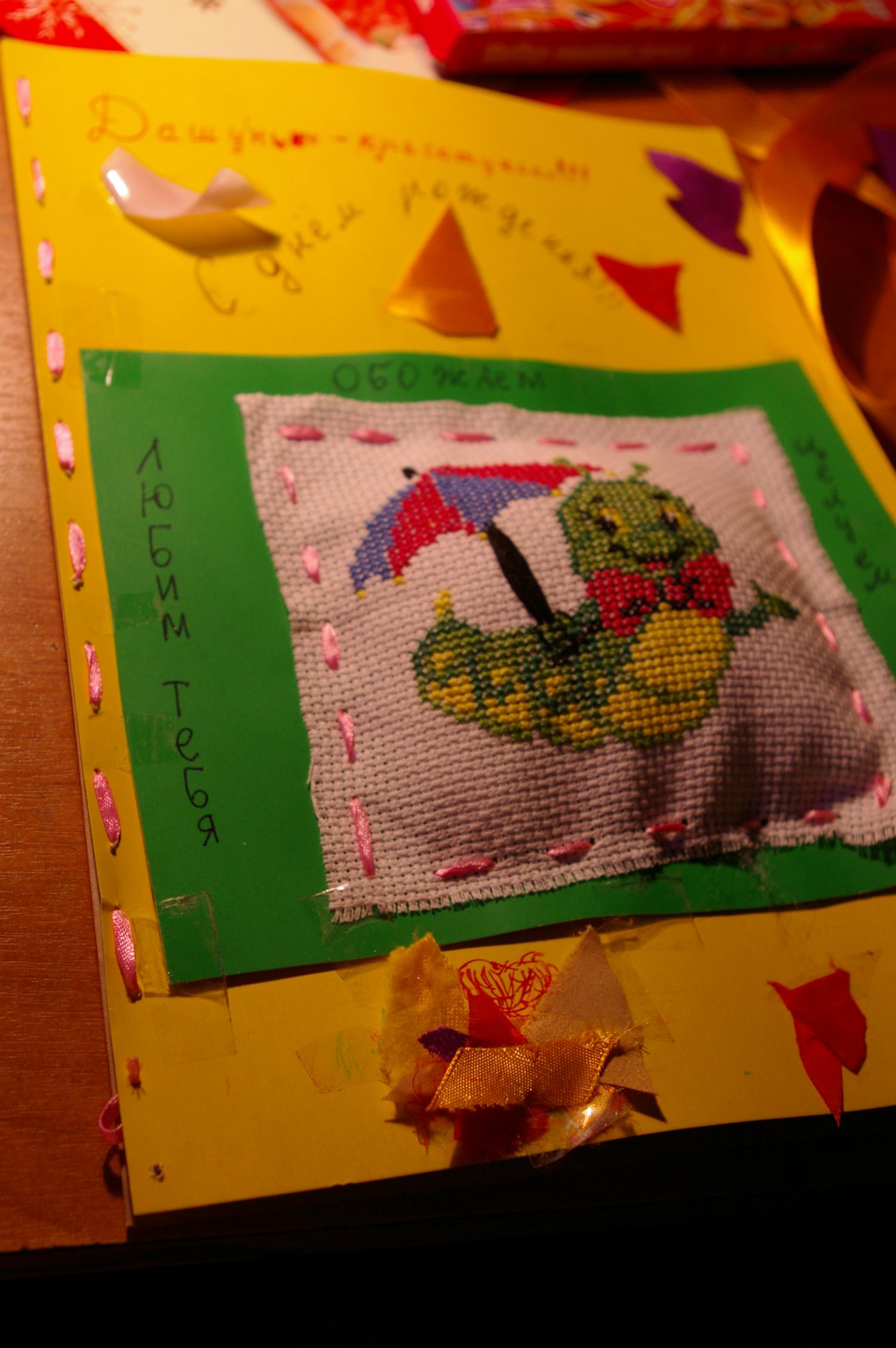 13 февраля 2012 Выкладываю Сонины законченные работы: Цыплята: Гусеничка (из вышивки была сделана открытка, только сфоткана не особо удачно, т.к. живьем смотрелась гораздо симпатичнее) Ну и кучка Новогодних открыточек (вышивались в подарок девчонкам из танцевального коллектива): Поделиться сообщением Ссылка на сообщение