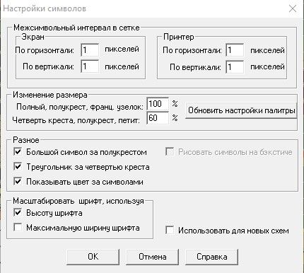 4 февраля 2022 При настройках (стоят галочки) большой символ за полукрестом и треугольник за четвертью креста, в перенаборе вид моих символов такой: 1. Полукрест отражается верно и в символах и в стежках. 2. Дробный крест не верный вид в символах, но правильный в стежках. В данном случае дробный крест я ставлю клавишей четверть креста и закрываю полукрестом. Поделиться сообщением Ссылка на сообщение