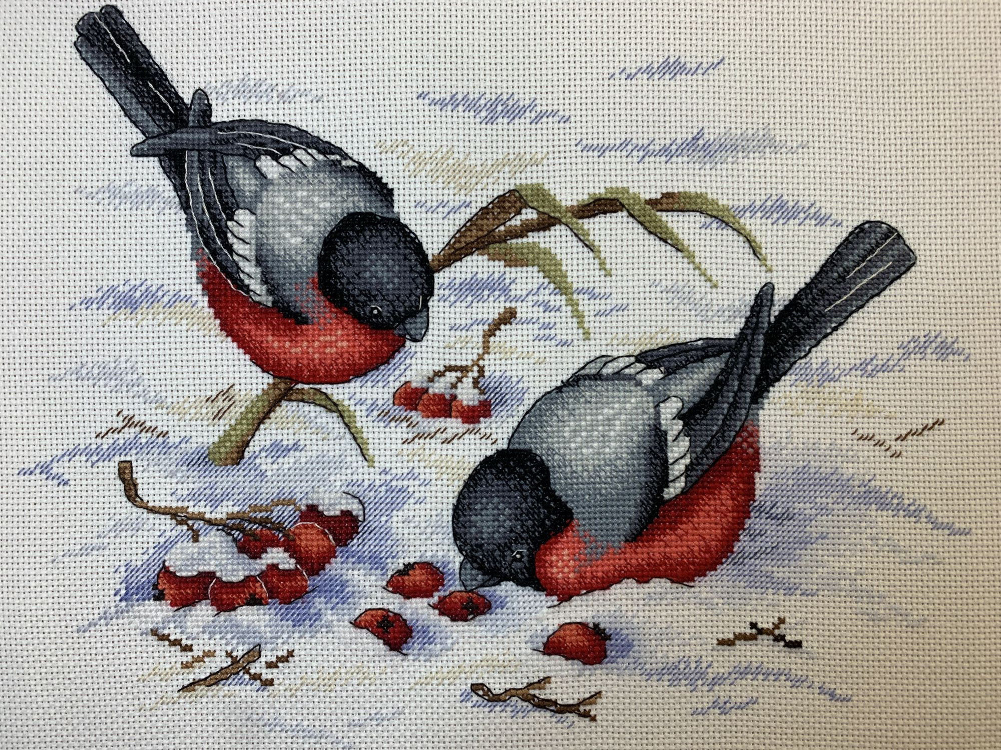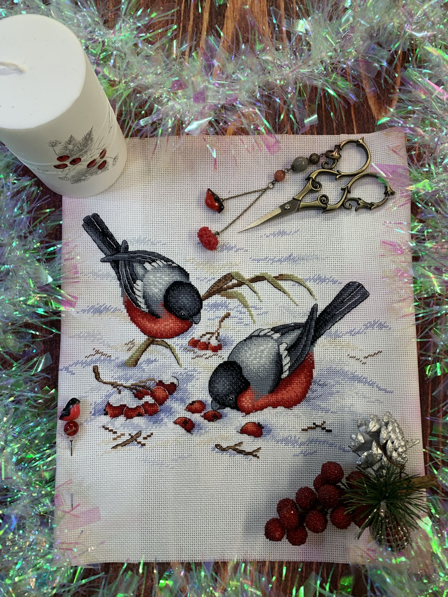 21 декабря 2021 -Закончила снегиря. Впечатления по набору: ниточек хватило, не рвались, канва - очень жесткая Аида 16, схема а ля Дим (черно-белые и цветные символы на белом фоне), понятная. думаю, устроит и любителей цветных, и черно-белых схем. Для бэка отдельный лист. Оформила в фоторамку 18*24 из запасов. Результатом вышивки довольна, новогоднее настроение обеспечено) Дикая белочка, sakineva, Natashik1978 и 15 других сказали спасибо Поделиться сообщением Ссылка на сообщение