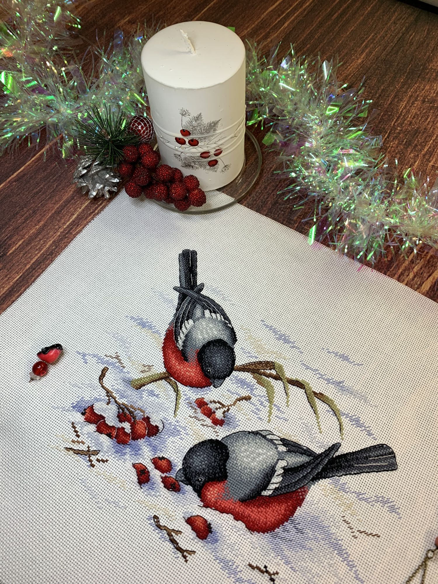14 декабря 2021 Девочки, доброе утро! Хочу показать свой небольшой процесс, который взяла для скорого создания зимне-новогоднего настроения. Набор прилетел ко мне в подарок от Марины mag и оказался очень кстати, когда нестерпимо захотелось скоро и запойно вышить себе настроение на Новый Год. Так выглядит набор Это ягоды и травины без бэка , это с бэком . Левая птичка без бэка , с бэком . Правая птичка без бэка , с бэком . Законченная и постиранная работа . А это парадные фото (Фото НЕ в гаечку) В наборе канва 18 каунта, так что в полном смысле отдыхалочкой я эту работу назвать не могу, для моих глаз напряжение. Хотя главную функцию этот набор бесспорно выполнил, новогоднее настроение есть. С наступающим! Vkiseleva21, снежик, shustri4ka и 28 других сказали спасибо Поделиться сообщением Ссылка на сообщение