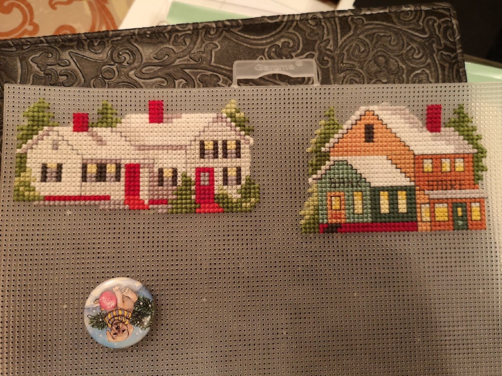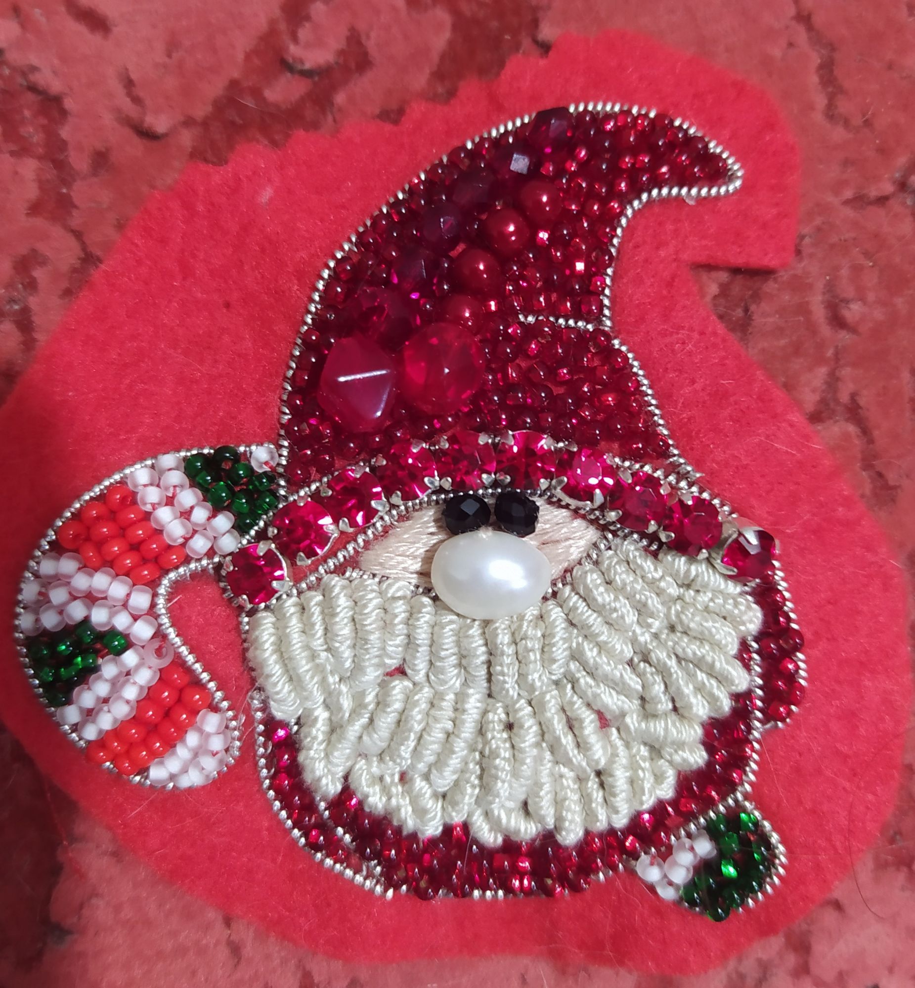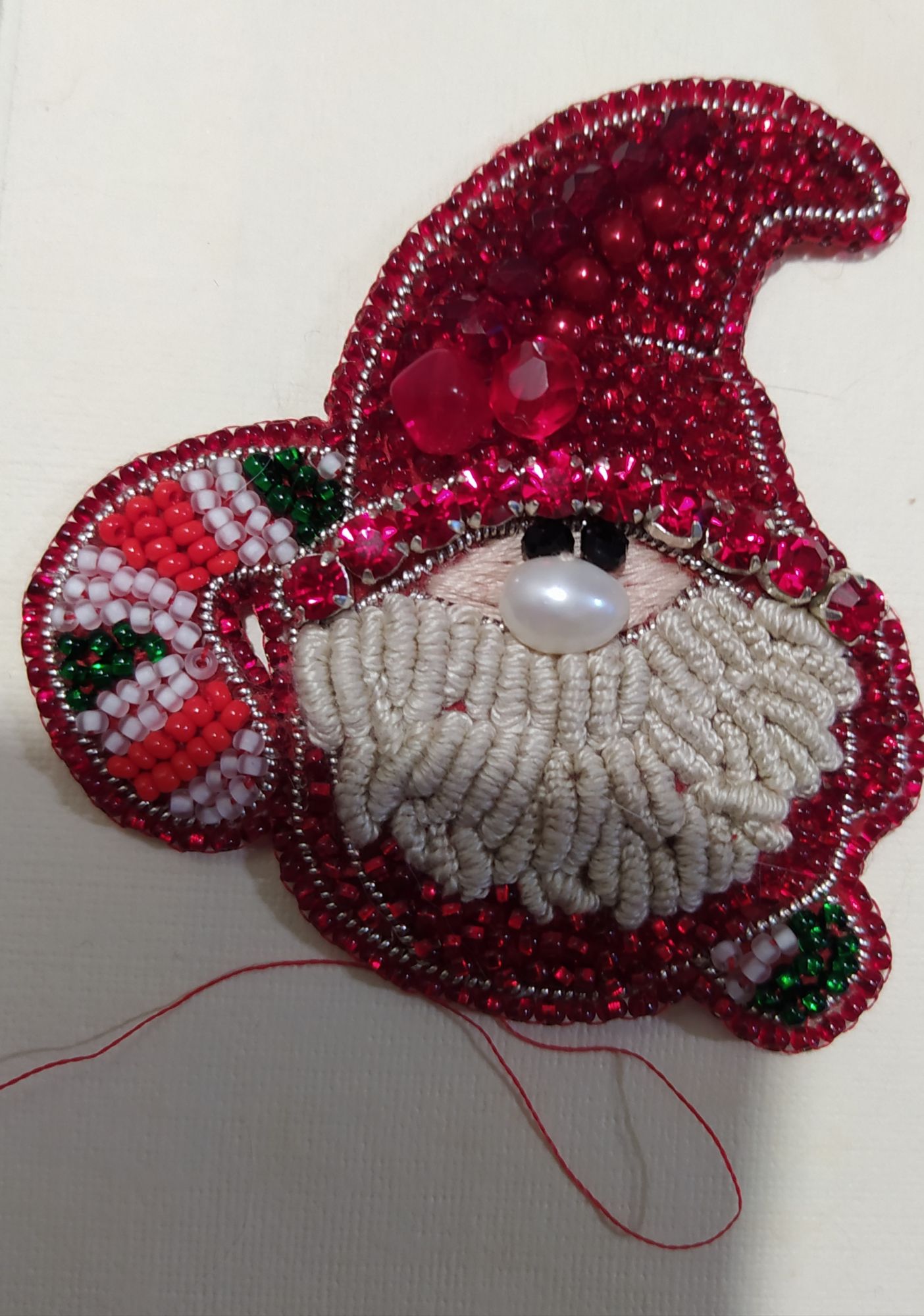 3 января 2022 Вышиваю Пряничный домик, дизайнер Тарусова Полина, это бесплатная схема, можно скачать в разделе схемы. Начала ещё в прошлом году, пока почти готова одна стена И два законченных процесса: 1) Рождественские певчие. Переделка очень старого Дима из Amishop, в целом всё неплохо, но цвета, конечно, отличаются от тех, что видно на фотографиях оригинального набора. Серые цвета на мышке мне совсем не понравились, их заменила 2) Моя реплика Гномика от фирмы Чаривна Мыть, вышила из материалов из запасов на фетре. Очень интересно было вышивать контур канителью и подбирать подходящие бусинки. Особенно нравится нос - это настоящая жемчужина снежик, Yulik, Ксен40 и 12 других сказали спасибо Поделиться сообщением Ссылка на сообщение