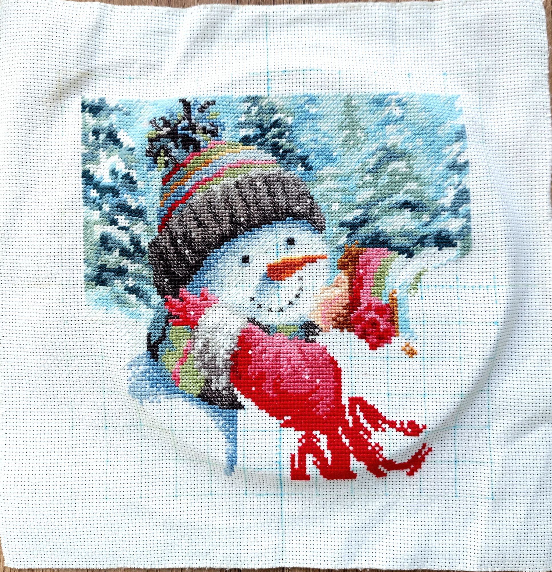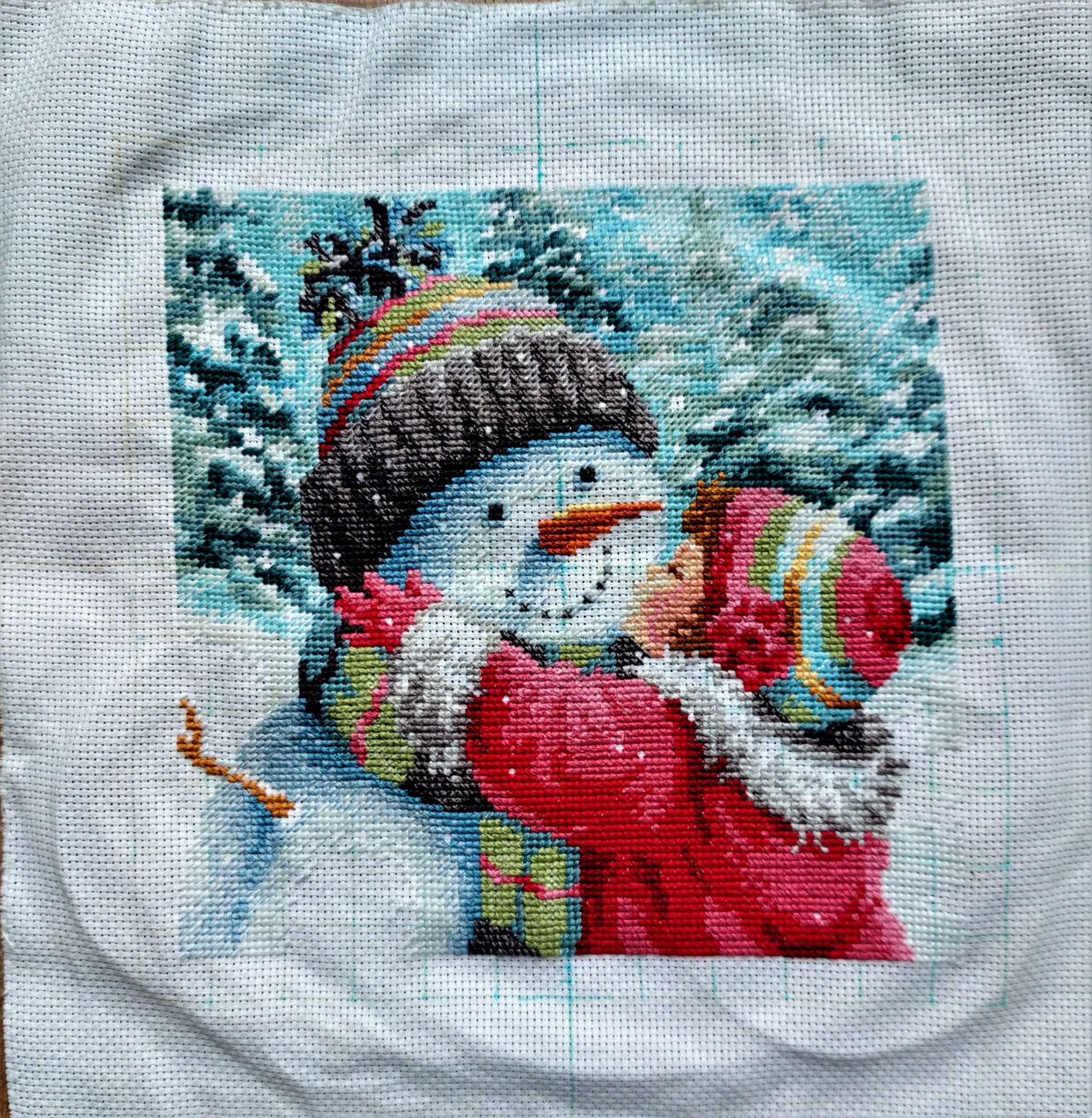 14 октября 2022 Как-то тихо стало в теме. Все сидят, вышивают, хвастаться не хотят. А у самих, небось, уже ужас сколько навышито. Ладно, тогда я со своим продвижением Снеговичка. Вот уже и лицо девочки появилось, плюс закончила всю верхнюю часть вышивки (кроме бэка - его, по классике, шью в последнюю очередь). Для меня с моей черепашьей скоротью продвижение достаточно значительное, но тому несколько причин: 1) я практически 10 лет (!!!) не вышивала и, как выяснилось, сильно по этому делу соскучилась, 2) я в отпуске и времени свободного чуть больше, и 3) весь лес шьется полукрестом, т.е. получается быстрее. Хотя... Шить по 18-ому каунту полукрестом в 4 нити - это, я вам доложу, еще то "удовольствие"! Но, в любом случае, дело движется к своему логическому завершению. И это, конечно, очень подстегивает. Хозяйка смешных зверей, Ксен40, sakineva и 9 других сказали спасибо Поделиться сообщением Ссылка на сообщение