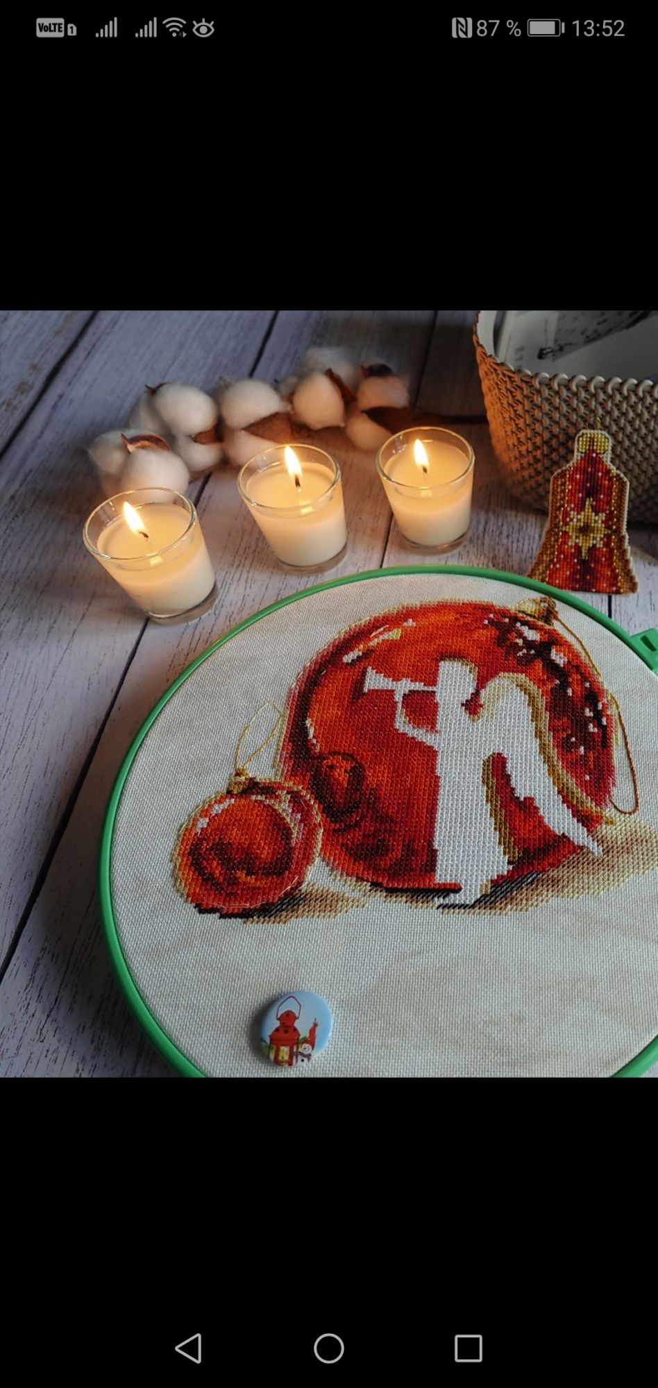 8 ноября 2023 3 часа назад, Ivi сказал(а): Вообще красный такой новогодний цвет, а шарик - это просто классика в вышивальном исполнении. Таня, спасибо большое за лайфхакер с петелькой. Я снимала финиш Ангела РТО и говорила об этом, я тянусь к красно-золотому в этом году Шарик начала, вышила четверть примерно вчера, долго сидела, за полночь. И поняла, что ошиблась, справа не хватает основы, ну это только я так могу( После работы буду начинать заново, главное и металликом прошлась. Ладно, бывает. 4 часа назад, Татуся сказал(а): Конечно, лучше в одну гайку! сделала! Танюша, большое спасибо Ivi, 19199707770, нельга и 2 других сказали спасибо Поделиться сообщением Ссылка на сообщение