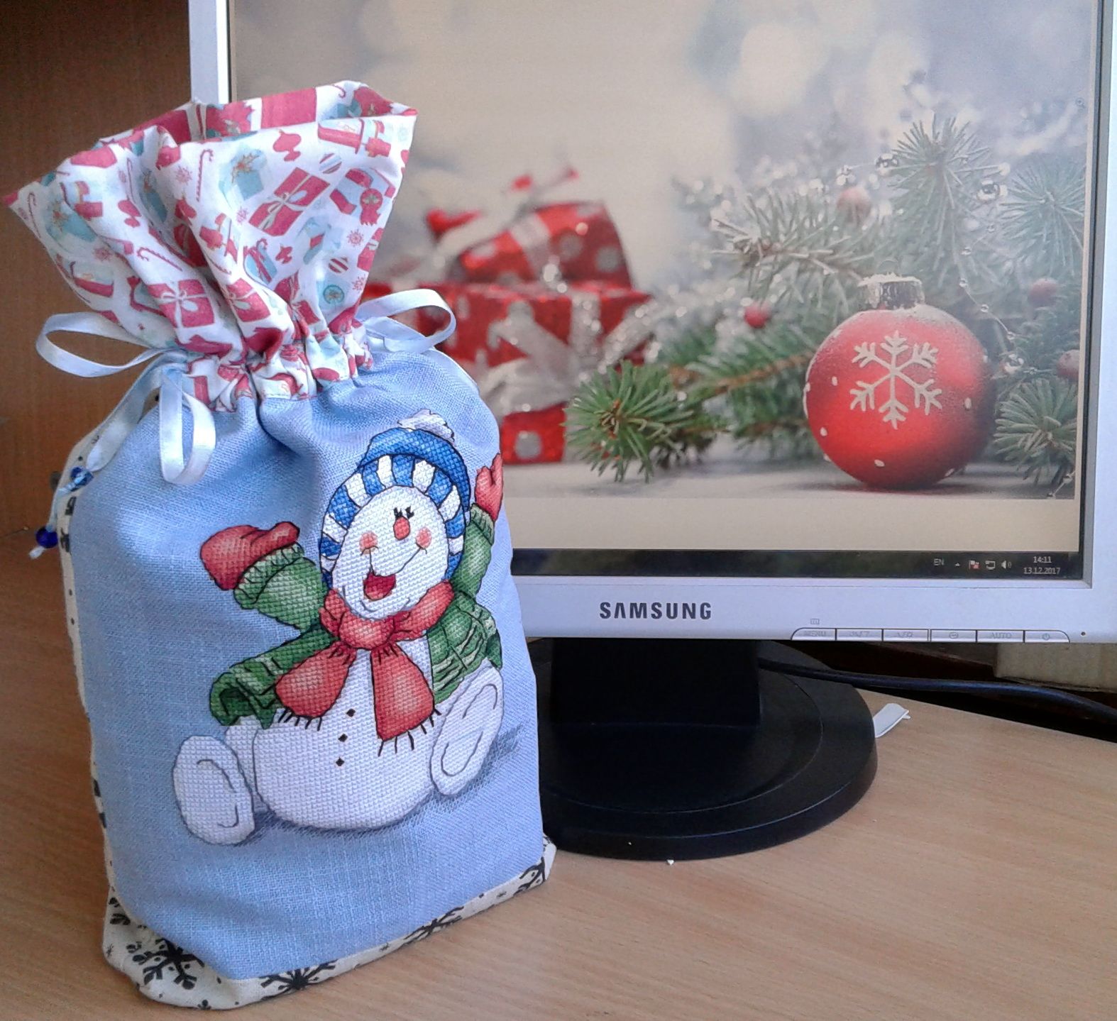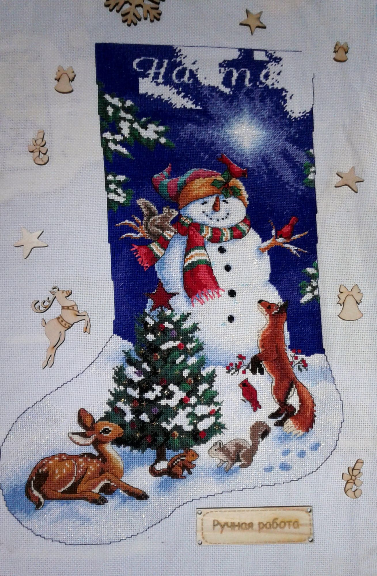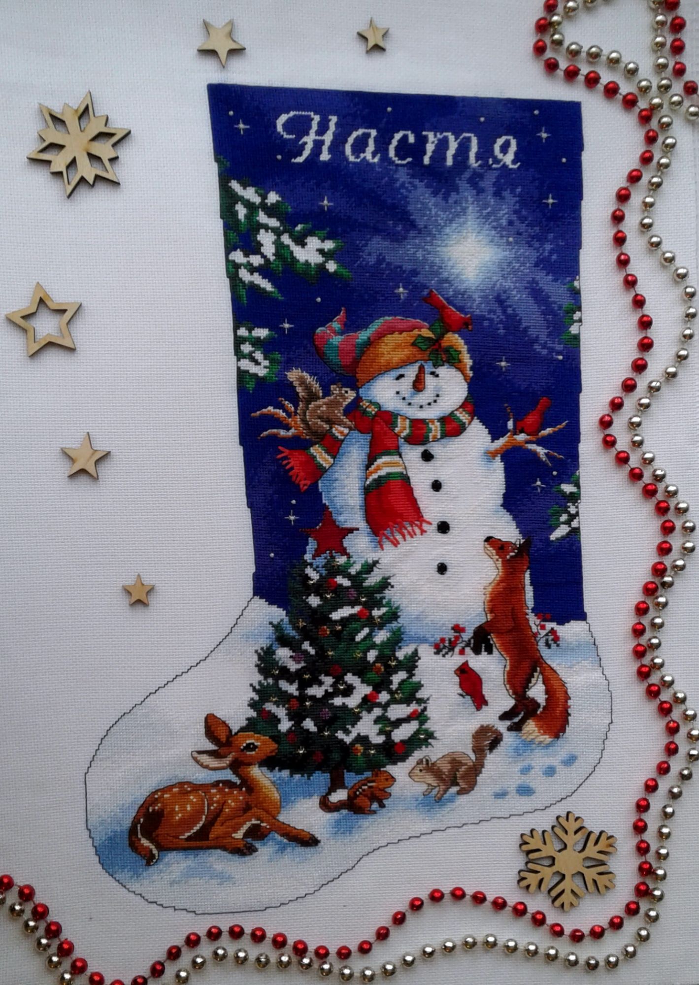 15 декабря 2017 13 часа назад, ТаняВарламова сказал: У меня наступает финишная прямая в сапожке - остался один синий цвет и немного звездного бэка...а вот звезды не знаю...фр.узелки, бисер или стразы приклеить...склоняюсь к стразам... Еще на неделе сшила мешочек в подарок вышивальной подружке, т.к. посылку срочно надо было отправлять фото так себе)) И сапожек, и мешочек - просто чудесные! Я вообще с недавних пор снеговиков в вышивке обожаю. P.S. А фото, на мой взгляд, очень хорошие получились. ТаняВарламова сказал(а) спасибо Поделиться сообщением Ссылка на сообщение