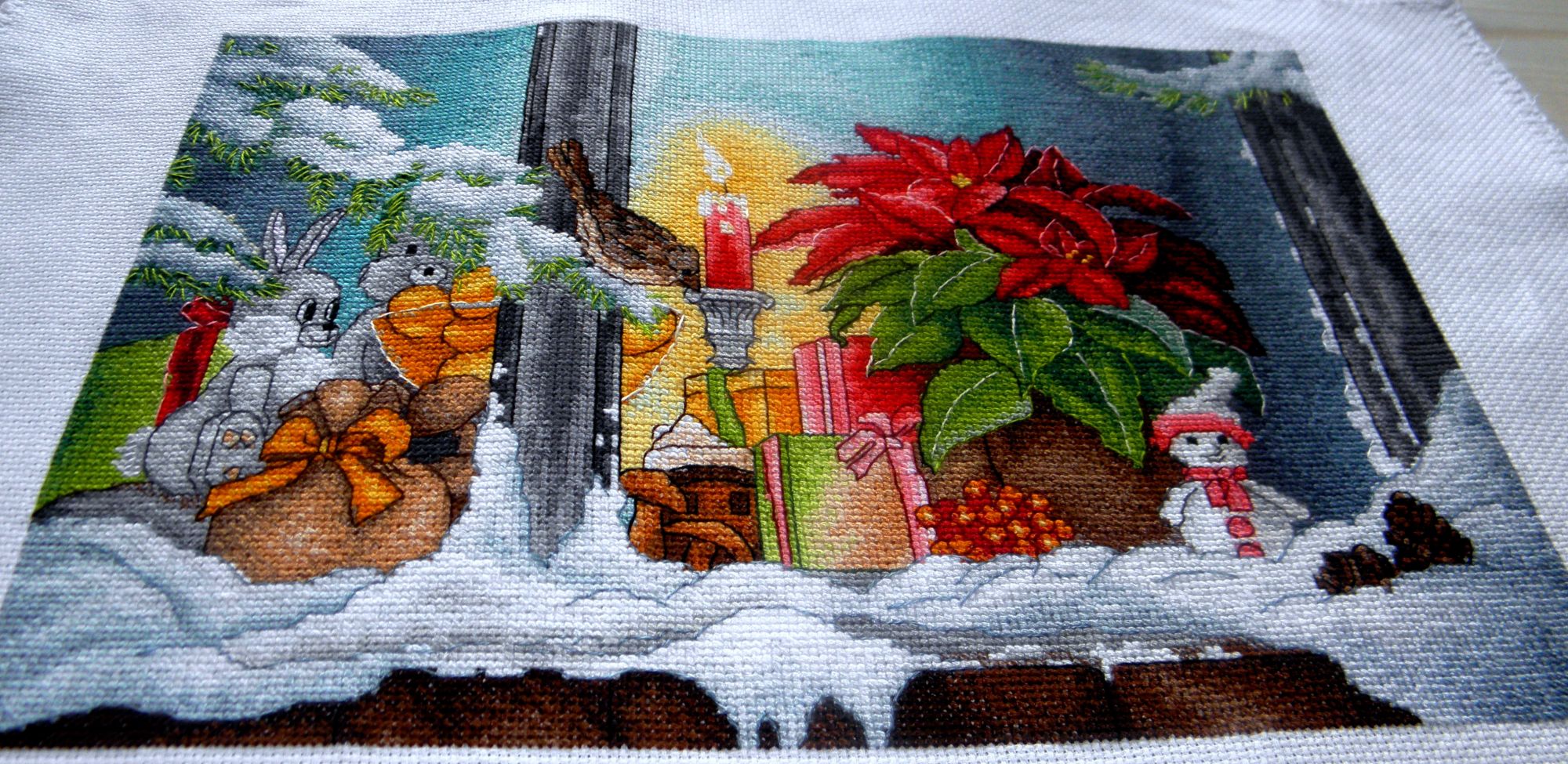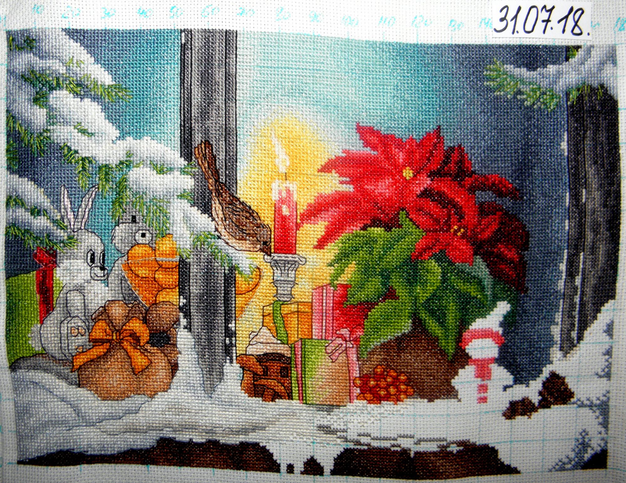 8 августа 2018 20 часов назад, Antaliya сказал: А я сегодня с финальным отчётом. Закончила вышивать Alisena "Волшебное Рождество". Все фото для гаечки О наборе: канва белая Zweigart Аида 16, 38 цветов ниток Anchor на картонном органайзере, блендов - 33, схема крупная цветная на 4-х листах А3, 180 х 130 крестиков, размер готовой работы 28 х 20 см. Полная зашивка канвы. В работе использовались стежки: крестик (в 2 нити) и бэкстич (в 1 нить). Вышила на одном дыхании за полтора месяца. Вышиваю очень экономно и поэтому ниточек осталось в достаточном количестве. Считаю, что моё знакомство с производителем Alisena прошло удачно. Картина получилась яркой и красочной! В теме остаюсь, т.к. готовлюсь к новому зимнему процессу. Начало покажу через пару дней. Шикарно!!! А пуансеттия вообще бомбическая! Как я их обожаю Fascinata и Antaliya сказали спасибо Поделиться сообщением Ссылка на сообщение