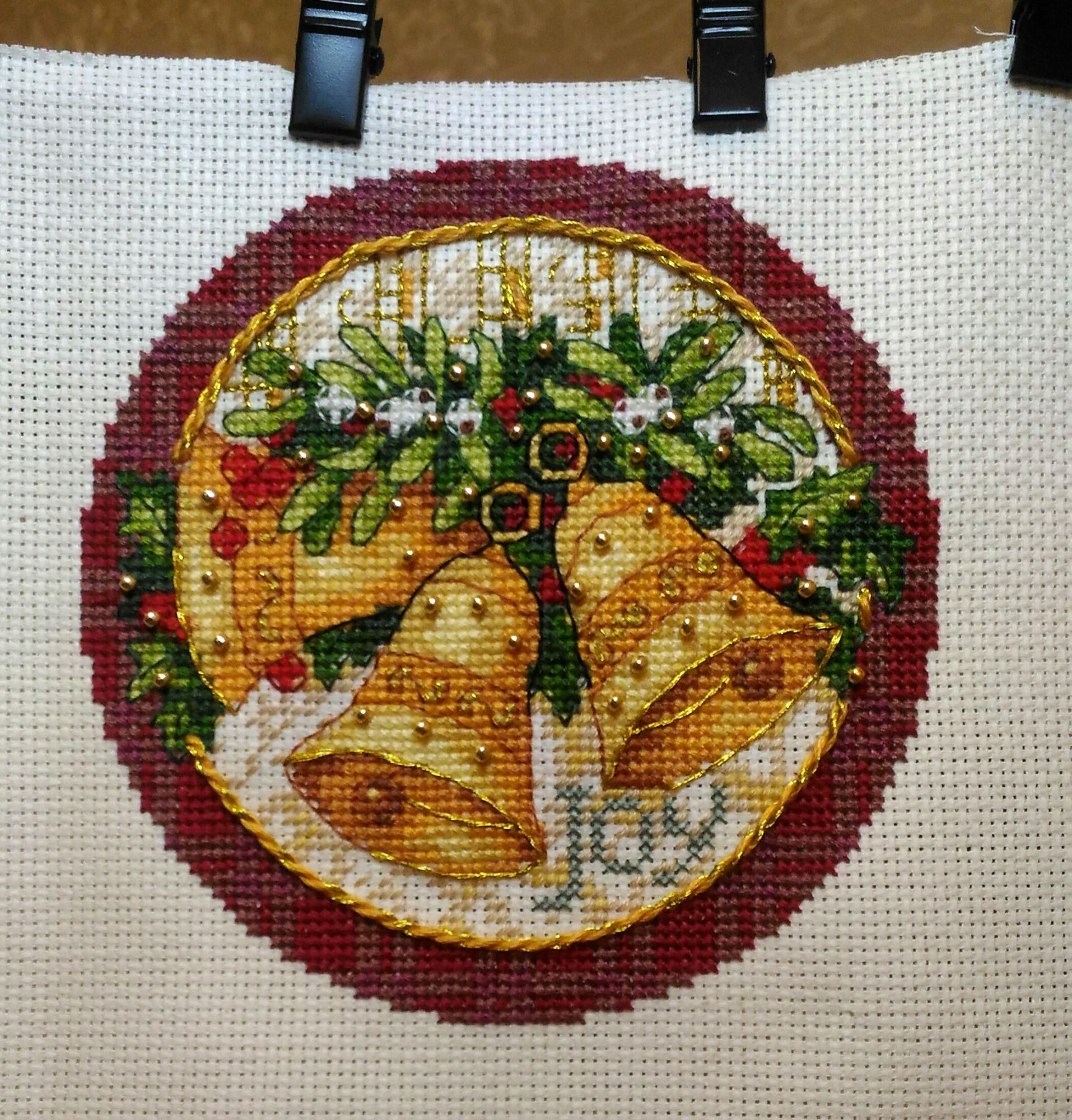 10 февраля 2019 Закончила четвертую игрушку с колокольчиками. Сначала к сюжету была совершенно равнодушна, но в процессе он начал нравиться, результат очень симпатичный. С переходом на верхнюю часть канвы появилась проблема запяливания ткани в раму - отступ очень маленький, и, если с верхней частью еще что-то можно было придумать, то с нижней придется извращаться - или надставлять ткань, или отрезать кусок и использовать натяжку с четырех сторон. Короче, я немного расстроилась от этого момента и решила перейти на новый процесс, пока не вернется желание шить этот. Елена Прекрасная, Aleksacha , Fascinata и 16 других сказали спасибо Поделиться сообщением Ссылка на сообщение