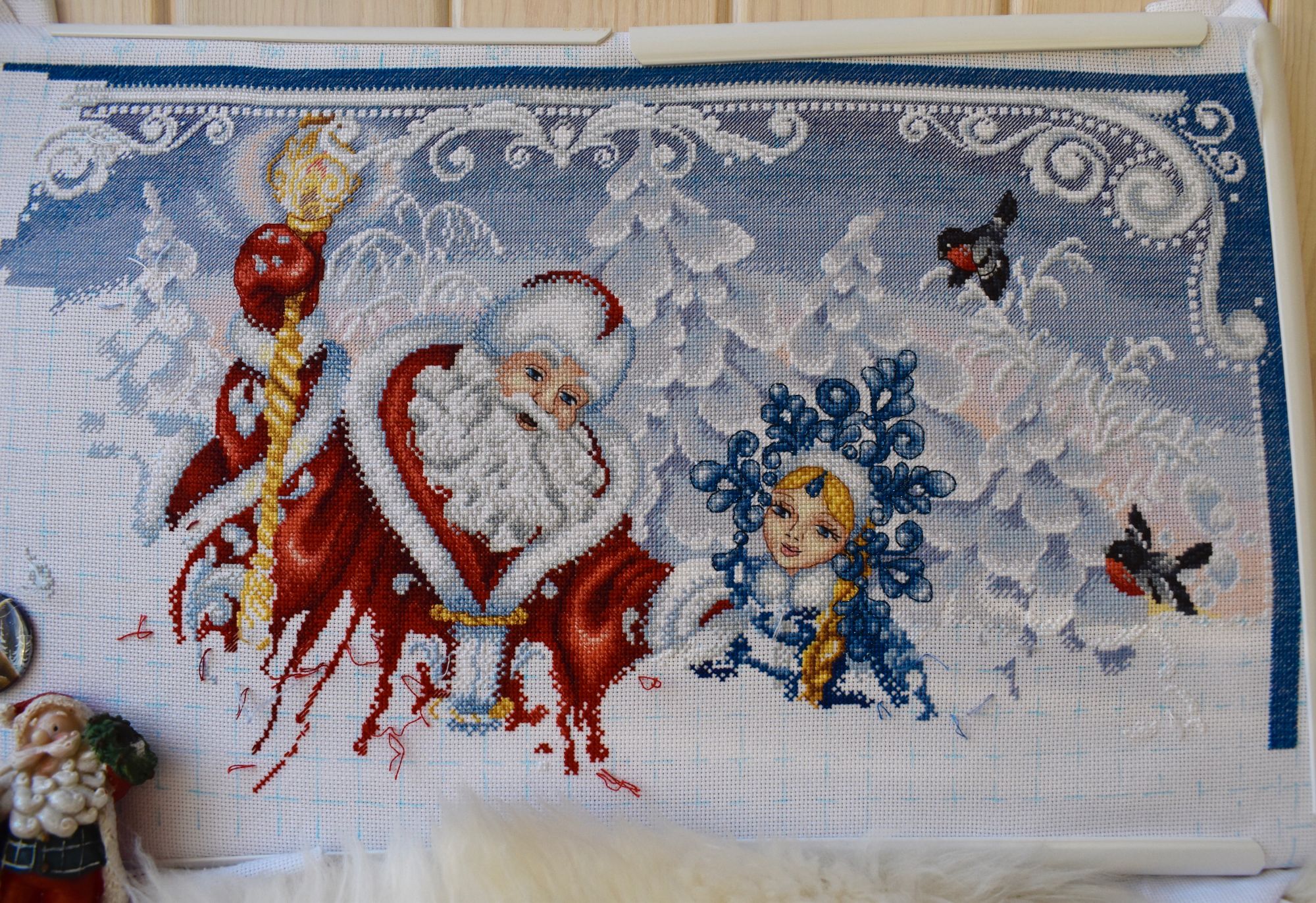 8 февраля 2019 Чуть подросла шуба у деда Мороза и сделан бэк на кокошнике Снегурочки. Решила, раз это новогодняя сказка, добавить блеска. Выбирала между металликом дмс и крейником. Здесь слева вышито крейником, справа дмс. Выбрала крейник, и лучше ложится и блеск ненавязчивый и более благородный. Фото для гаечки ОльгаТольна, Avril, AnnMak и 24 других сказали спасибо Поделиться сообщением Ссылка на сообщение