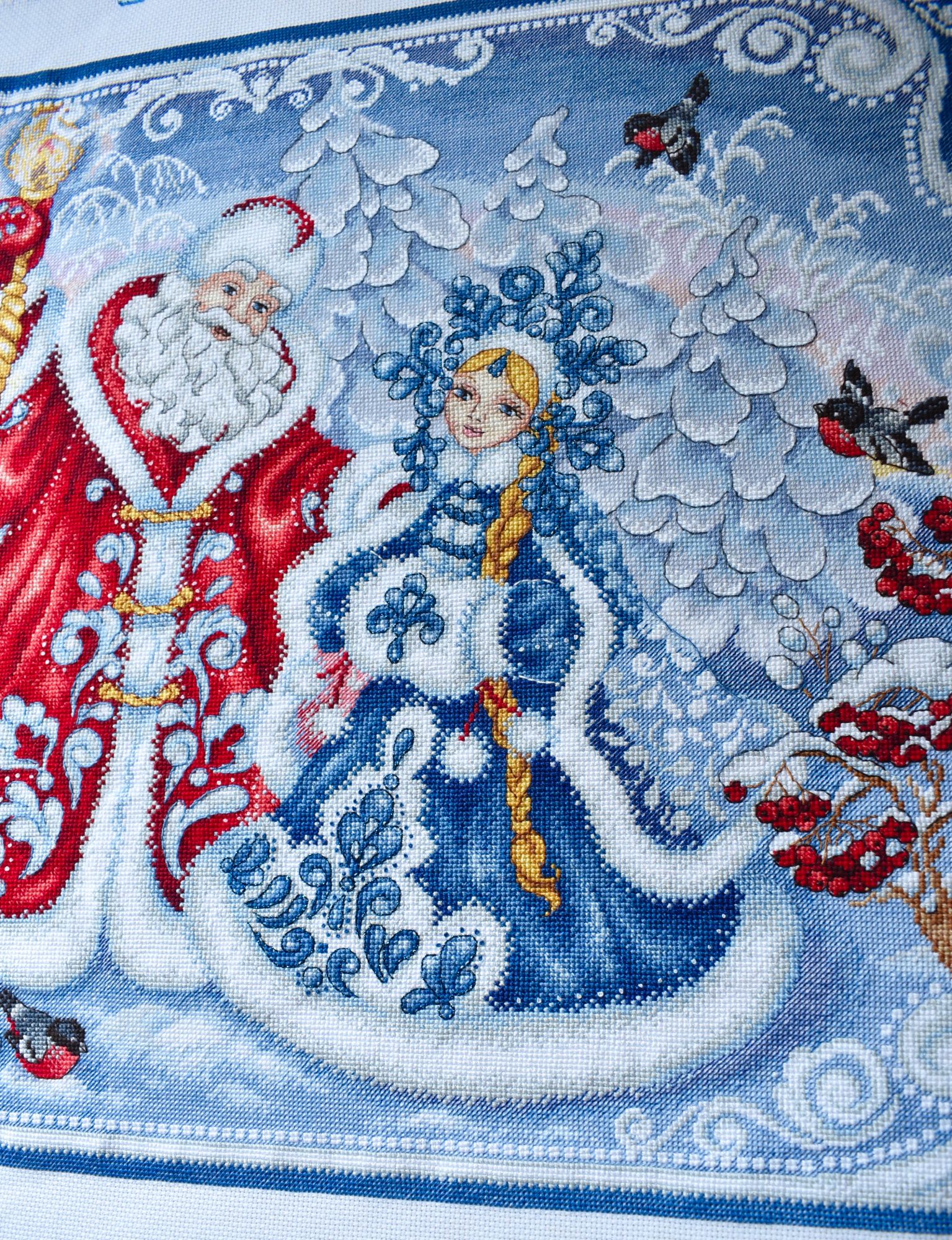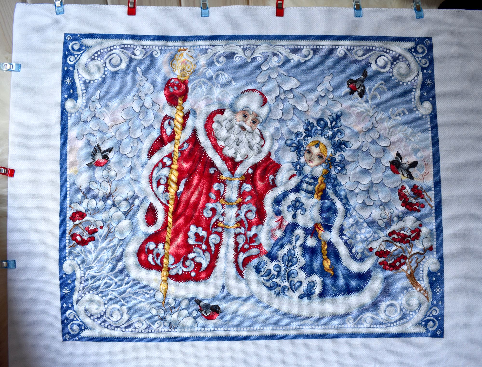 15 июня 2019 5 часов назад, Muskat сказал(а): Ну вот и все! Закончила я свою "Зимнюю сказку", сегодня отправлю в багетку. Фрузелки вокруг кокошника делать не стала. Он у меня и так весь сияет-сверкает, как и узор на шубке, просто на фото не видно. Цвета бэка тоже меняла, использовала крейник. Белых ниток много не хватило, пасм 7 и синей 2-3 пасмы. В остальном, я довольна результатом. Теперь буду думать, за что взяться дальше. Покопаюсь в своей норище. Гаечку можно зеленить! Прекрасный дизайн! Наши Дед Мороз и Снегурочка, а то все Санту шьют. Поздравляю с окончанием! ната16, Muskat, AngelN и 2 других сказали спасибо Поделиться сообщением Ссылка на сообщение