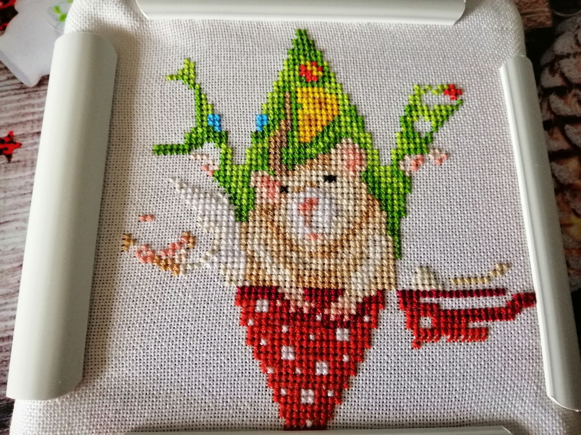 17 июля 2019 10 часов назад, lefkorosida сказал(а): Меня летом что-то слегка переклинило на елках. Спонтанно схватила елочку, которая понравилась моей маме, для нее и вышиваю. Итак HF 30-5409 Датская новогодняя открытка к Новому 1984 году, дизайн Герды Бенгтссон И мои фотографии для гаечки первые два цвета отшиты. Завтра буду птичек на елку усаживать. Контрастная программа к нашим сказочным Деду Морозу и Снегурочке Снега нет, Санты тоже нет, и не снегири, и не кардиналы, а просто птички на елке сидят. Здравствуй датский Новый год!! Открытка кстати так и называется "Рождественный снег" С интересом наблюдаю за Вашими процессами Они такие нестандартные и стильные! Поделиться сообщением Ссылка на сообщение