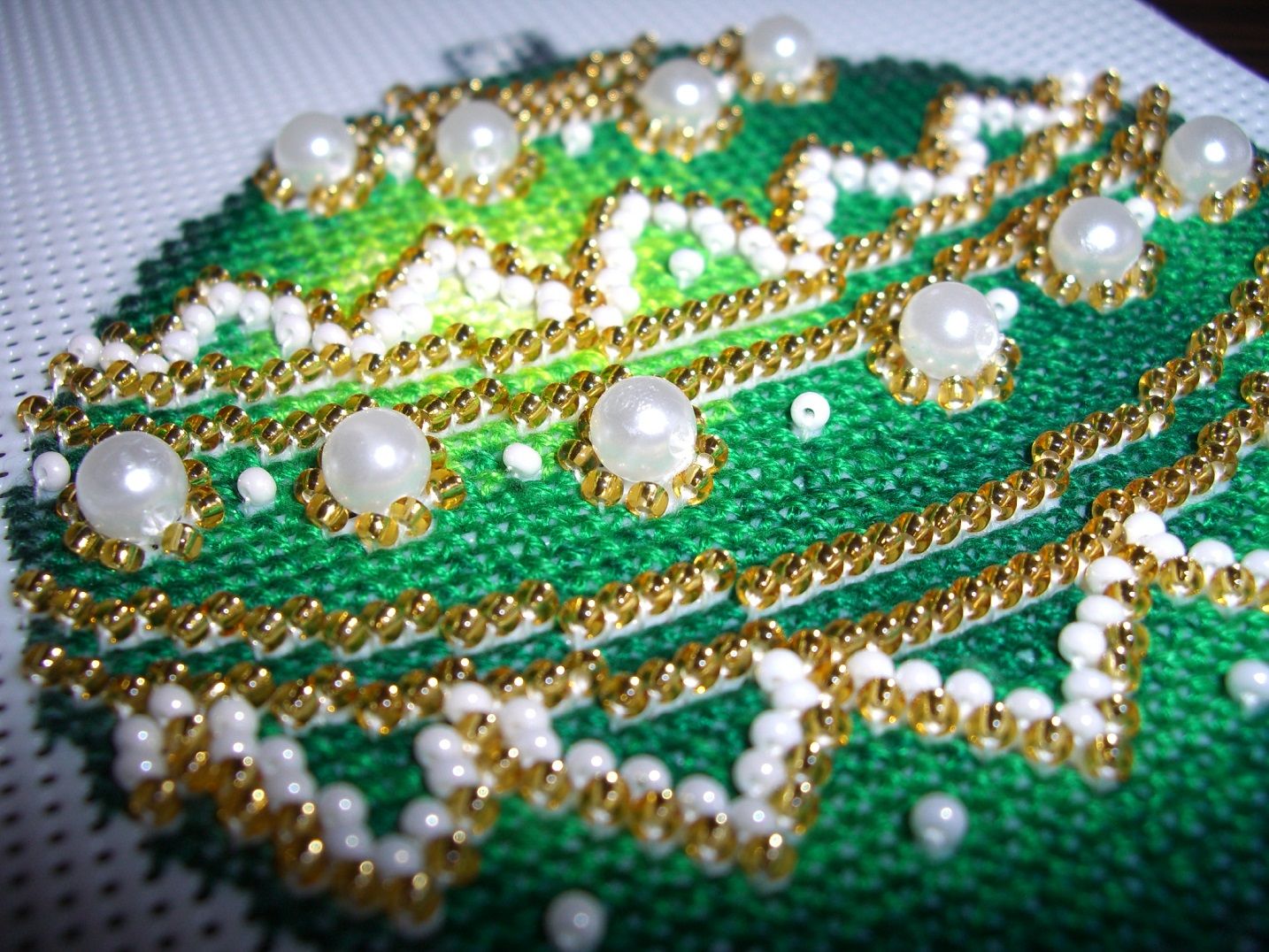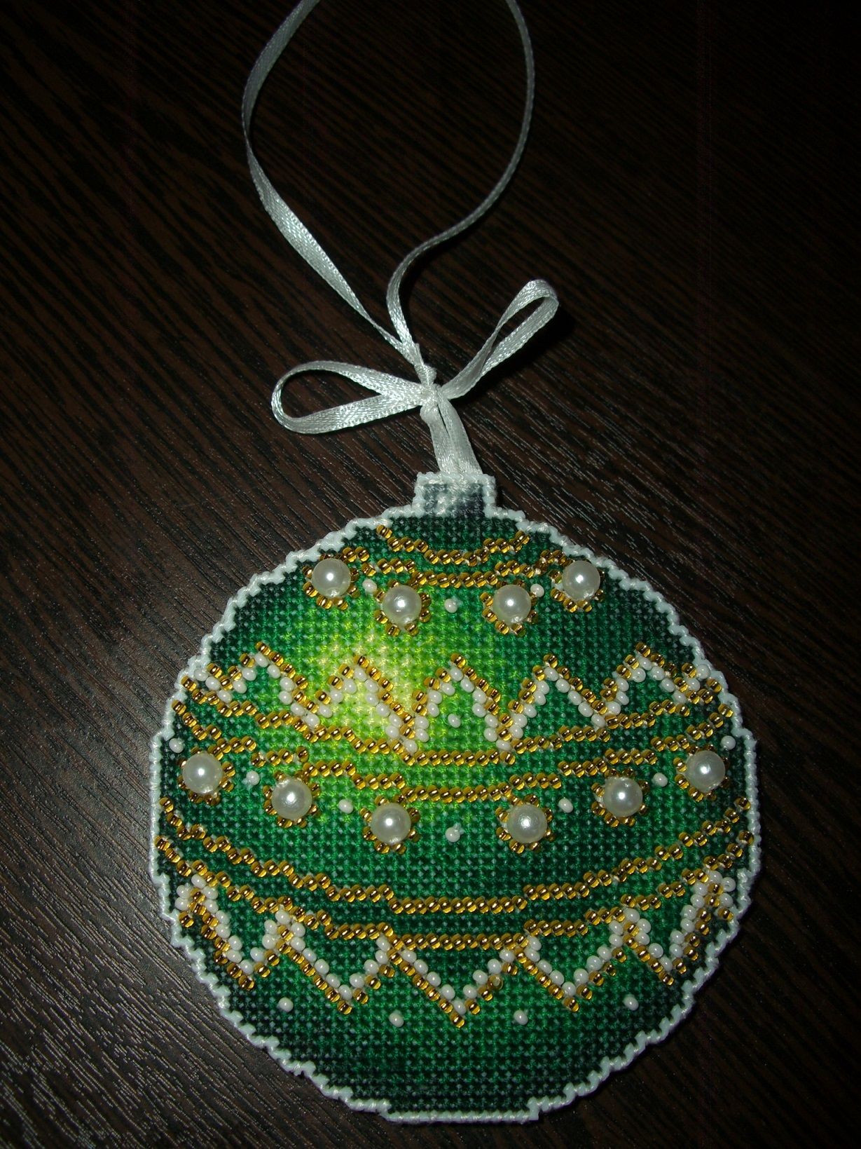 3 сентября 2017 И маленький завершенный процесс - ёлочный шарик Новогодний изумруд от МП-студии: Ковырялась за недостатком времени аж 2 недели (на ютубе видела, что дамочка за 2 дня подобный вышила, но мне такие скорости недоступны). Бусины пришила свои, на макрофото видно, какие они крупные, так вот те, что из набора - еще крупнее, мне не понравилось, как они выглядят пришитыми. Бусины пришивала крестом, тогда они покрепче пришиты и лучше смотрятся. Хотела склеить половинки шара клеем момент кристалл, не получилось, пришлось, как рекомендовано в инструкции, сшивать через край, только не стала на нитку вешать, взяла тоненькую ленточку. Получилось изумительно)) Многократно лучше, чем на обложке набора)) Игрушка двусторонняя, вся блестит, в руках держать приятно, ребятишкам очень нравится. Теперь надо и остальные купить и вышить, они правда очень классные! Каори, Galagenka, Selinta и 36 других сказали спасибо Поделиться сообщением Ссылка на сообщение