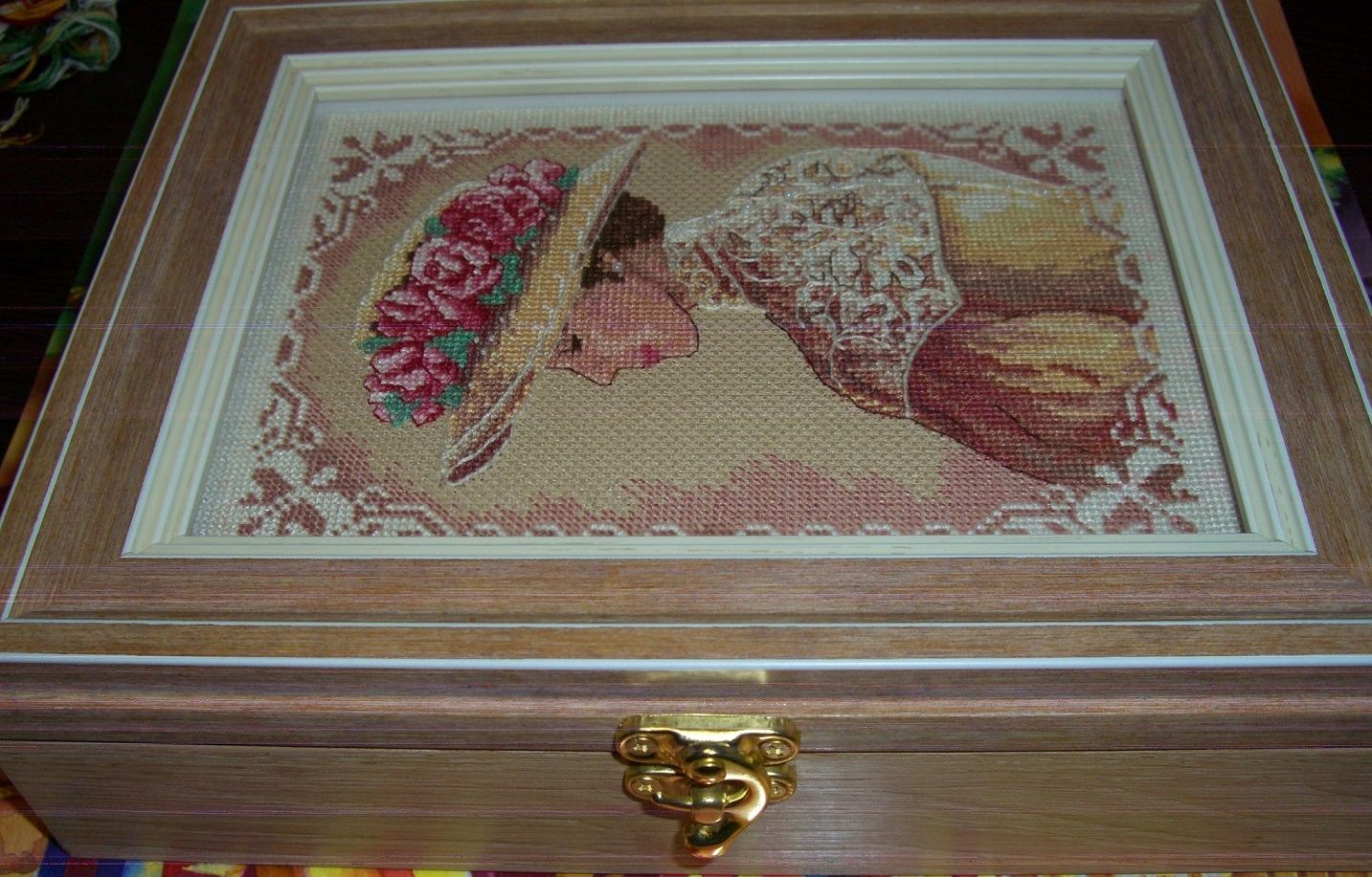 30 декабря 2017 Здравствуйте! Вот и я решила написать последний в этом году отчет, наверное, он по объективным причинам будет в нескольких частях. Часть первая. Несколько лет назад в одном из наших магазинов я увидела старенький наборчик Dimensions 06740 Портрет дамы, 13х18, аида 18 , почему-то не купила, но в душу он запал, и именно как вышивка под шкатулку. И прошлой весной я принялась думать, кому бы я хотела этот дизайн вышить в подарок (себе я его никак не вижу, это просто совсем не я). И вот в этом сентябре меня осенило - нашей учительнице! Потому что она именно такая - нежная, элегантная, всегда в платьях, очень женственная. В тот магазин через столько лет я уже не поехала, взяла схему из интернета, вытащила канву из одного наборчика, димовские ниточки насобирала из других, и потихоньку начала, периодически откладывая, т.к. 18 канва для меня - это очень-очень тяжело, решила помучиться только для того, чтобы шкатулка не превратилась в ящик при увеличении каунта. Дооткладывалась я до того, что стала опаздывать, пришлось поспешить, в результате от избыточной нагрузки заработала приступ шейного остеохондроза(( Зато успела, посмотрите, какая красота получилась Когда вышивала кокетку платья, замучалась - там 6 цветов ниток и еще 5 блендов, беспорядочная мешанина, а потом по этой мешанине выкладной нитью кружева вырисовываются, и эта выкладная нить в 2 сложения всю эту мешанину закрывает. А в результате - чудесно вышло. У меня всем понравилось, и муж в восторге, и дети. И для девочек из Барнаула - оформляла я в Нике в Геомаркете. Шкатулка обошлась мне в 1400 р., при этом прекрасная крепкая фурнитура (цвет на выбор), шкатулка внутри и донышко снаружи оклеено паспарту (на выбор), идеальная натяжка, ни крестика не убрали, еще и бисеринки, которые примялись утюгом, все расправили и поставили вертикально, и проставочка, чтобы бисер не примялся. Весной я делала шкатулки в Анфасе примерно за те же деньги, но там фурнитура такая хлипкая, что и открывать шкатулку страшно, внутри краской покрашено. Так что очень советую Нику. Хочу теперь и себе шкатулку сделать)) Taisiya, Selinta, Sky026 и 38 других сказали спасибо Поделиться сообщением Ссылка на сообщение