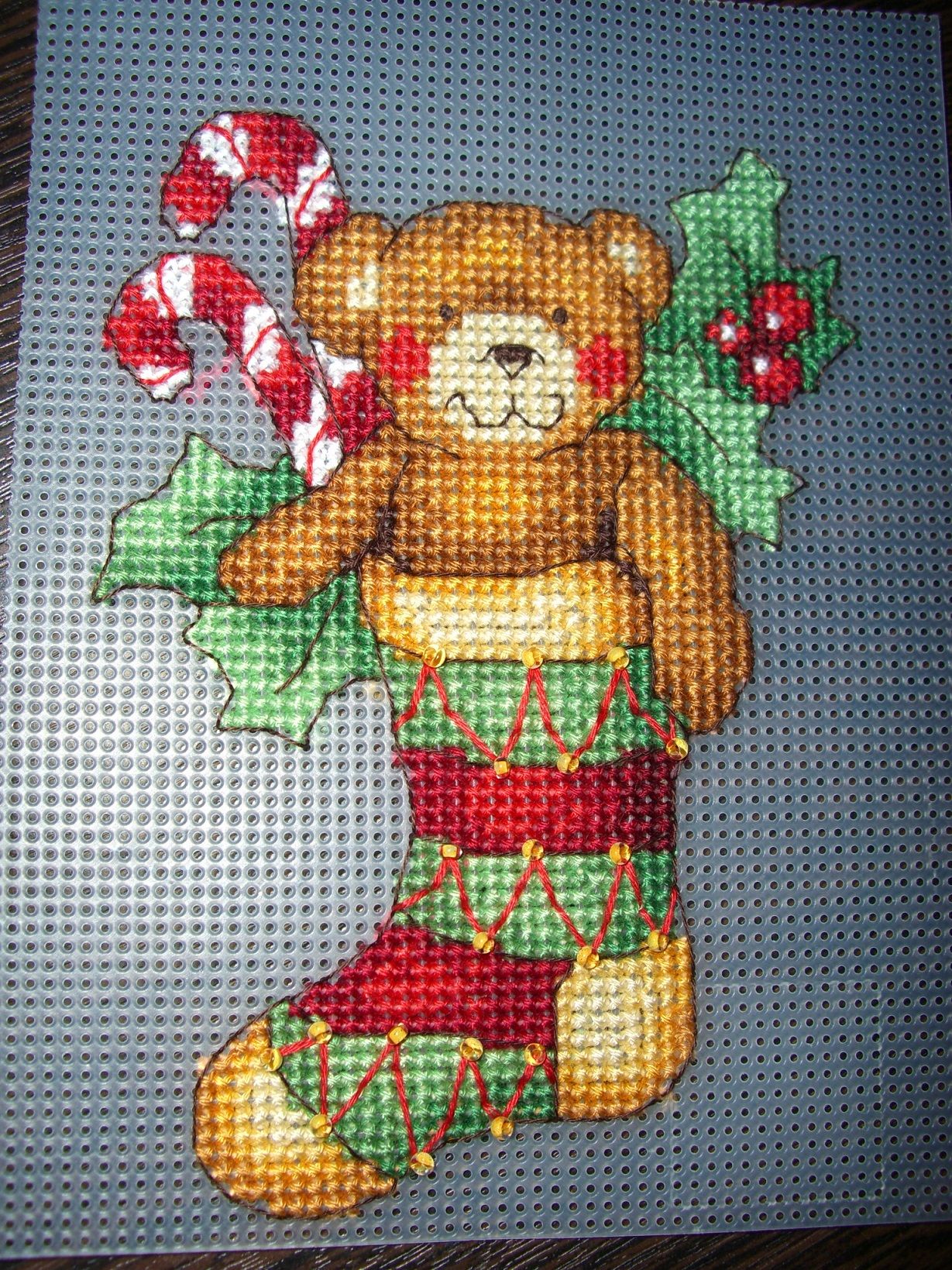 30 декабря 2017 Часть вторая, Носочковая))) 1. Закончила вышивать буцилловский носочек со снеговичком. Продвижение О сюжете - в прошлый раз мы удивлялись рыжим зайчикам на белом снегу, когда я принялась вышивать дальше, то обнаружила, что на шляпе снеговика птичка свила гнездо А мышь собралась в это гнездо в гости То ли у дизайнера неважно с зоологией, то ли формировали дизайн по принципу "я надену все лучшее сразу", и это получилось - ярко, разнообразно, полно зверья, вышивать и рассматривать нескучно)) Впечатления о наборе - я его дольше боялась, замечательный набор, правда, ниток как-то нелогично положили, некоторых надо было ниточку - положили две пасмы, а некоторых осталось два хвостика, и то только потому, что я крайне экономно вышиваю и даже ниточку в 5 см. не выбрасываю. Ну и я уже писала - черные нитки пришлось полностью заменить, т.к. гнилые, иголку выбросила, т.к. шершавая, канву поменяла на перламутровую)) Вынуждена была принять решение не назначать никому и не сшивать носочек пока, неправильно будет делать носочек только одному ребенку, а больше я не успела со своими головными болями, хотя и собиралась, так что задача на следующий год - вышить еще минимум три носочка. 2. Ёлочная игрушка Dimensions 08894 - медвежонок в носочке. Этот наборчик купила еще в октябре, и с тех пор вышивала по ниточке пару раз во время воскресных Данькиных занятий, несколько раз, пока мы опять таки в ожидании Даньки с малышней после прогулки в машине грелись. В результате взяла домой и за день закончила. Вместо фрузелков пришила бисеринки. Процесс Влад проснется через пару часов, смогу добраться до фетра и придать медвежонку пригодный для украшения ёлки вид. malenta, CherepOlka, ОлюшКа и 32 других сказали спасибо Поделиться сообщением Ссылка на сообщение