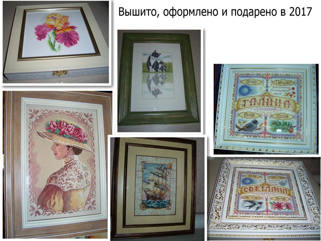 5 января 2018 Наконец-то собралась сделать годовой коллажик Итого с малютками вышито 24 работы, в т.ч. 24 набора (в подушке 5 наборчиков), 4 подбора, 6 оформленных работ подарено, 7 готовых работ пополнили рулончик)) От каждой работы получила несказанное удовольствие! Очень надеюсь в этом году вышивать более крупные работы и уменьшить толщину рулончика за счет оформления своих творений)) татьяна0674, ОльгаМИГ, Фро-J и 36 других сказали спасибо Поделиться сообщением Ссылка на сообщение