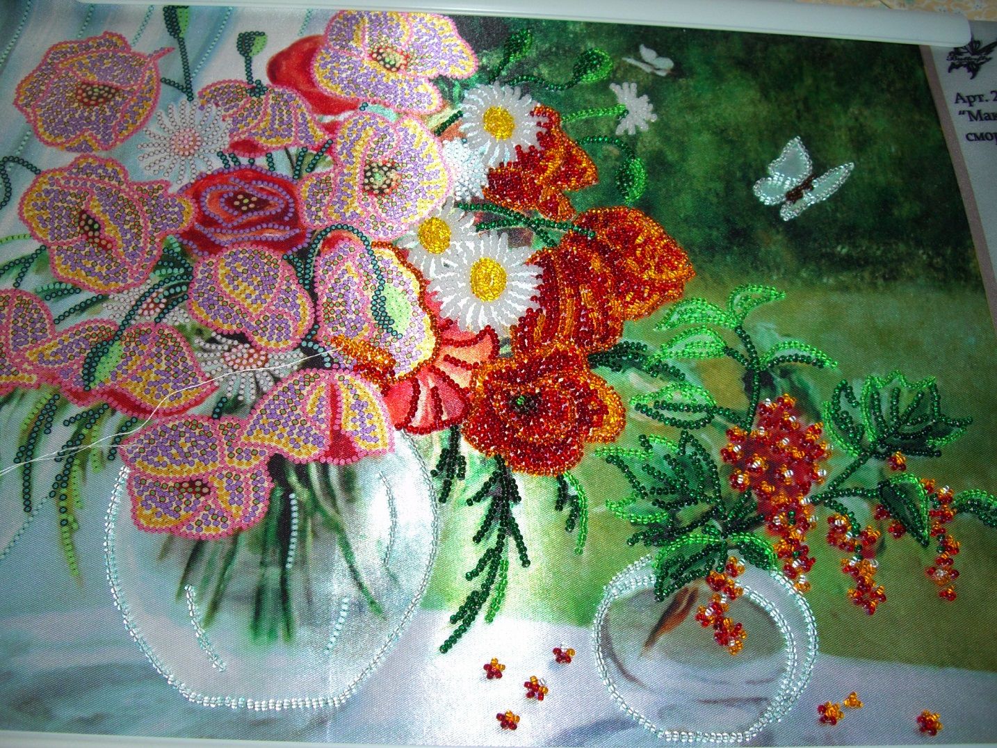 14 июня 2018 И еще покажу новый процесс, он вышивался в марте по ночам, пока Влад спит. Маки и смородина, Баттерфляй, бисер. Очень нравится процесс, яркие, сочные цвета бисера, только вот вечерами все чаще засыпаю в процессе укладывания Влада, а пока он не спит и сует везде свои ручонки, бисером заниматься невозможно. Надо как-то изловчиться вернуться к нему. Простите, не умею красиво снимать бисер. Пока вот так Оттенков бисера не много, и они легко различимы между собой, так что придумала себе вот такую организацию бисера - жестяная коробочка и липкий коврик из фикс-прайса. Коврик одной стороной приклеивается на крышечку коробочки, на другую сторону кладется понемножку бисера - очень удобно с коврика бисеринки цеплять иголочкой, и когда работа на сегодня закончена, я этот бисер накрываю прозрачной пленочкой от коврика и закрываю коробочку - ничего не отваливается, не путается, все на месте до следующего подхода. На этом у меня пока всё)) OlkaY, Гало4ка, Nadinka-Blondinka и 34 других сказали спасибо Поделиться сообщением Ссылка на сообщение
