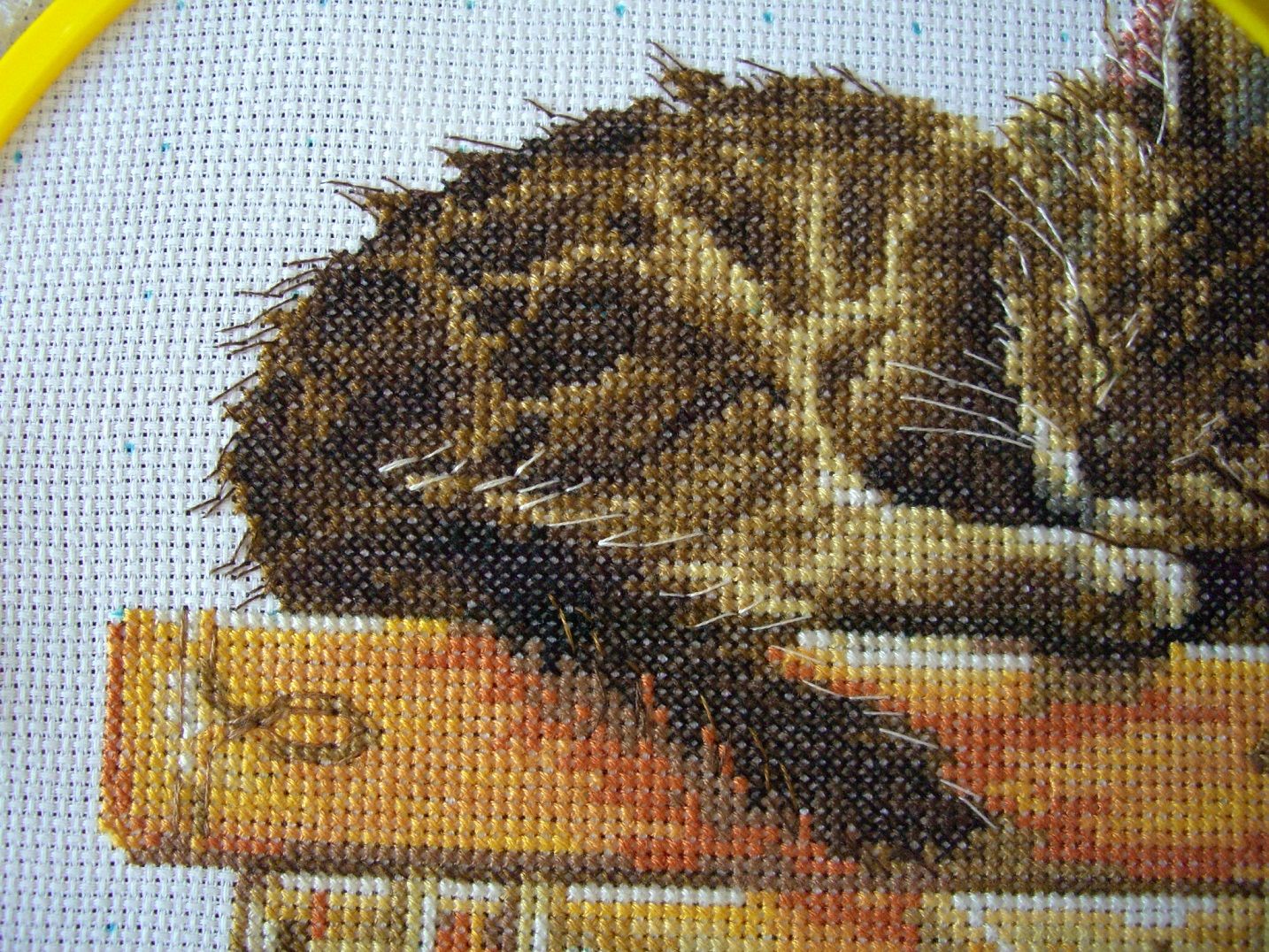 15 июня 2018 Девочки, я надеюсь все же найти ниточки, муж вот мебель подвигает - может, найдем. 5 часов назад, reyjeff сказал: Никак поросёнок части своей красоты лишился? Неа. Поросенок спрятан далеко и надежно Начала домашнюю кошку, она сразу, как была куплена, была вскрыта, и так и лежала три года, периодически попадаясь мне на глаза. Там вышивать-то не много, и шерстью я давно не вышивала, закончила мурлыку - и сама не поняла, как у меня уже оказалась начата кошка))) Одну ниточку, ее там мало совсем, не смогла размотать из моточка, пришлось перемотать на бобинку - и Влад ее стащил)) Сюрприз меня ожидал с этим набором - я стала чесаться от риолисовских ниток(( Прежде такого не было. Ксен40, nogres, чеба и 4 других сказали спасибо Поделиться сообщением Ссылка на сообщение