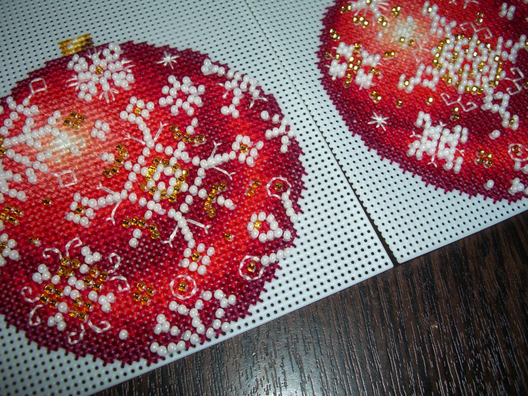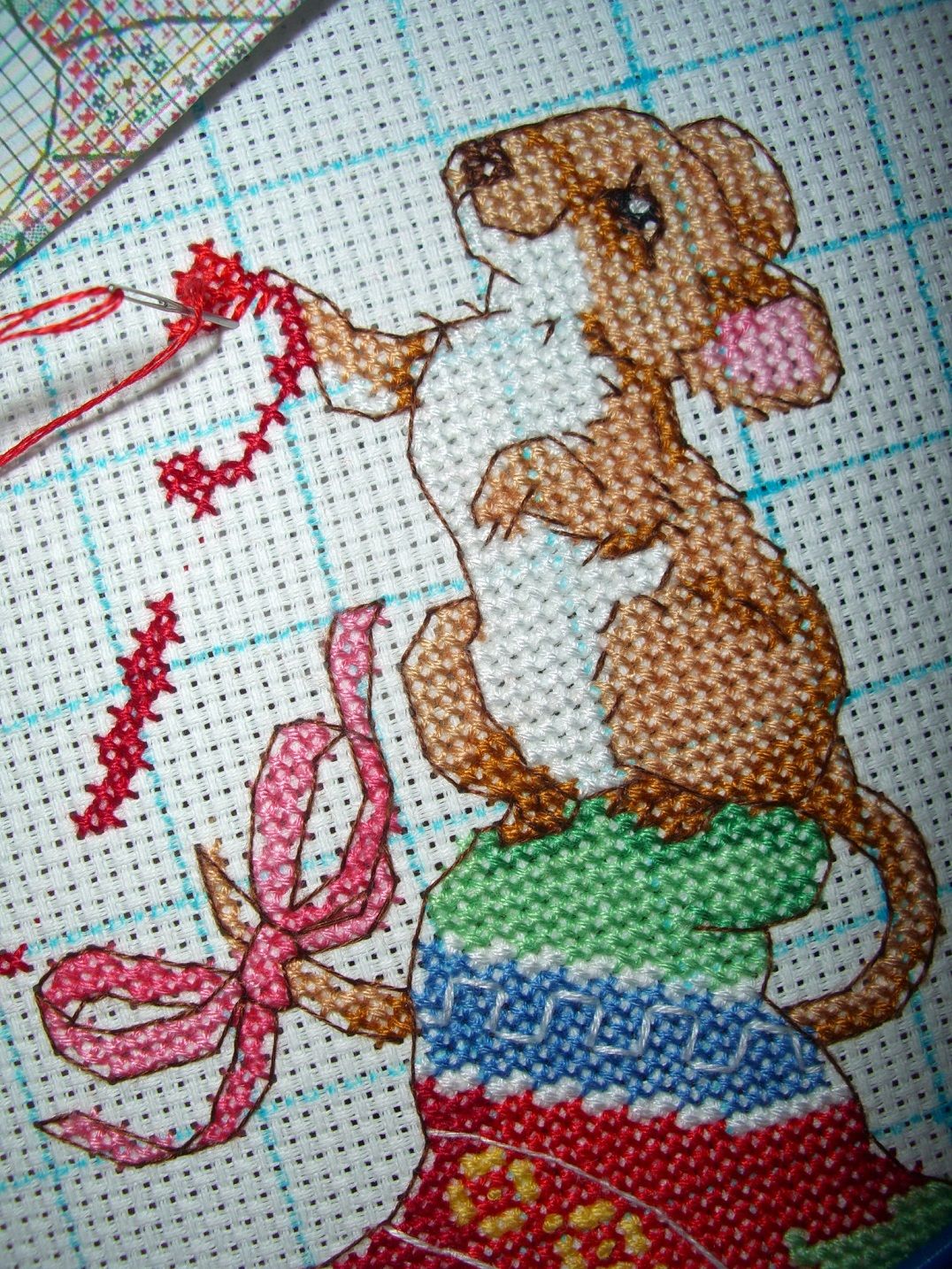 5 ноября 2018 Здравствуйте все! У нас лег снег, таять не собирается - пришла настоящая зима. Дети слепили снеговика, навалялись в сугробах (у нас в огороде местами по колено снегу) и решили, что пора ставить ёлку)) Для ёлки рано, конечно, зато стало понятно, что пора готовиться к новому году, и в вышивке тоже. Волевым усилием задвинула в дальний угол все неновогодние процессы, все время - новогодним Закончила шарик Морозный рубин. Мне очень не нравился голубой бисер (с качеством все прекрасно, цвет меня не устраивал) в этом шарике, поэтому я нашла в закромах немножко золотого, получилось не так ярко, зато мне очень нравится. И начала новогодний носочек - давным-давно снятый с производства Dimensions 8440 Frisky friends Stocking. Он невозможно милый Много лет хотела его вышить, сделала подбор по живым ниточкам - и начала)) В работе с этим милым сюжетиком есть одна трудность - в скане схемы нет расшифровки бэка, так что цвета я подбираю исходя из обложки. Первой вышилась милейшая заюшка потом шкодная белка и мышенька Не спрашивайте, кому он предназначен - пока не знаю. На этом пока всё. Каникулы закончились, завтра возвращаемся с Данькой в обычный режим, а Димка разболелся, лечим. Всем хорошего настроения! Lusha73, вишенка аллая, Galadriel и 34 других сказали спасибо Поделиться сообщением Ссылка на сообщение