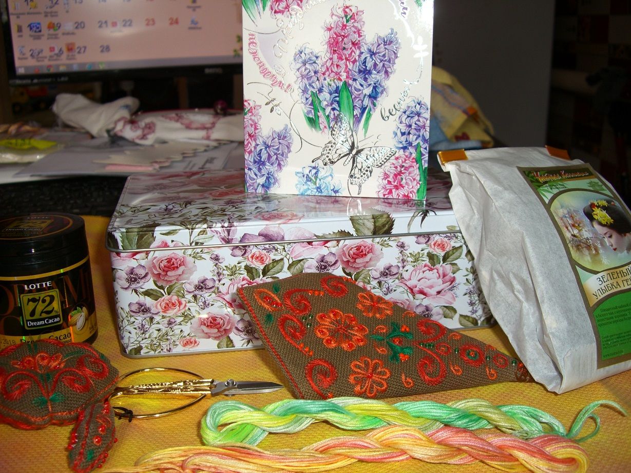 1 марта 2019 А я сегодня совершенно неожиданно получила подарок от Евгении Чичковой А тааам Большущая шкатулка и чудесная открытка с теплыми словами, какао (даже никогда не видела такого) и чай, и самое главное - невероятно окрашенная канва моего любимого каунта, меланжевые ниточки, и - тадам - обалденный комплект игольница-домик для ножниц-маячок (да еще и с ножничками, каких у меня никогда не было), вышитый шовчиками по Жениной же схеме - совершенно авторская работа! Когда я подержала это в руках и рассмотрела подробно - поняла, что никогда так не смогу - ни вышить ни сшить, - оочень аккуратная и оочень мелкая работа. И как эти шовчики вышиваются - ума не приложу)) Вот такой сюрприз Женя, спасибо тебе преогромное! Ты настоящий Мастер! Буду пользоваться и тебя благодарить мысленно Ну и у меня вышился еще один кот)) Ксен40, Путешественница, nogres и 34 других сказали спасибо Поделиться сообщением Ссылка на сообщение