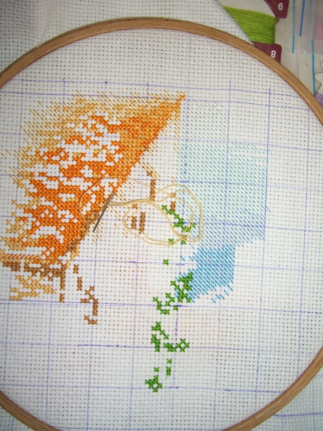 2 апреля 2019 Сегодня у меня не старый-позабытый процесс, а совершенно новый спонтанный. Абсолютно случайно наткнулась я на информацию, что Совиный лес запускает авантюрный совместник на тему Изумрудного города. Обожаю эту сказку. Посмотрела на список тканей - у меня таких нет, нитки ручного окрашивания я точно покупать не стану, ну и ладно, проехали)) Потом в ВК мне выпала в новостях тема об этом совместнике, и там обсуждалось, что в качестве основы можно взять 503 мурано. А не 503 ли оттенка у меня отрез лежит, подумала я. Ага, он. Ну и как-то неожиданно рраз - и я готова В общем, мой первый примитив, первая авантюра, первый дизайн Совиного леса. Нитки вообще не по ключу, "салат из того, что есть в холодильнике". Единственное, ураган, вышитый одним цветом, выглядит уж очень грустно, а из мультиколора дома ничего подходящего нет, в магазин смогу выбраться только через две недели, так что первый сюжетик пока не закончен. В реальности голубой цвет ткани значительно менее яркий, но мой древний фотоаппарат почему-то никак не может снять иначе. Элли, конечно, страшновата Полдня пытаюсь утешить себя тем, что на таком количестве крестиков сложно сделать лицо симпатичнее, и с глазами-фрузелками она была еще страшнее Ну хоть Гингему вышивать пришлось совсем немножко Мне очень понравилось вышивать на Мурано. Даже петиты смогла сделать, правда, почти вслепую)) Вот. makalicha1970, ирония, Selinta и 29 других сказали спасибо Поделиться сообщением Ссылка на сообщение