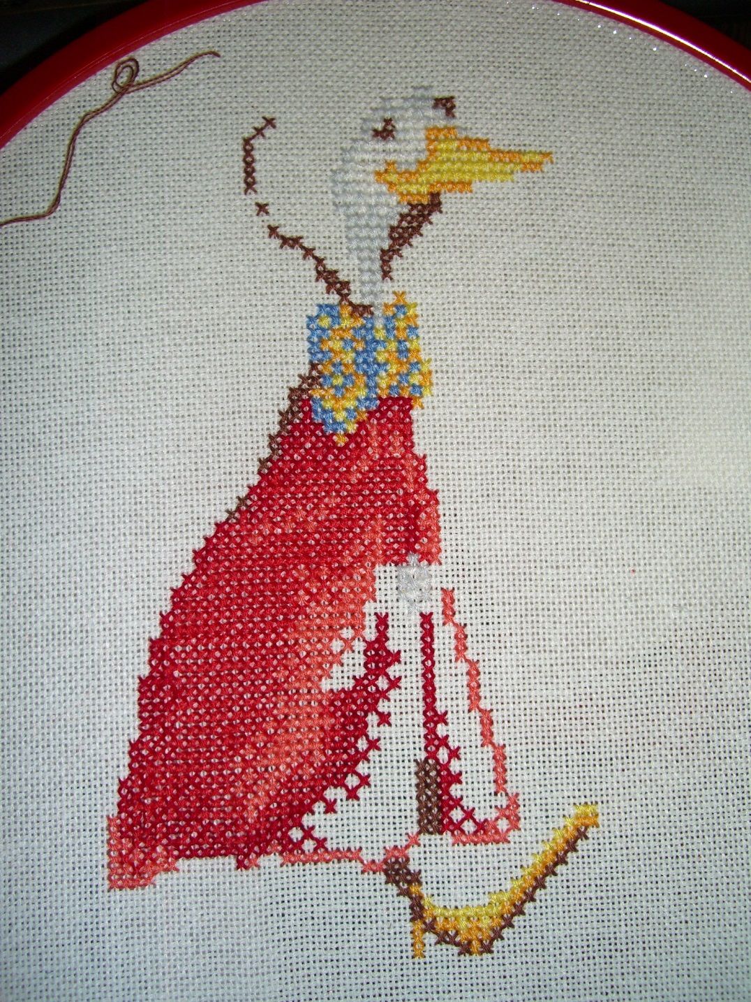 1 апреля 2019 Всем доброго утра! Покажу, чего навышивала)) Немножко продвинула морской пейзажик. Было стало Очень приятный несложный процесс. Немножко повышивался бисерный ангелочек. Было вышито мамой и теперь Довышиты рамки справа и слева и крылья ангелочка. Здесь есть ряд трудностей - во-первых, это холст Абрис Арт, с него краска облазит. Облупляется и просто от прикосновений, и если иголочкой или ногтем случайно заденешь, и если случайно согнешь, и в местах протыкания иголочки. Это прям беда, не знаю, как сберечь рисунок до конца работы. Во-вторых, мама вышивала не по ключу, тем бисером, что нашла в закромах, его не хватило, работа была отложена. Я провела в магазинах несколько часов в попытках подобрать точно такой же, не получалось, один голубой цвет на рамке ни в какую не подбирался. В результате зашла в очередной магазин без образца, по памяти взяла три пакетика бисера - и о чудо, один подошел идеально. Крылья мама не вышивала, они по ключу. Третья проблема - у мамы был наклон стежка, противоположный моему. Это как полукрестики не в ту сторону вышивать, неудобно и сбиваюсь постоянно. Вообще, конечно, специфический процесс - на фото выглядит получше, чем живьем. Я только вчера разглядела кроликов )) Сколько часов в руках держала работу, а кроликов не видела, и рассмотрела-то только потому, что озадачилась, почему низ ёлки так странно нарисован - слева есть ёлка, справа кусочек торчит, а посередине бисер не пришивается. О, да там же кролик Ну и новый процесс, возникший из-за внезапного острого желания повышивать красным и за пару дней законченный. Овен 683 А мне все равно Жуткую канву из набора заменила на гаммовскую линду. Вообще не знала, зачем вышиваю, кроме цветотерапии, но в процессе поняла, что у меня есть подходящий ситец, доставшийся от кого-то из родственниц, еще с советских, наверное, времен, и можно сделать подушку. Сошью, как настроение поймаю. Наталья2013, kas_julia, Каори и 38 других сказали спасибо Поделиться сообщением Ссылка на сообщение