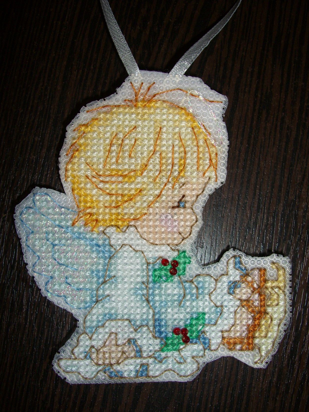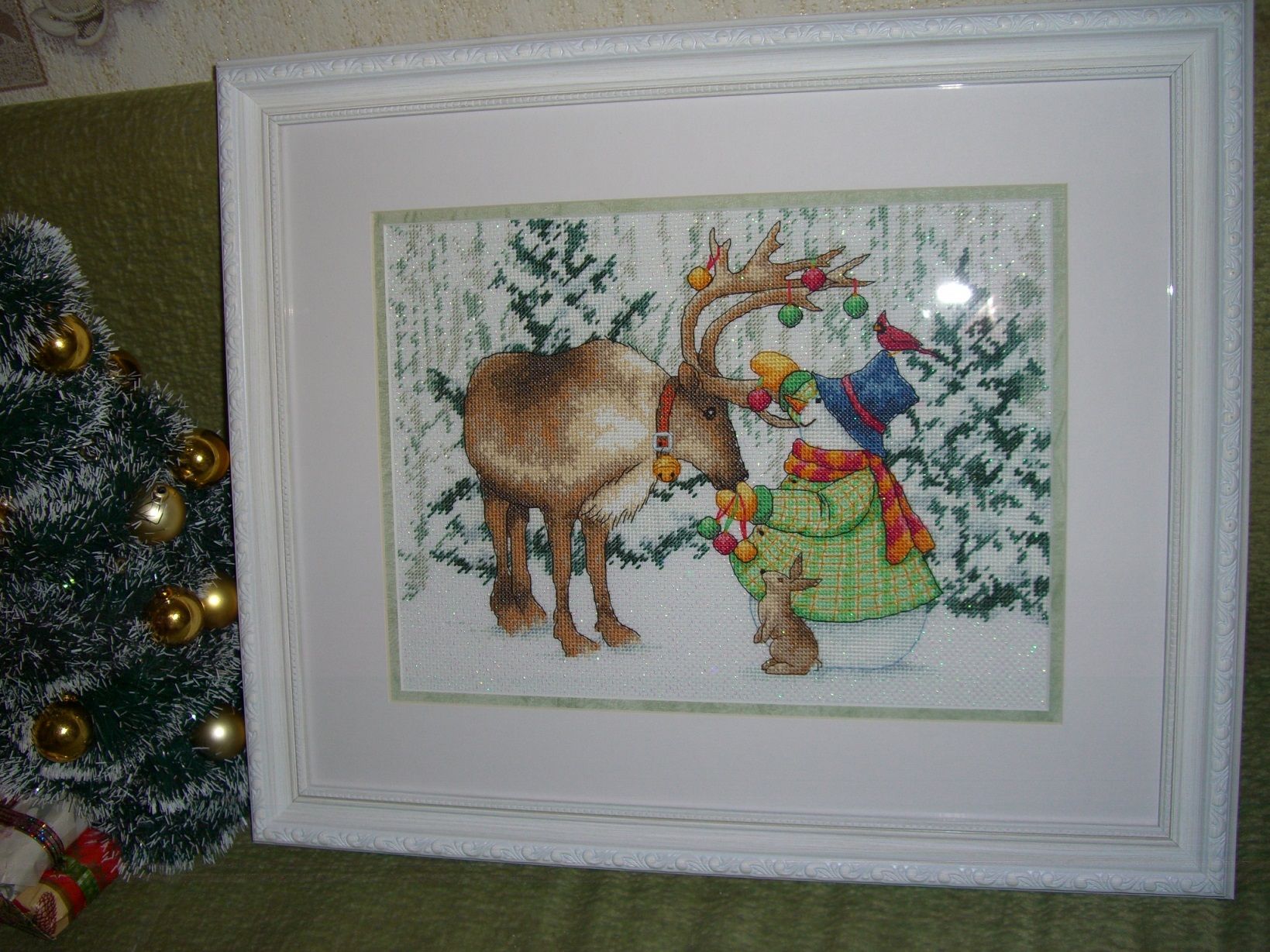 31 декабря 2019 Всем новогоднего вечера (или утра)! Появлюсь хоть ради праздника с новогодним отчетом)) Вышито совсем мало, но хоть что-то. Итак, новогодние игрушки: 1. от Волшебной страны Можно было сделать одну двустороннюю, можно две отдельные - фетровые задники были вырезаны и приложены. У меня получилось две игрушки, одна уехала в качестве новогоднего минисюрприза в Новосибирск. 2. Ежегодный ангелочек от Дименшенс Тоже поселился в Новосибирске. 3. Доведенный до ума паровозик Дименшенс , висит у меня красной гайкой))) 4. Santa with bag ornament, Dimension. Вышит по остаткам набора, так что он родной брат Санты Nadinka-Blondinka))) И немного оформленных работ. Оформились они еще летом, я думала сфотографировать их на улице, но нас очень быстро засыпало снегом, и либо снегопад, либо мороз, ни то ни другое не способствует фотографированию, так что фото - банальные домашние, и почему-то паспарту розоватыми кажутся на фото, хотя они чисто белые. Переоформлена давно вышитая работа Снеговик во дворе 08817 Дименшенс. С прежним оформлением случилась беда при переезде, 6 лет работа лежала разобранная, вот теперь в новой одежке, детям очень понравилась. Santa`s Woodland Friend. Дизайн Дименшенс, давно снят с производства, вышит по реплике Амишоп. Dimensions 08826, Christmas Morning Pets, вышит давным-давно, наконец приоделся. Dimensions 08947, Ornamental Reindeer. Чудесная работа, очень ей идет искрящаяся канва с люрексом (в наборе обычная была) Пока на этом всё)) Всех поздравляю с Новым годом! Желаю здоровья, благополучия, счастья и вышиванца! Хельга, koalatea, Lena_Dm и 37 других сказали спасибо Поделиться сообщением Ссылка на сообщение