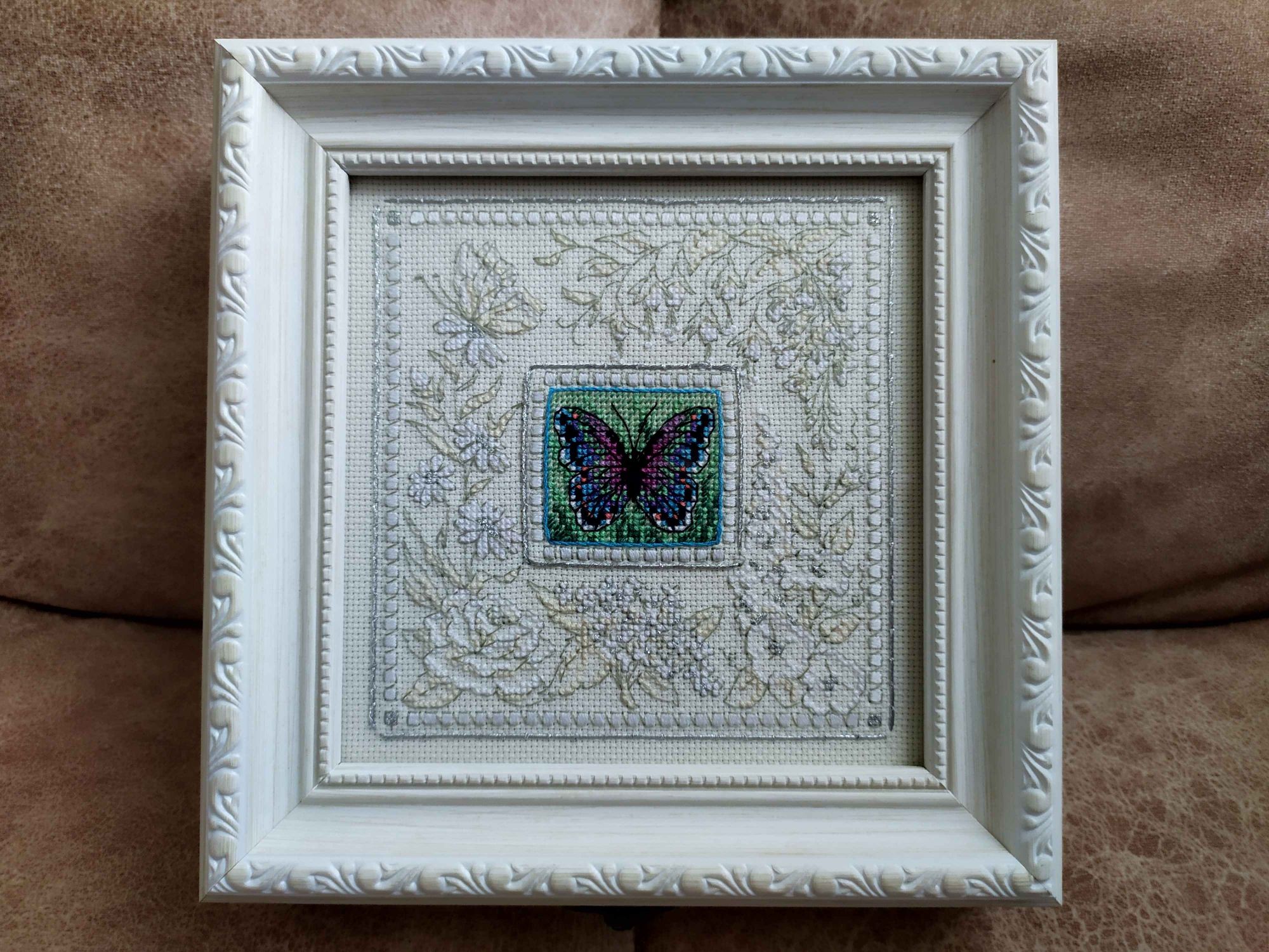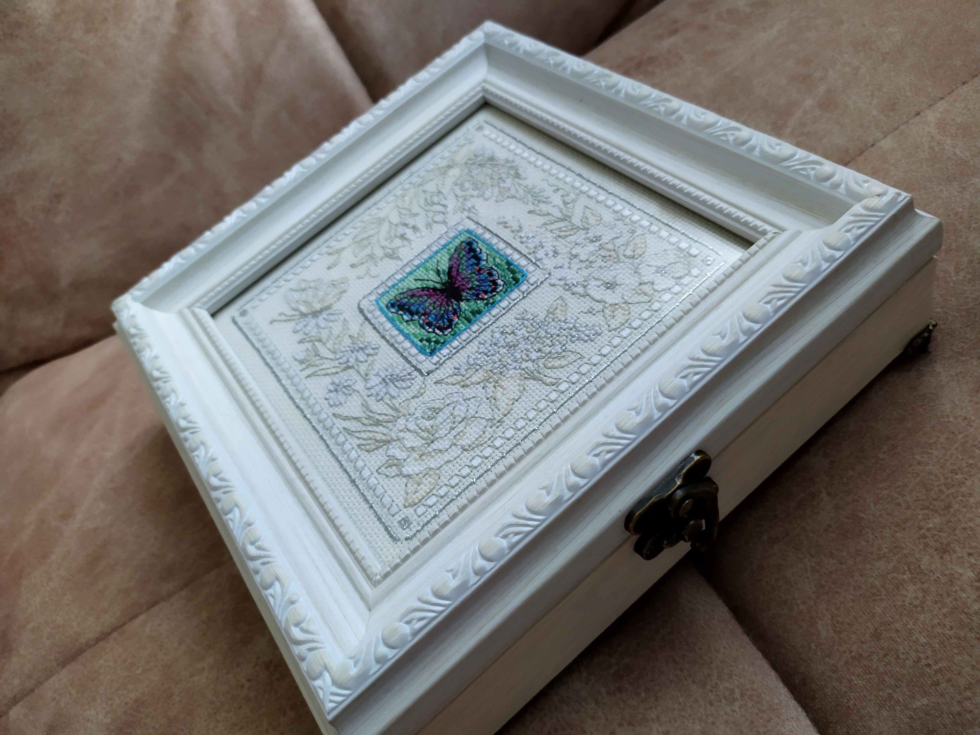 20 октября 2020 Всем хорошего дня! Я коротенечко)) Покажу две маленькие работы)) Сделала брошку Образа в каменьях, бабочка Фуксия. Быстро, просто, дольше собиралась и сомневалась)) Это бюджетный вариант набора. На ярком солнце блестит, без прямых солнечных лучей очевидно,что бусинки из пластика. Отошла от схемы немного - надо было бабочке прорезь между крылышек сделать, покрутила так и сяк, решила вместо прорези пришить пару бусинок. Влад влюбился в эту бабочку. Теперь спрашивает постоянно, где она, потрогать, порассматривать хочет. И оформилась вышивка в шкатулочку Очень мило вышло. Все подарилось комплектом нашей учительнице на день рождения)) На этом пока всё. Будьте здоровы! Любушка1985, musya, nogres и 35 других сказали спасибо Поделиться сообщением Ссылка на сообщение