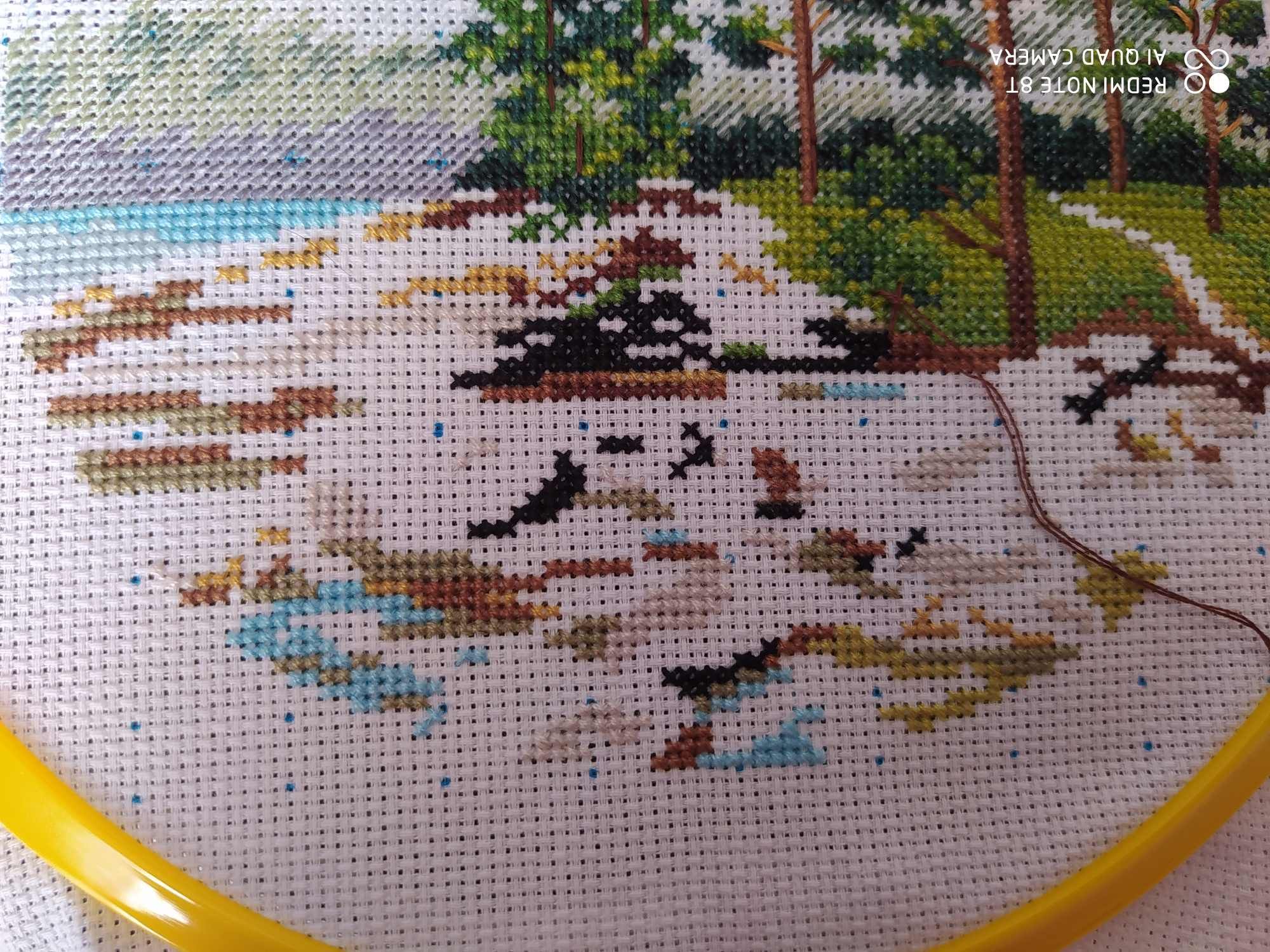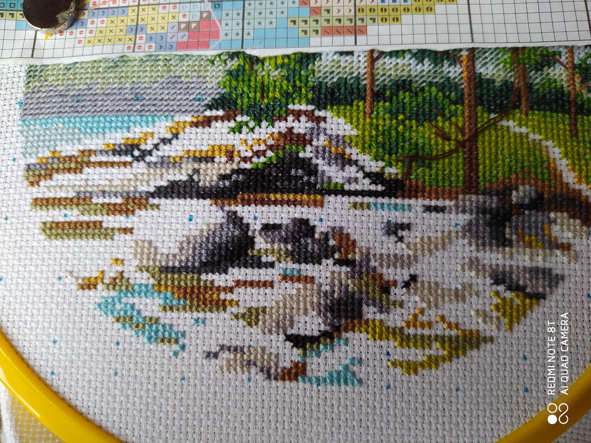 14 апреля 2021 Доброго дня всем! Покажу наконец новый отчет. 1. Начну с нового процесса. Дизайнер Анна Нольфина. Я называю его Маяк в круге (у автора никакого названия нет, общее - Пейзажи в круге) Очень красивый и приятный процесс, особенно потому, что я вовремя поняла, что вышивать небо и воду крестиком я не могу. Вот физически меня ломает. Поэтому вместо креста в 2 нити я вышиваю полукрестом в 4, и меня всё радует)) А маяк и берег будет крестиком. 2. Продвижения. У девочки в песочных замках появилось лицо, там только пары стежков бэка не хватает. Было стало 3. Morning Praise Было стало 4. Суровый парень тоже немного повышивался. Было стало Здесь я сплоховала - промахнулась с количеством ниток и начала вышивать остатками белых схс, думала, хватит. Не хватило. Они толще дмс и любых других, продолжать другими не вариант. Нашла в маминых запасах какие-то нитки, помеченные нужным номером дмс, на практике они могут оказаться чем угодно, попробую, вдруг какие-то из них окажутся схс. Если нет, то придется белый распороть и перешить. 5. И завершенный процесс - Белочка от Мережки. Было потом стало Белочка милая. Канва странная. Написано, что Zweigart, но оранжевой полоски нет, после стирки она вся скукожилась так, что пришлось мочить, чтобы хоть как-то погладить, а чуть смоченная она стала тянуться во все стороны как трикотаж. Поверить не могу, что Цвайгарт такое выпускает. А в остальном - схема прекрасная, ниток на второй отшив спокойно хватит. Думаю пока, что бы сделать из этой вышивки. На этом пока всё. Всем весны, здоровья и вышиванца! Sneganna, Peppi, tavenir и 37 других сказали спасибо Поделиться сообщением Ссылка на сообщение