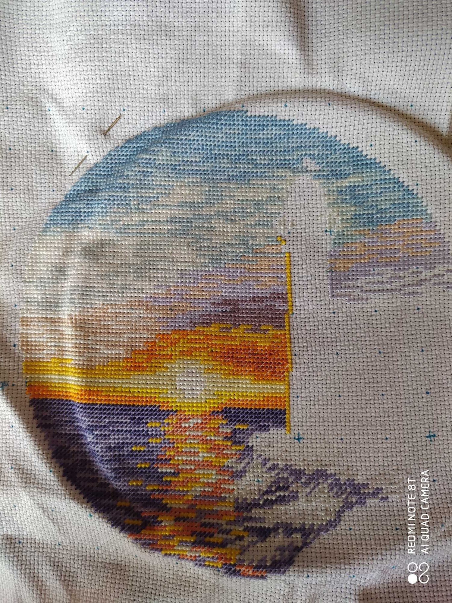 17 апреля 2021 14.04.2021 в 10:52, Дикая белочка сказал(а): Доброго дня всем! Покажу наконец новый отчет. 1. Начну с нового процесса. Дизайнер Анна Нольфина. Я называю его Маяк в круге (у автора никакого названия нет, общее - Пейзажи в круге) Очень красивый и приятный процесс, особенно потому, что я вовремя поняла, что вышивать небо и воду крестиком я не могу. Вот физически меня ломает. Поэтому вместо креста в 2 нити я вышиваю полукрестом в 4, и меня всё радует)) А маяк и берег будет крестиком. 2. Продвижения. У девочки в песочных замках появилось лицо, там только пары стежков бэка не хватает. Было стало 3. Morning Praise Было стало 4. Суровый парень тоже немного повышивался. Было стало Здесь я сплоховала - промахнулась с количеством ниток и начала вышивать остатками белых схс, думала, хватит. Не хватило. Они толще дмс и любых других, продолжать другими не вариант. Нашла в маминых запасах какие-то нитки, помеченные нужным номером дмс, на практике они могут оказаться чем угодно, попробую, вдруг какие-то из них окажутся схс. Если нет, то придется белый распороть и перешить. 5. И завершенный процесс - Белочка от Мережки. Было потом стало Белочка милая. Канва странная. Написано, что Zweigart, но оранжевой полоски нет, после стирки она вся скукожилась так, что пришлось мочить, чтобы хоть как-то погладить, а чуть смоченная она стала тянуться во все стороны как трикотаж. Поверить не могу, что Цвайгарт такое выпускает. А в остальном - схема прекрасная, ниток на второй отшив спокойно хватит. Думаю пока, что бы сделать из этой вышивки. На этом пока всё. Всем весны, здоровья и вышиванца! Наташа, с завершением белочки! Сразу вспомнила Пушкина-"А орешки не простые.." Кружочки эти и я заприметила, покидала в закрома, буду думать - надо оно мне или морда треснет? По остальным процессам продвижения очень хорошие, девочка нежная и очень настоящая! Дикая белочка сказал(а) спасибо Поделиться сообщением Ссылка на сообщение