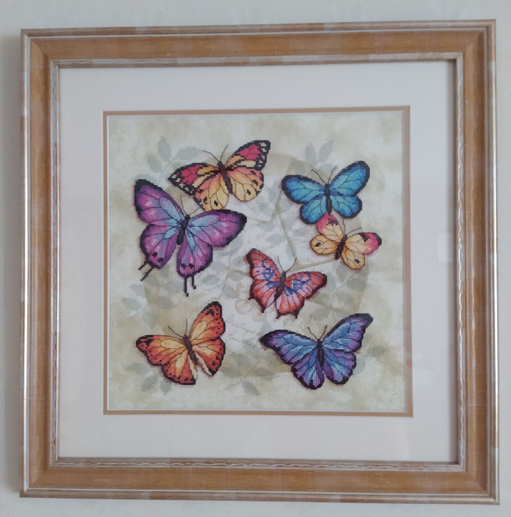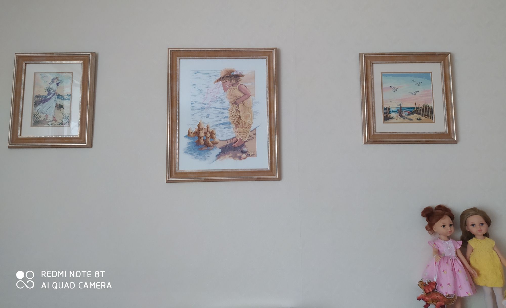 11 ноября 2022 Всем привет! У меня появился инфоповод - забрала работы из багетки. Правда, нормальные фото не сделать, темновато сейчас, но ждать ясной погоды теперь можно дооолго.... 5 работ по дизайнам Дименшенс оформились. Любимая девочка с песочными замками , вышитые подбором Новое начало и Девушка на пляже Вот так они разместились И ещё бабочки Как вы понимаете, очень мне нравится этот багет, он ко всему подходит))) Бабочки оформились в комплект с предыдущими бабочками, не подумала сделать фото их вместе. Завтра покажу. И Зимние воспоминания принарядились В двух багетках перемерила все варианты рам, выбор скудный, ничего не легло, кроме этого, и то под заказ ехал. На фото не очевидно, но багет немножко розовато-персиковый. Всех поздравляю с праздником! Пусть хватает времени, желания, здоровья и средств на наши великолепные шедевры! Nyurka-86, Molly21, nogres и 29 других сказали спасибо Поделиться сообщением Ссылка на сообщение
