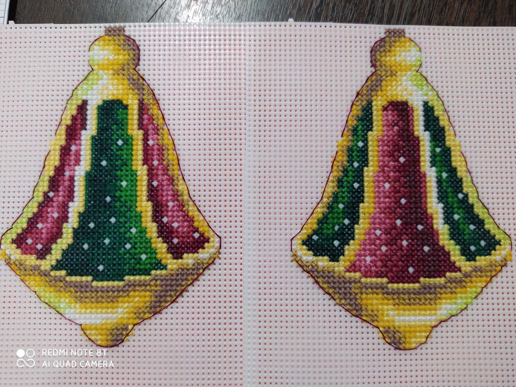 22 ноября 2022 Всем привет! Покажу немножечко продвижений в процессах. 1. Новый процесс, начатый и завершенный. МП Студия Р-864 "Советская елочная игрушка. Колокольчик" Ниток достаточно, схема очень удобная. 2. Романтический поцелуй Анкор. Последнее фото в процессах такое Теперь уже прилично больше 3. Ракушки Дим. Было стало 4. Немножко продвинулся лонгстич. Было стало осталось самое сложное - мелкие детали. И обещала фото бабочек вместе. Вот так они висят Хорошего естественного света у нас нет совсем... makalicha1970, Г@лина, Ксен40 и 29 других сказали спасибо Поделиться сообщением Ссылка на сообщение