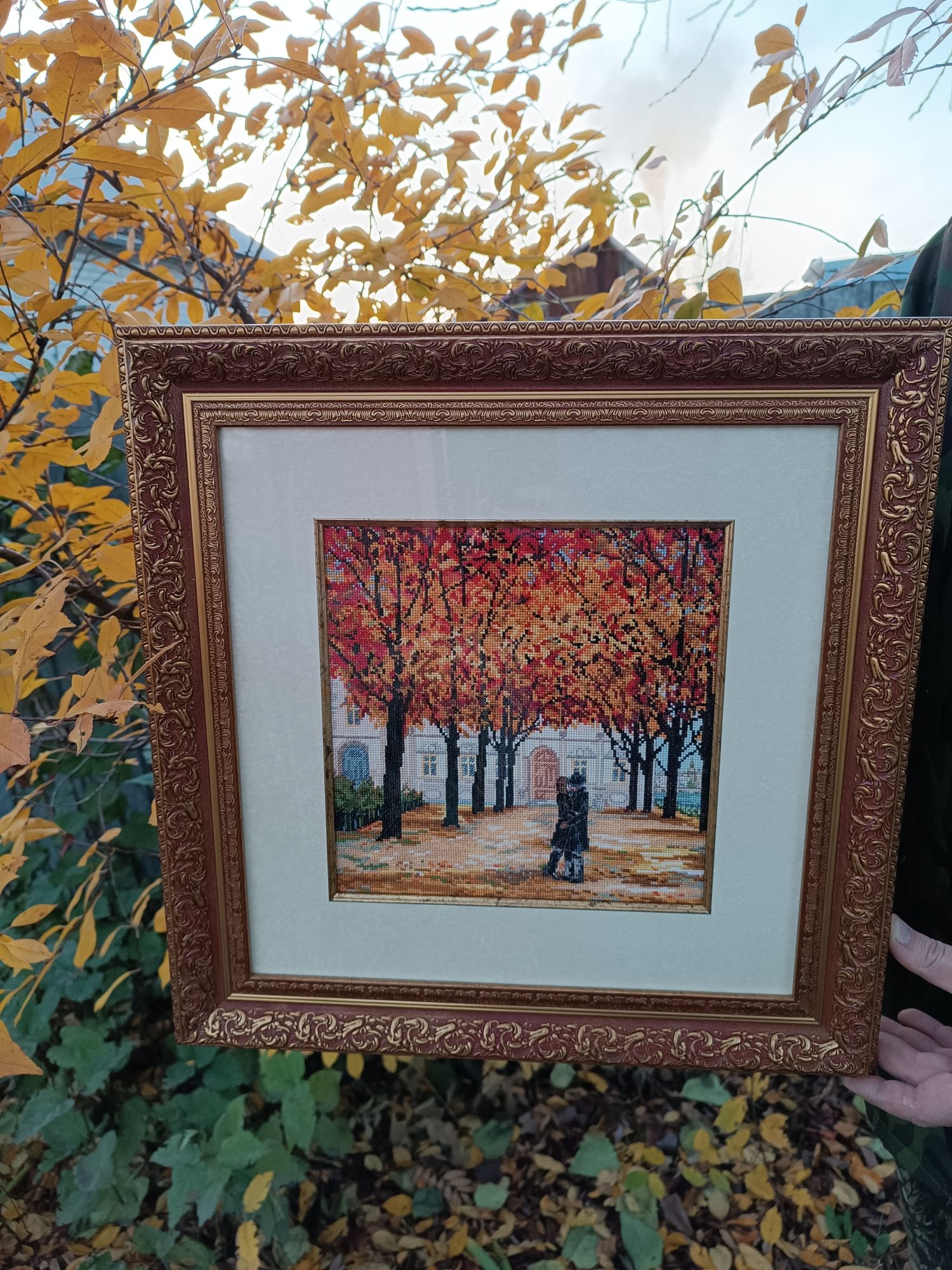 25 октября 2023 Сегодня будет ещё один идеальный отчёт)) Итак, 1. Приобретение. Ходила в багетку и спасла оттуда наборчик . Американец. Он мне нравится, хоть и некуда его вышивать, но оставлять его там висеть сочла неправильным. Он там уже больше 5 лет маялся. 2. Начинание. Не сейчас, с месяц назад, но не показывала раньше. Бисерный наборчик от Аннушки вышито немножко 3. Продолжение. Позитив на год Было стало 4. Завершение. На одной неделе закончила три процесса: Бабочку Цветущий берег моря И дракончика Тимошу . У дракончика в наборе лежал синий колокольчик, но синий как-то не к месту показался, пришила золотой бубенчик, подаренный Женей Фро-J. 5. Оформление. Оформила котика и Романтический поцелуй . К сожалению, не успела сделать, пока листва на деревьях была, у нас как-то разом все облетело. Так на фото кажется небольшой, а на стене висит - прямо большущая картина получилась. В багетке взяли 5 дней на исполнение, а сделали вне очереди на следующий день, так мастеру эта работа понравилась)) Нам тоже очень нравится. На этом вроде всё)) NataliBelay, Nadinka-Blondinka, irchick2308 и 25 других сказали спасибо Поделиться сообщением Ссылка на сообщение