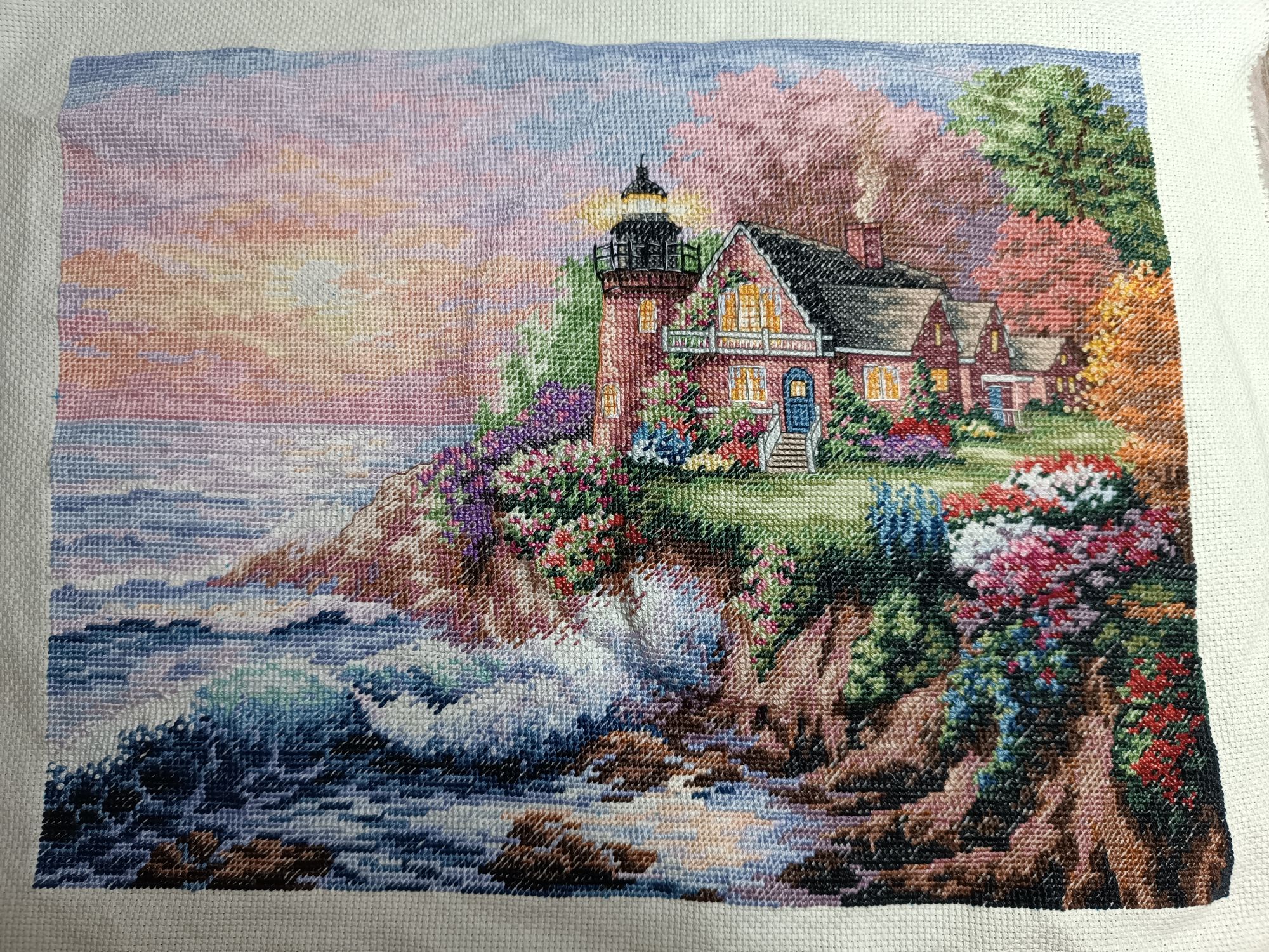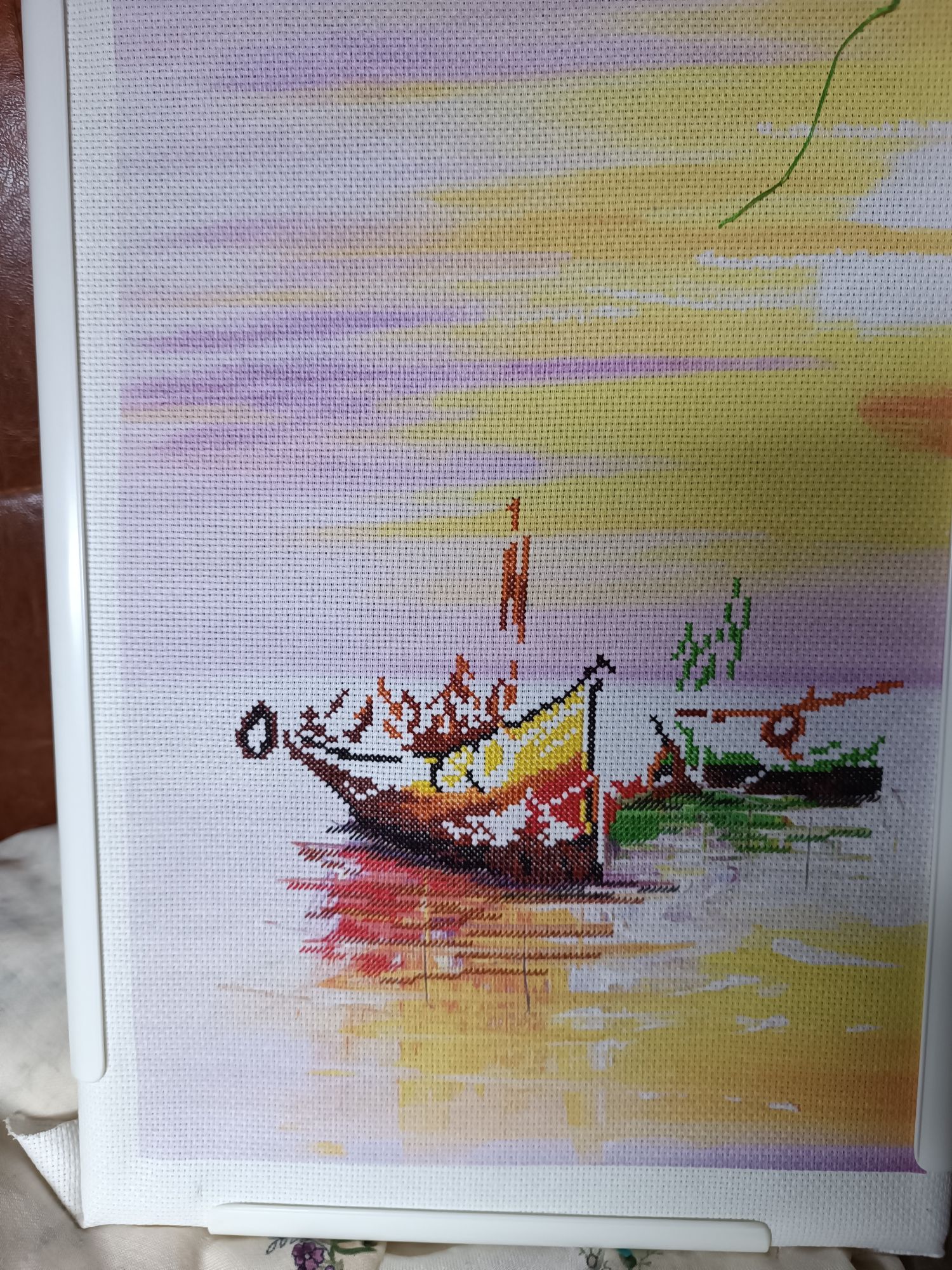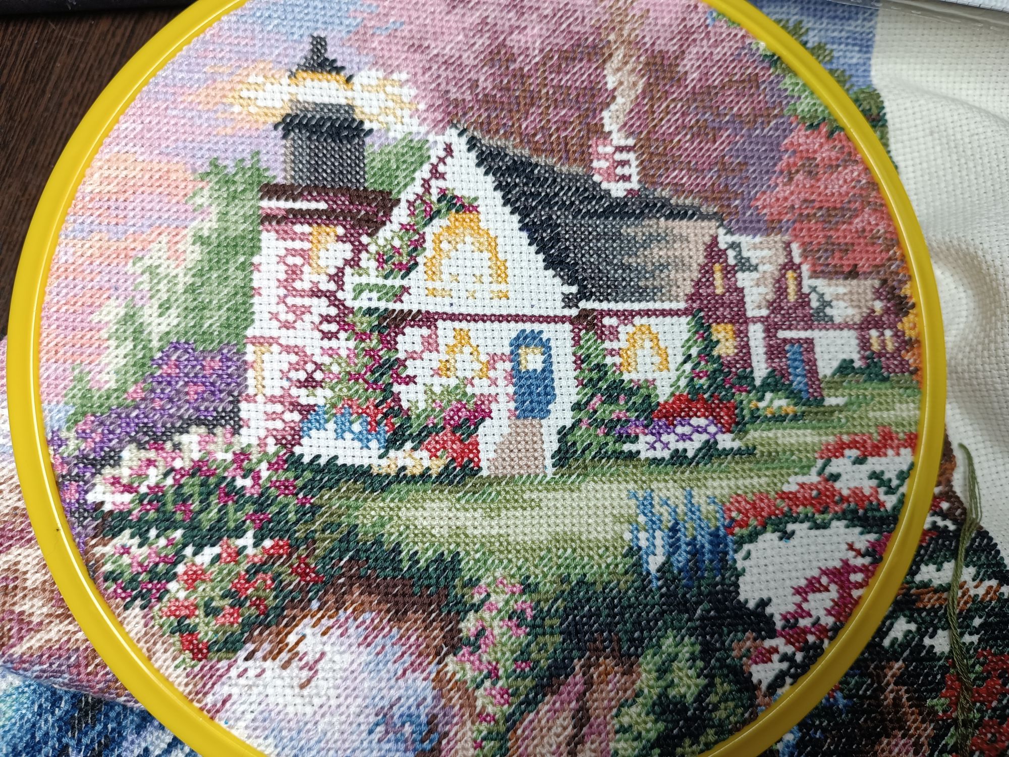 29 мая 2024 Всем привет! Принесла всякого вышитого за два месяца)) Начнём с готовых работ 1. Завершился Морской страж Дименшенс Предпоследнее фото без бэка и с бэком . Уже в багетке. Желание мое он не исполнил, видимо, не судьба. Начинала в январе 2017, в благоприятный день, в нужный час, все правильно написала на изнанке. Желание было - здоровье мое и всех членов моей семьи. Вышила почти 4 тысячи полукрестиков и больше никак не могла, все, что угодно, только не вышивка. Долго лежала работа без продвижения. Ну и с тех пор у меня онко обнаружили, Димке дали инвалидность... Когда я заболела, то постирала начатую работу, смыла с нее это желание, и она сразу стала вышиваться, легко и приятно. 2. Алиса. Птички-невелички. Вью. Это третья из птичек, они все вышиты на одном кусочке ткани. А вторая была вышита в апреле, вот такая. . Дождусь вдохновения и сделаю подушку. 3. Завершен процесс пряничного домика от Аннушки Никаких впечатлений, ну вышила и вышила. Огромный он для ёлочной игрушки, и тяжёлый, а подставка не предусмотрена. Бисер хороший в наборе, всего хватило, коричневого так вообще очень много осталось. 4. За апрель вышились небольшие безделушки - котик от Оксаны Ершовой , тыковка по схеме Милл Хилл , Дюймовочка вышивальщица от Алины Игнатьевой . 5. И вышила трёх Дюймовочек, схемы которых мне на новый год подарила Женя @Евгения Чичкова Из Жениного подарка ещё две малышки остались)) Процесс маковой Дюймовочки для гаечки: 6. И последний процесс, ещё не законченный. Овен. Родная гавань 1. Был начат в апрельских стартах 2022, но почему-то не стал гаечкой тогда. Процесс Немножко осталось. На этом пока все. У нас какая-то удивительно холодная и дождливая весна, вышивке очень способствует)) Zanfiska, ЛАДОМИРА, Цыпа и 22 других сказали спасибо Поделиться сообщением Ссылка на сообщение