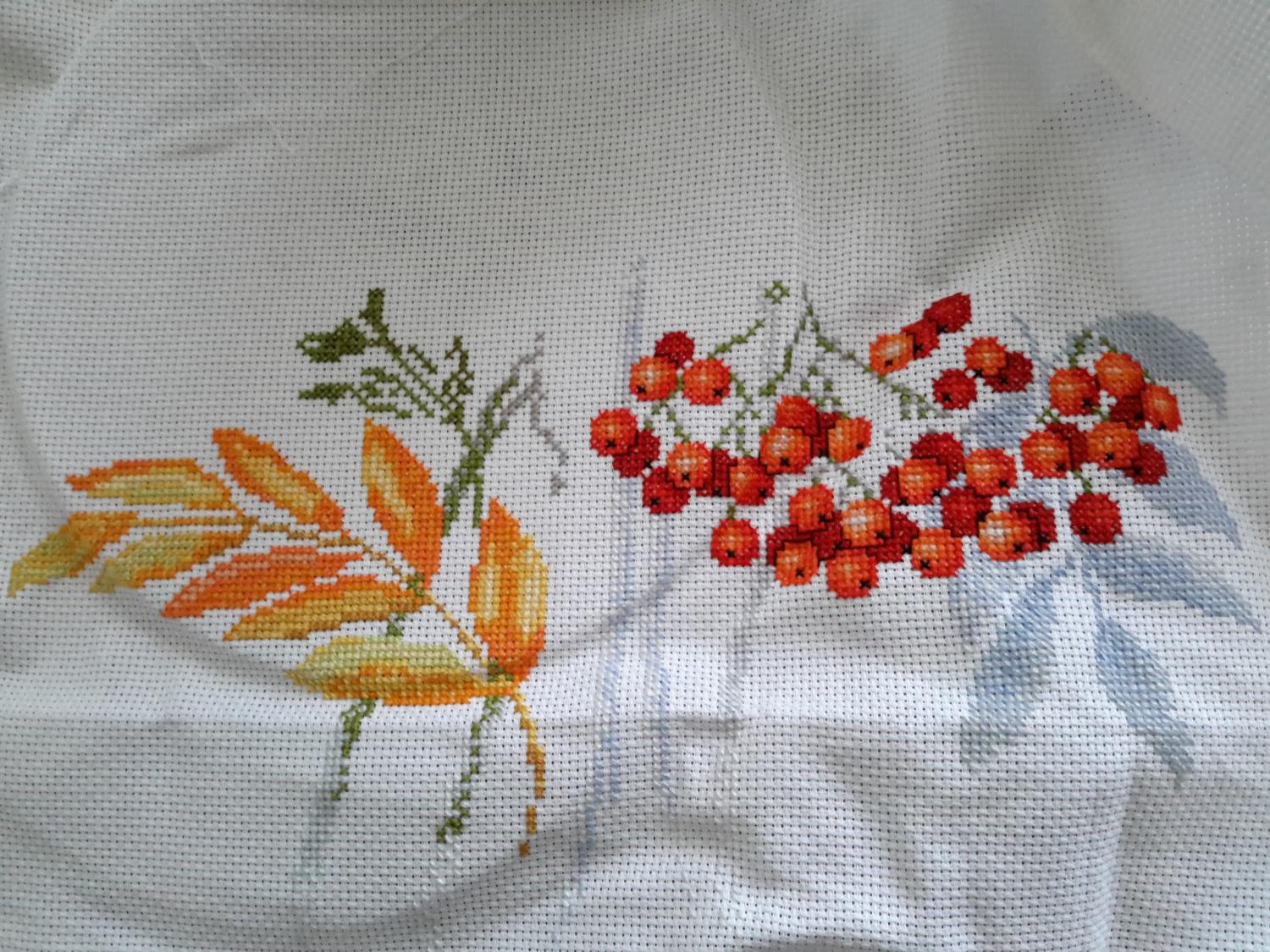 12 октября 2015 Раз тема поднялась покажу продвижения. Времени совсем не хватает, медленно вливаюсь в режим после отпуска. И разбирая на даче шкаф, обнаружила начатый набор РТО Рябина, Разработка Царакаевой Людмилы. Решила, что не гоже такой красоте валятся в тёмное шкафу, буду шить в машине после того, как отошью 200 финальных крестиков Мережки. Канва 14, не догодалась поменять на меньшую, перешивать не охота, пущай будет знамя осени. I_Konst, АннаСергевна, Meri Poppins и 10 других сказали спасибо Поделиться сообщением Ссылка на сообщение